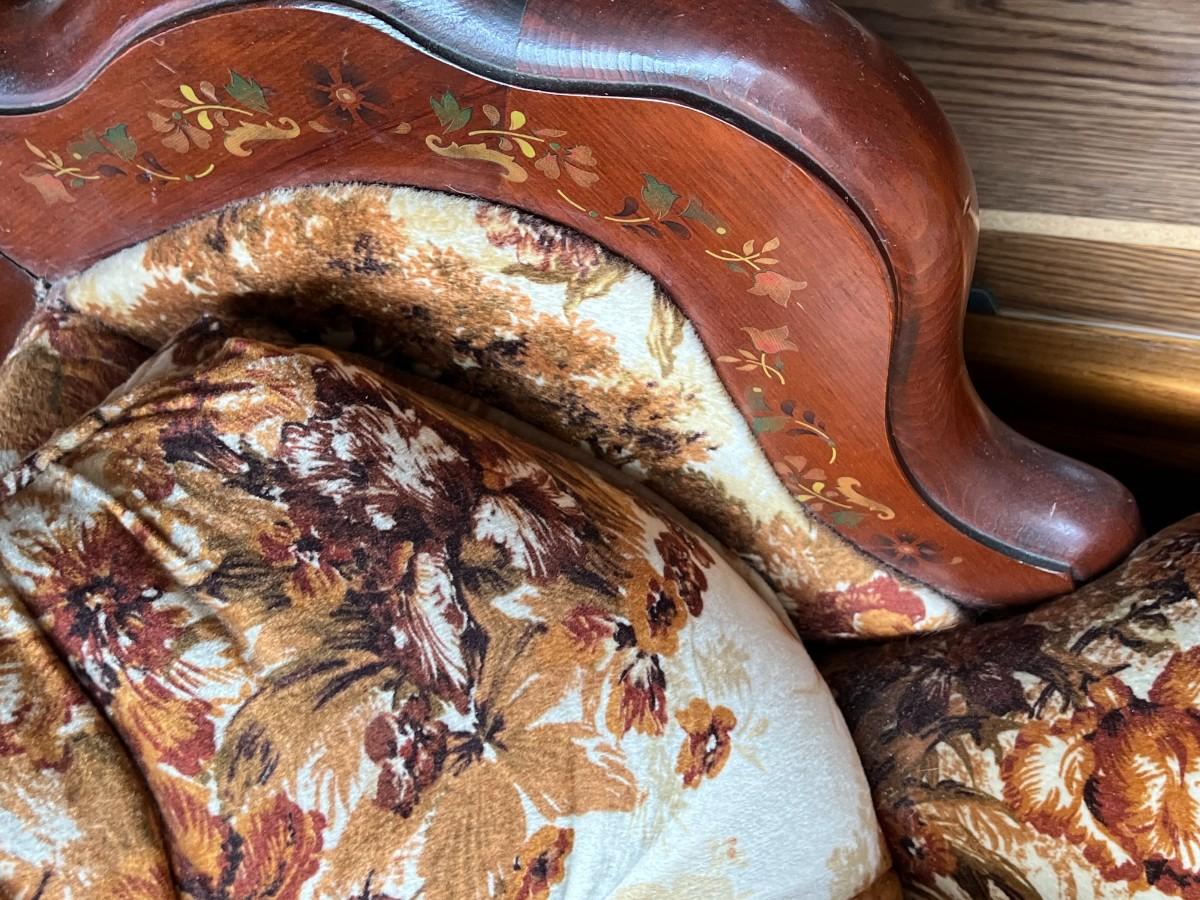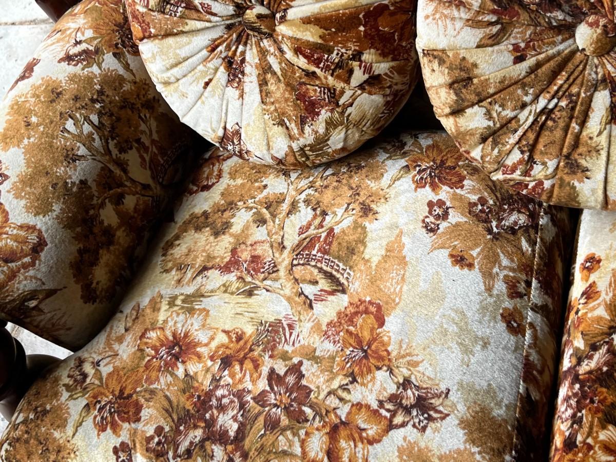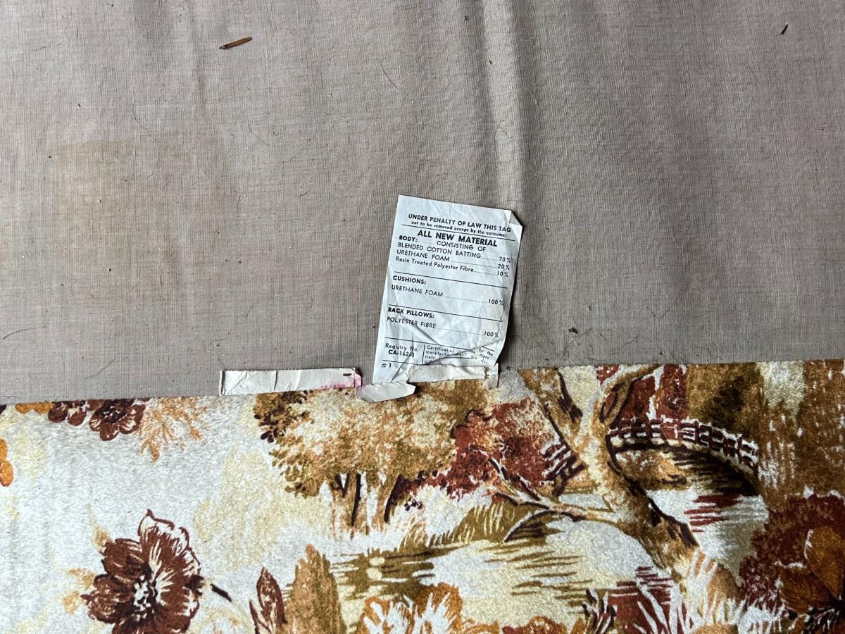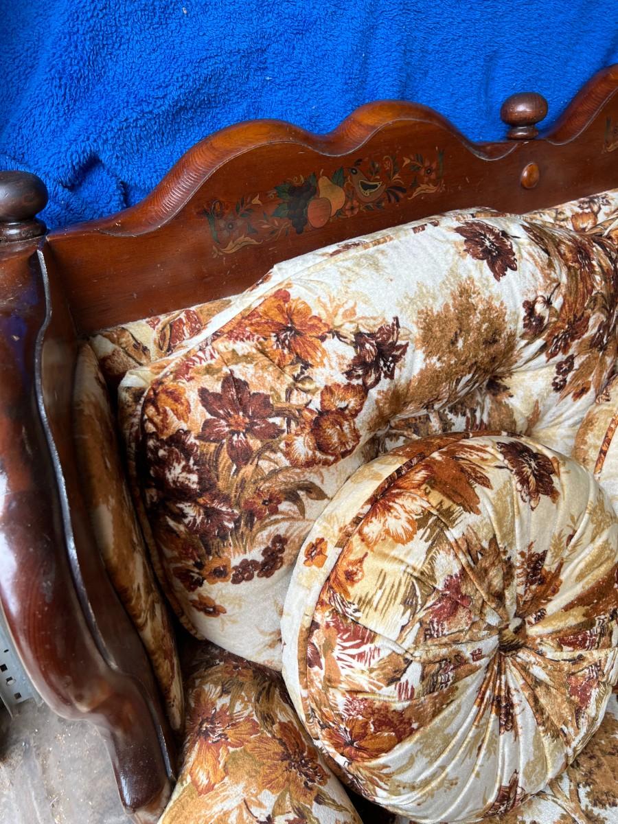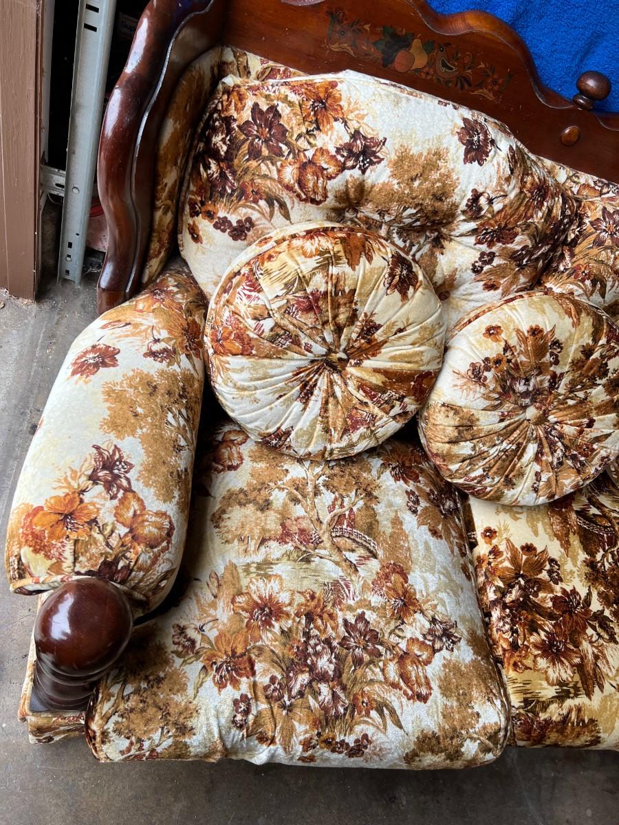 Vintage Retro Three Cushion Wood Framed Country Rustic Couch Sofa. In good vintage condition. may have light signs of use and fade from age.