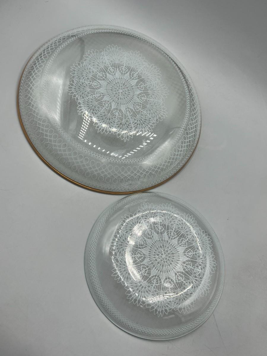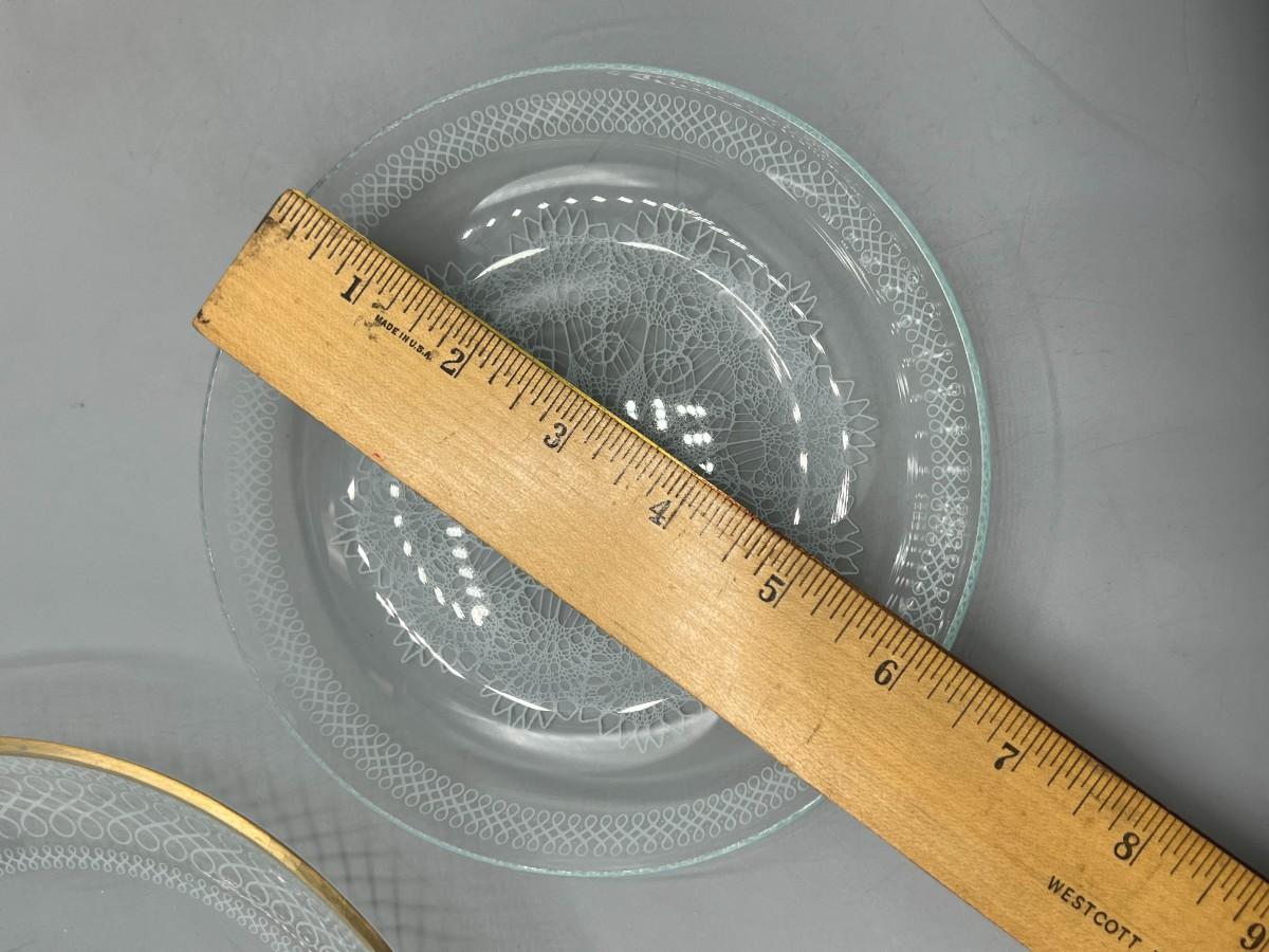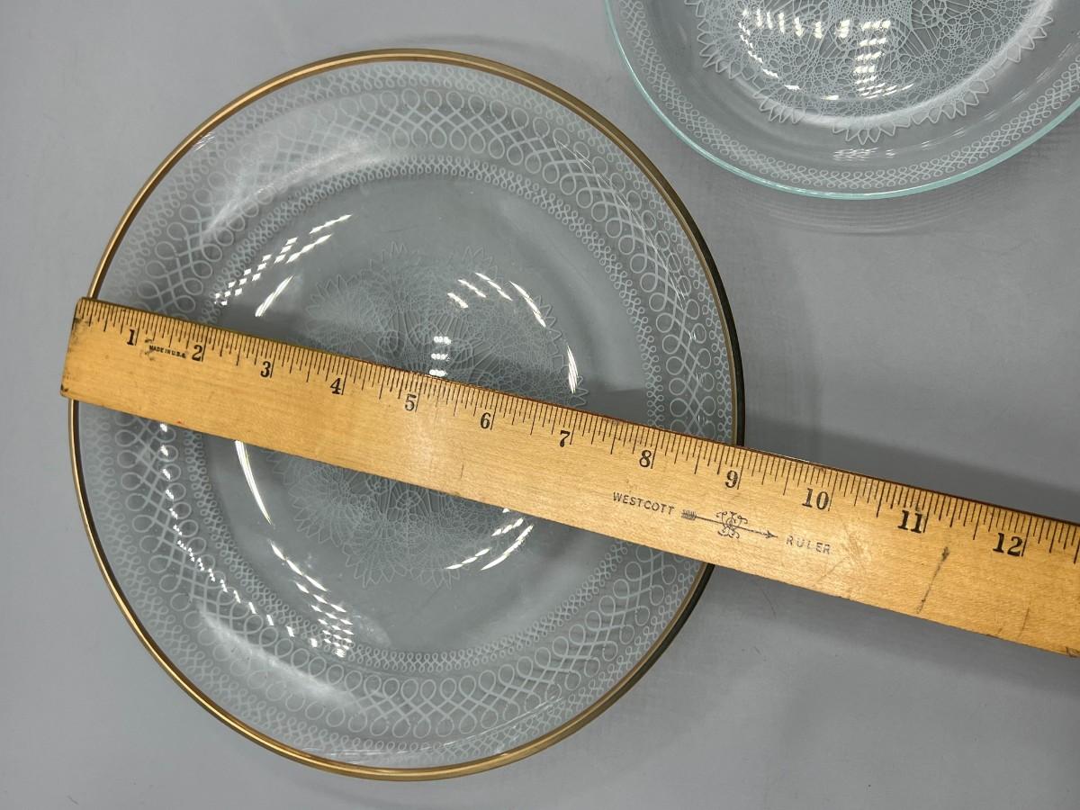 Pair of Vintage Clear Glass White Dolly Geometric Pattern Plates