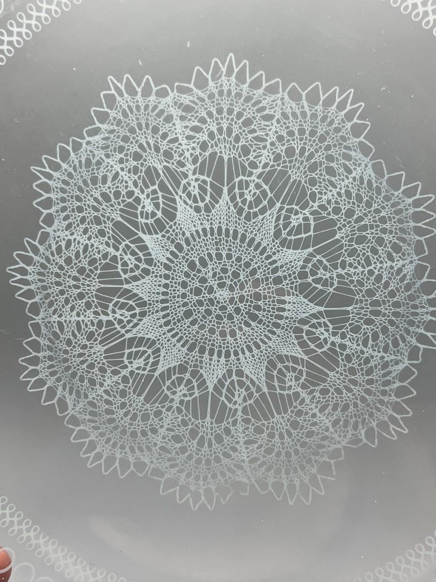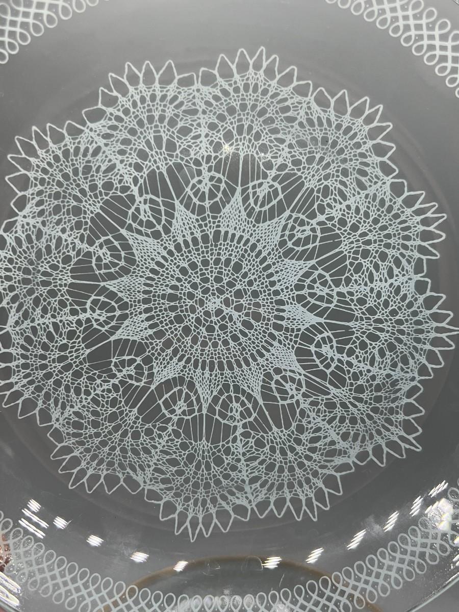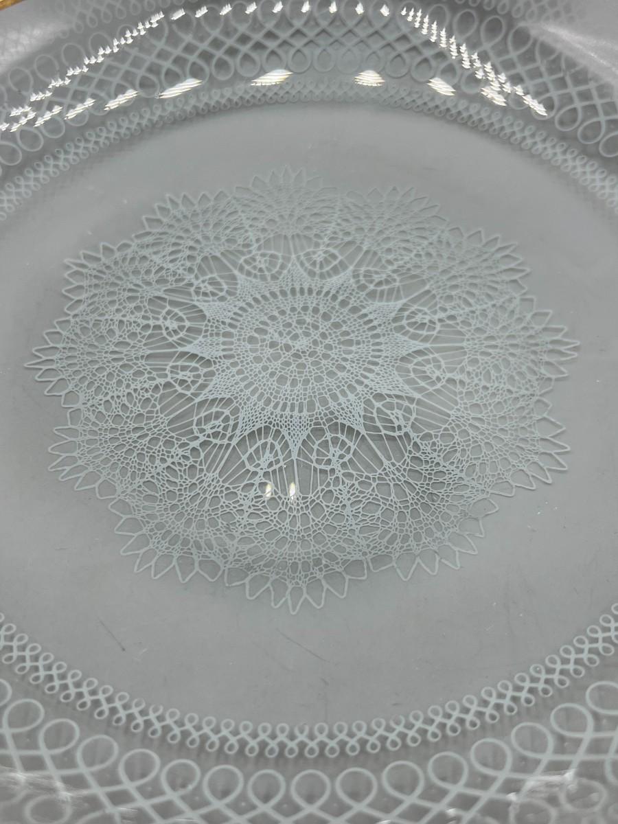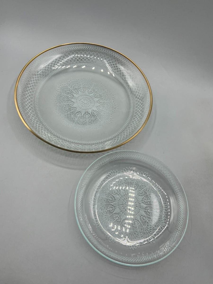 Pair of Vintage Clear Glass White Dolly Geometric Pattern Plates