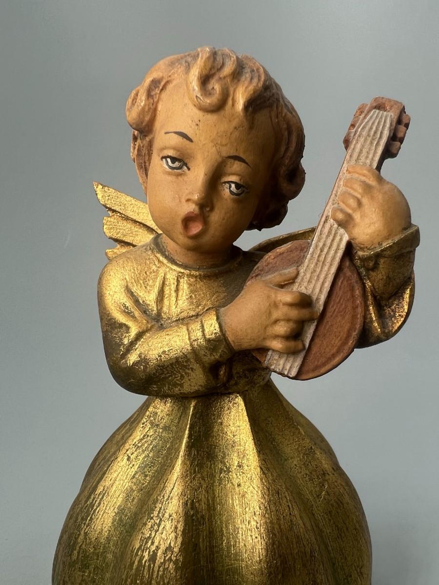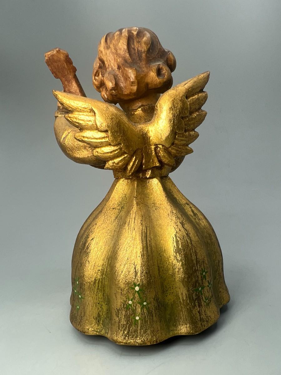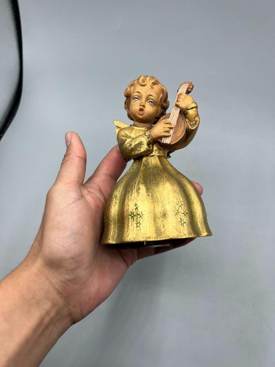 Vintage Wooden Singing Religious Angel Figurine Spinning Music Box