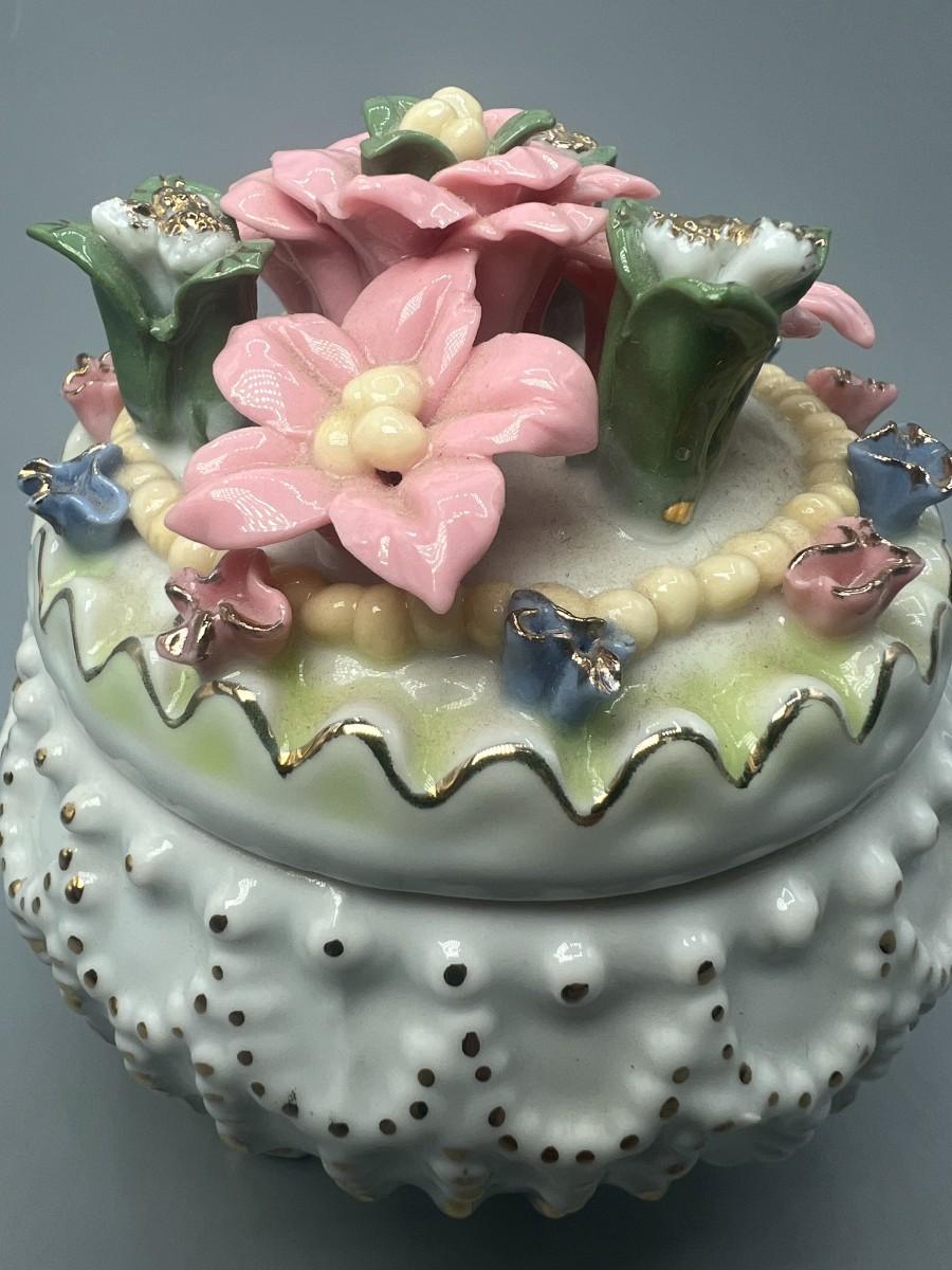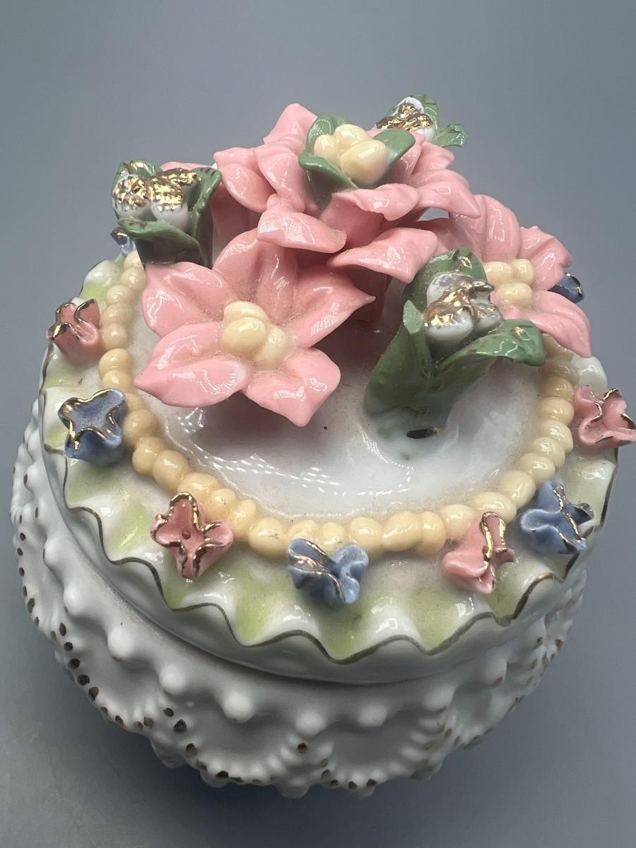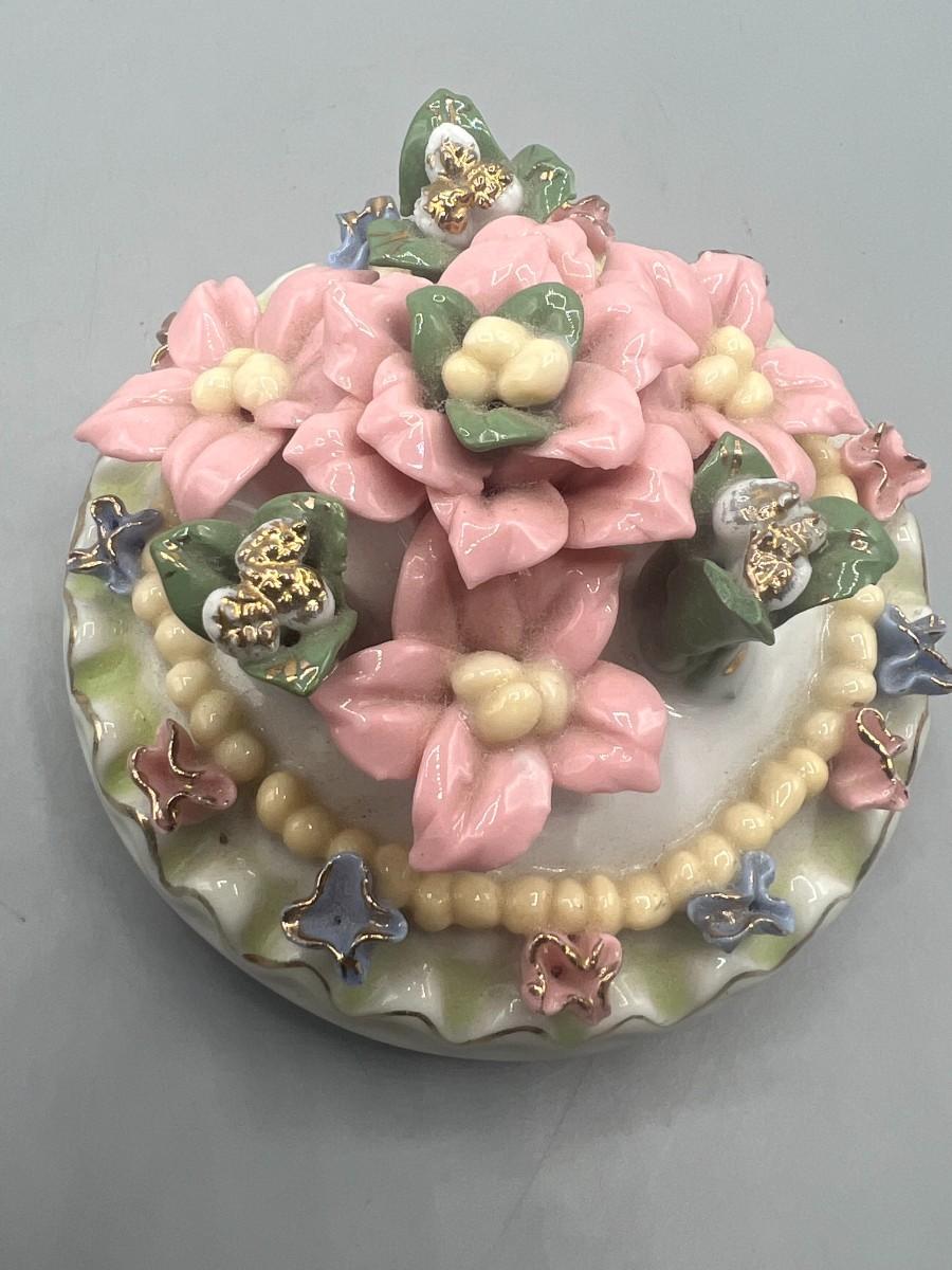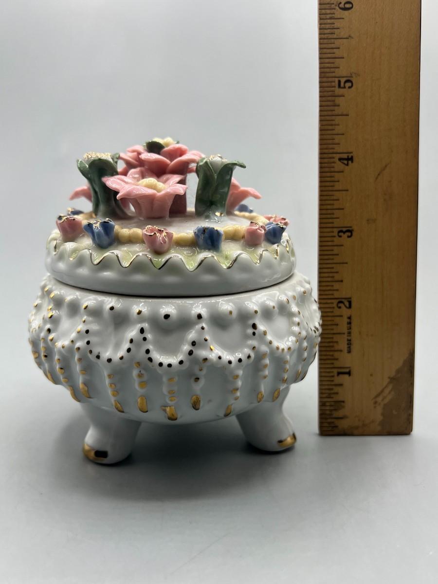 Small Vintage Floral Top Porcelain Lidded Trinket Jewelry Dish