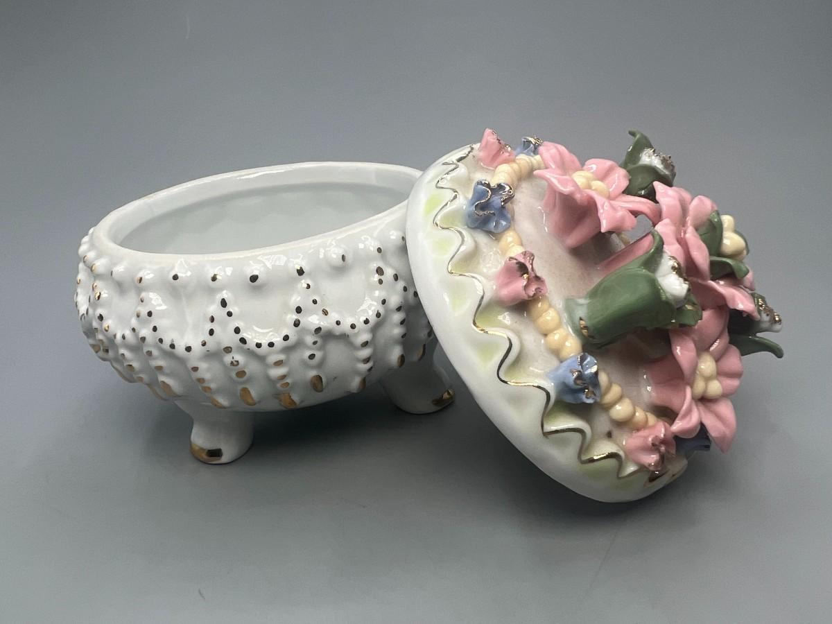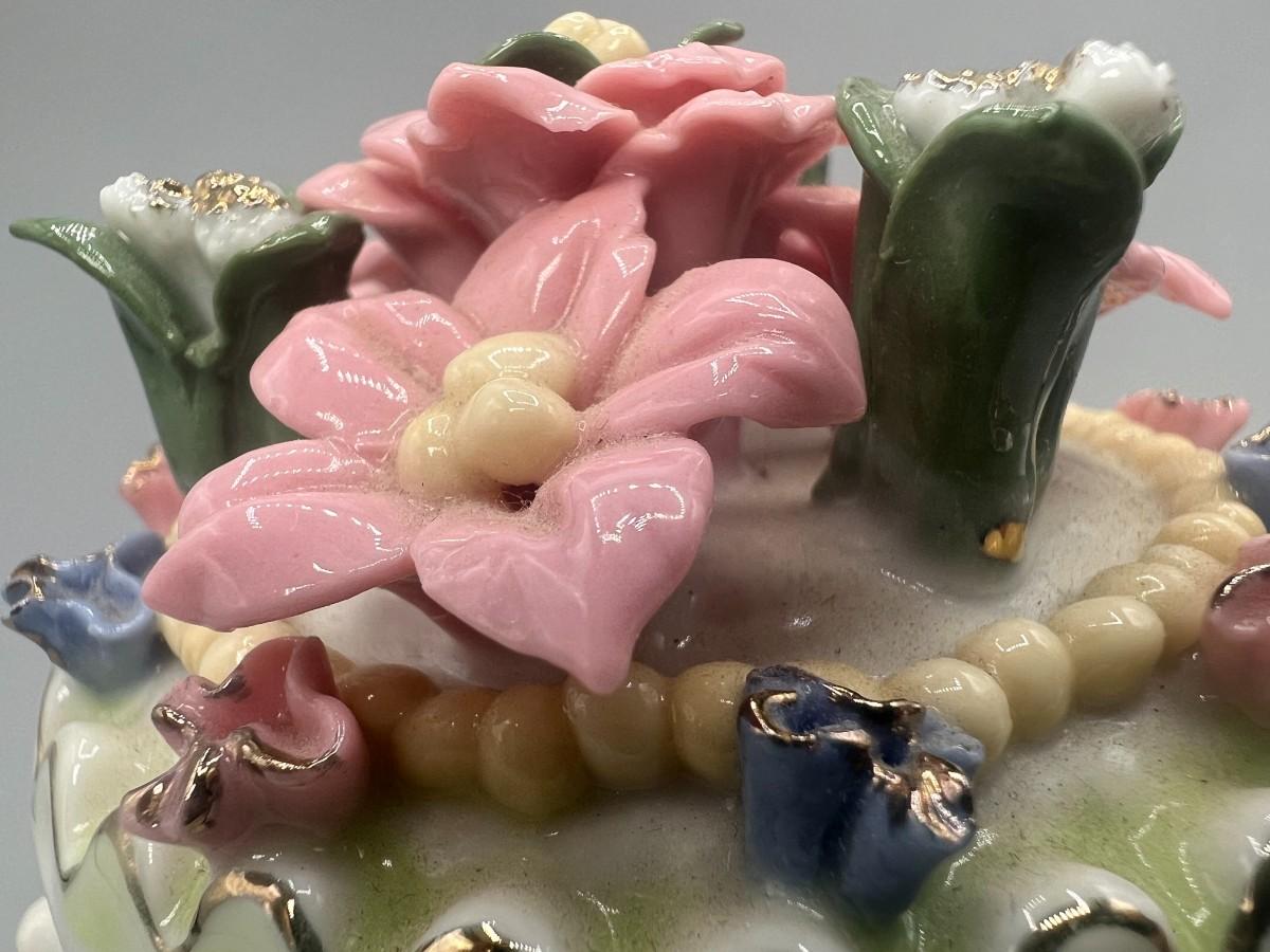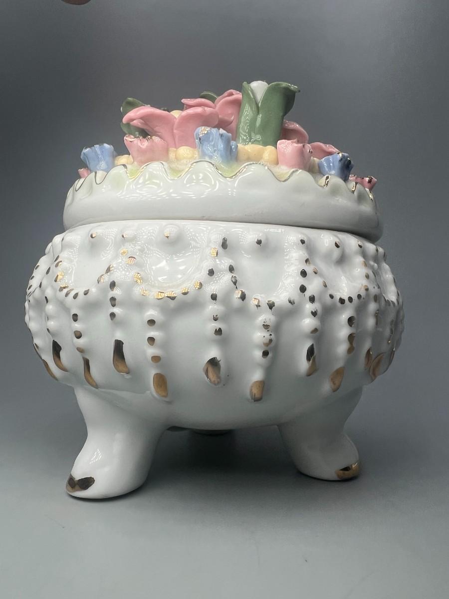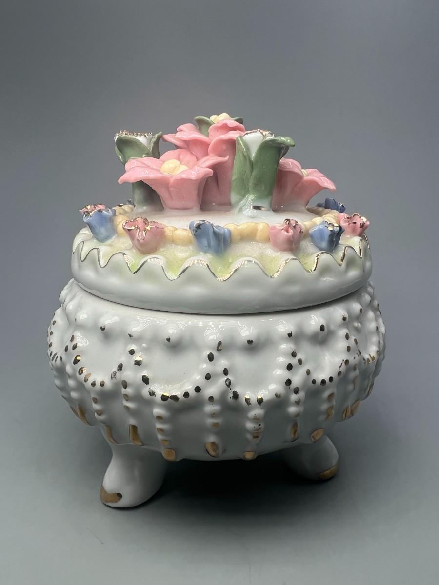 Small Vintage Floral Top Porcelain Lidded Trinket Jewelry Dish