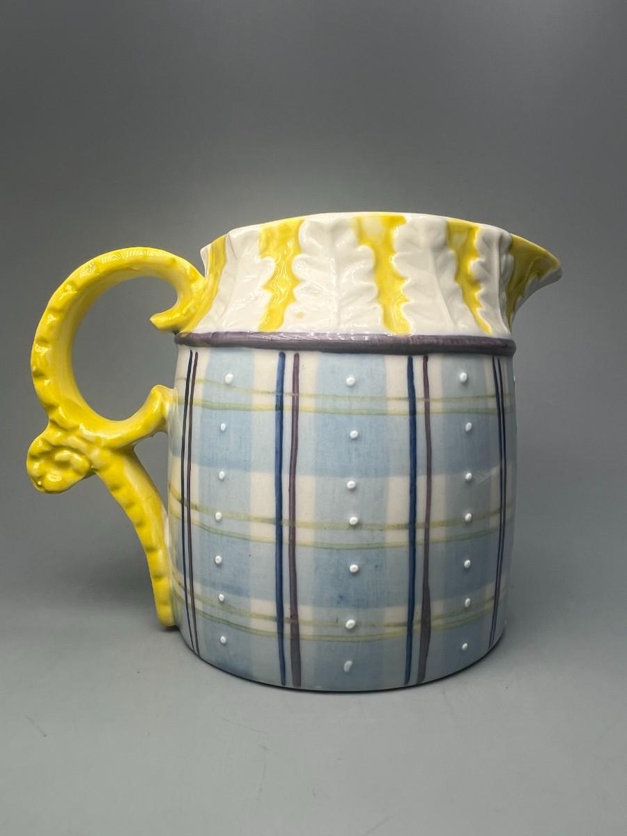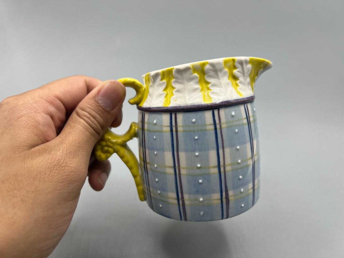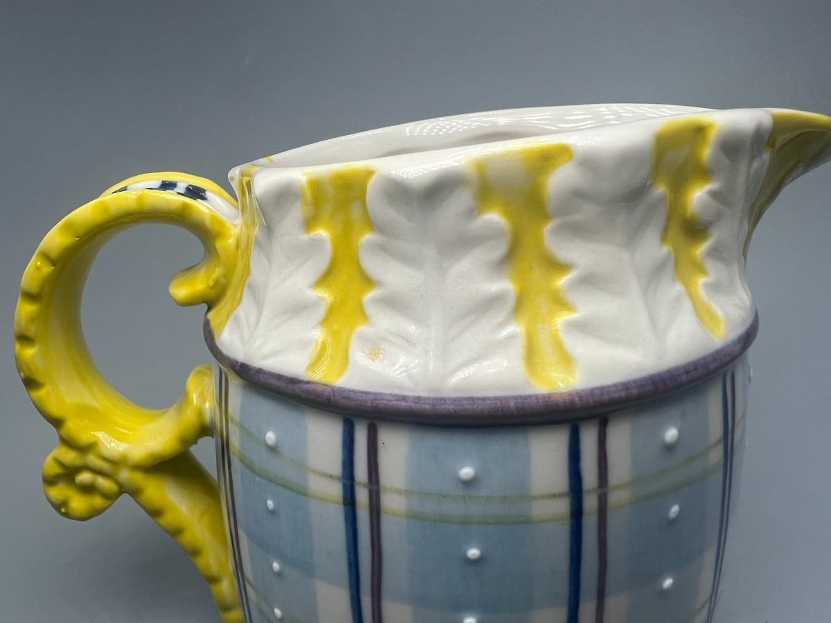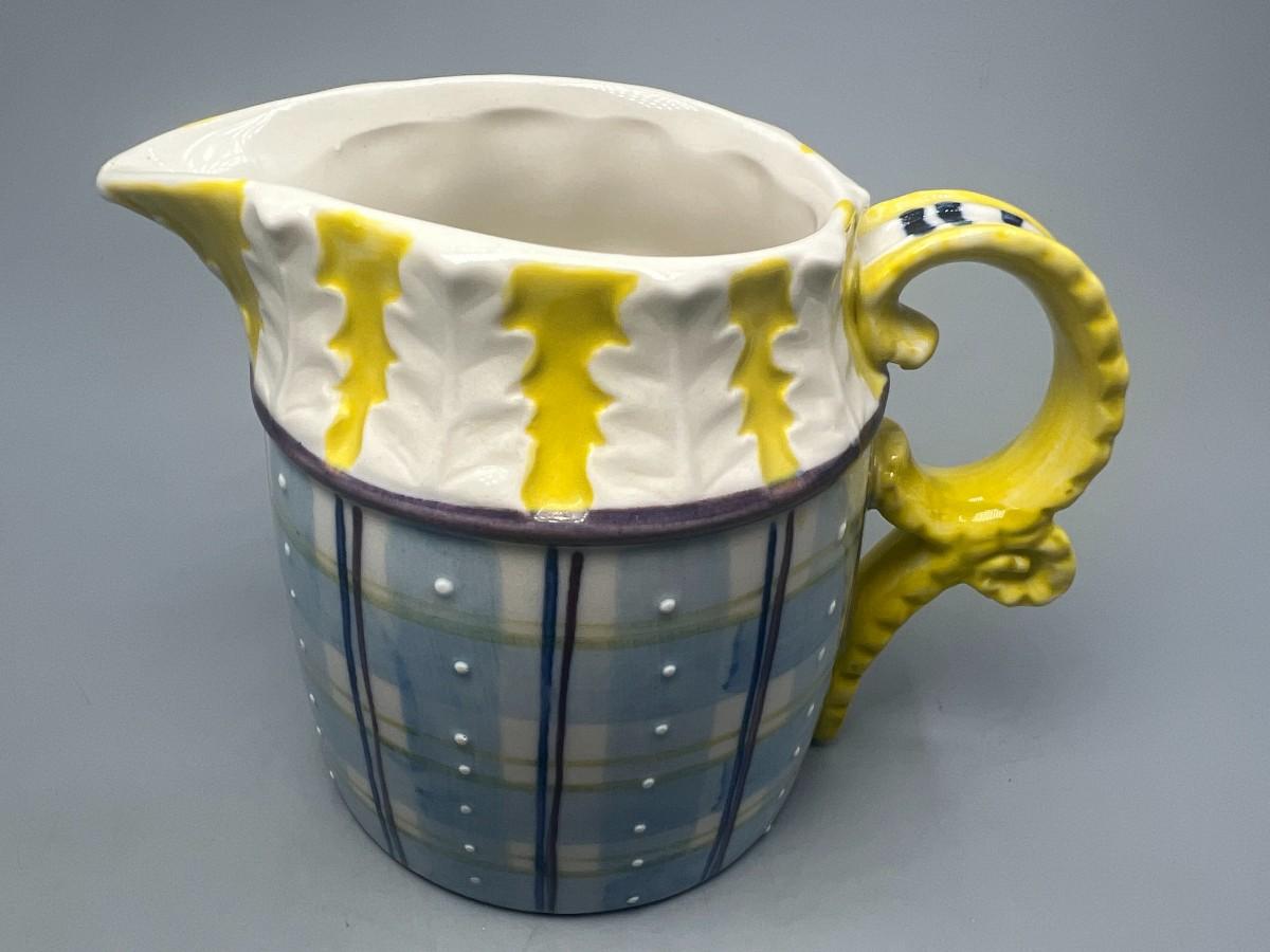 Small Vintage Yellow and Blue Plaid Ceramic Cream Pitcher
