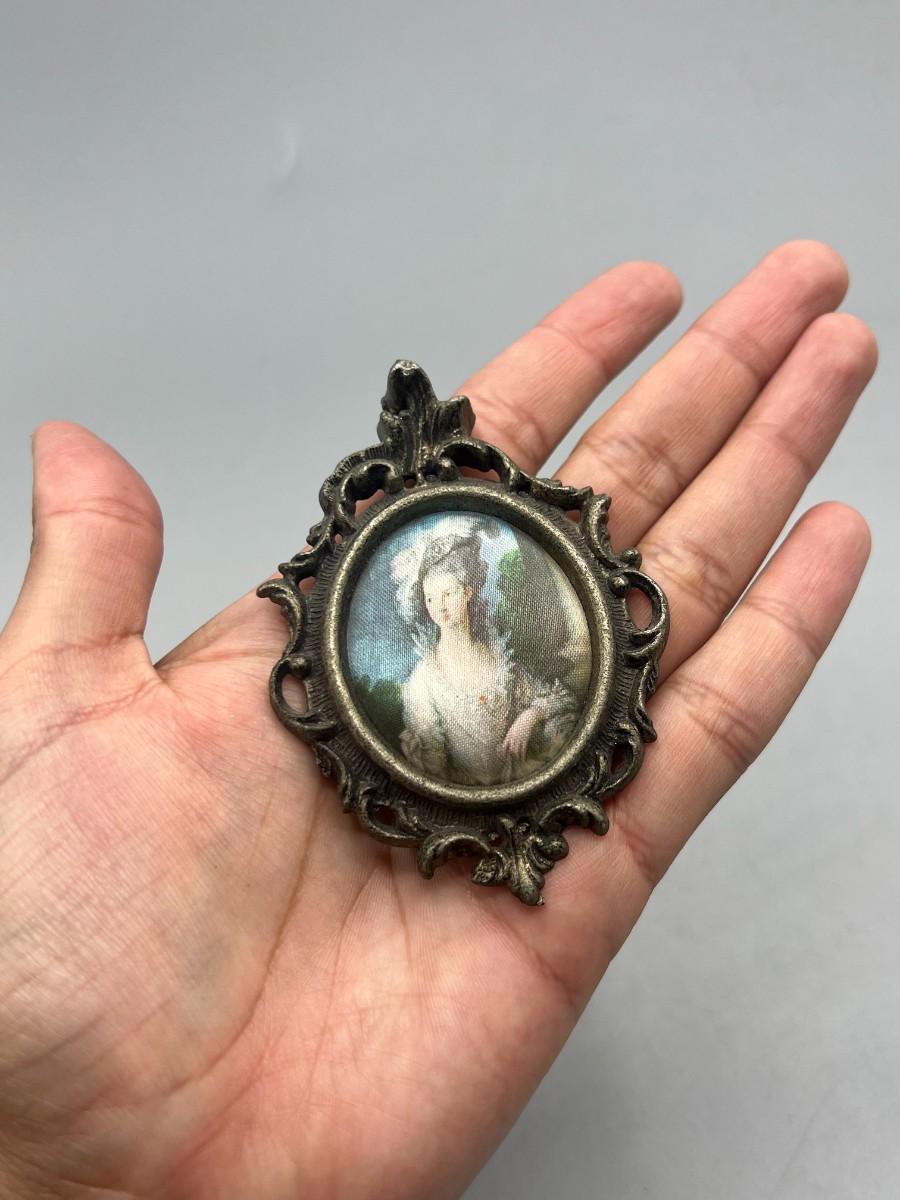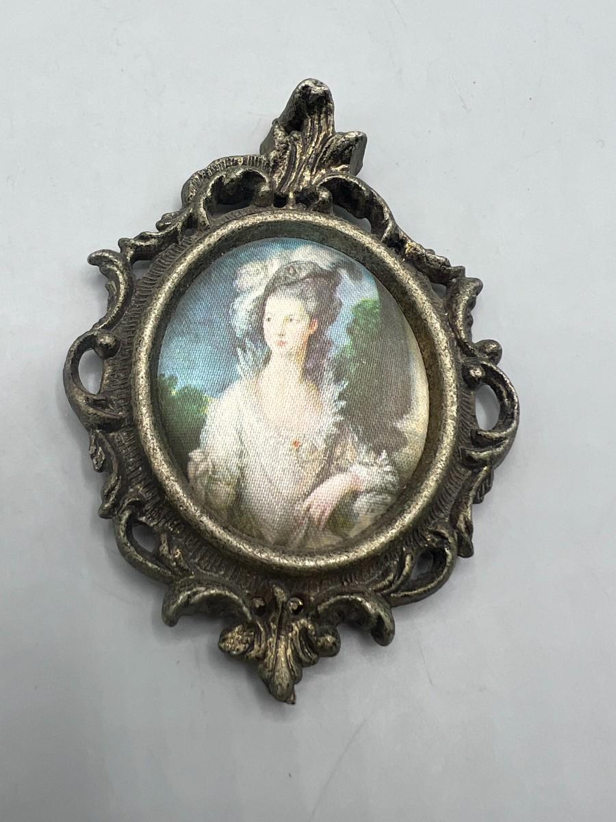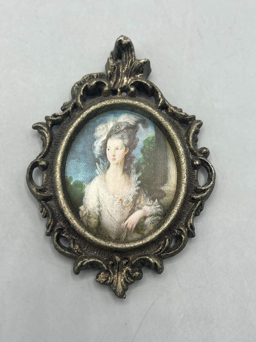 Vintage Framed Elegant Victorian Marie Antoinette Portrait Art Print on Soft Fabric Material