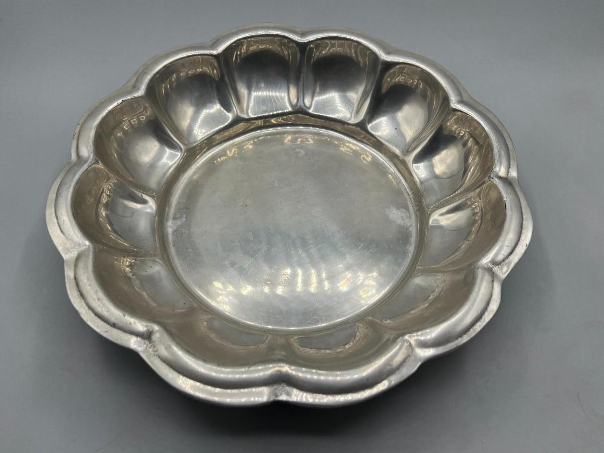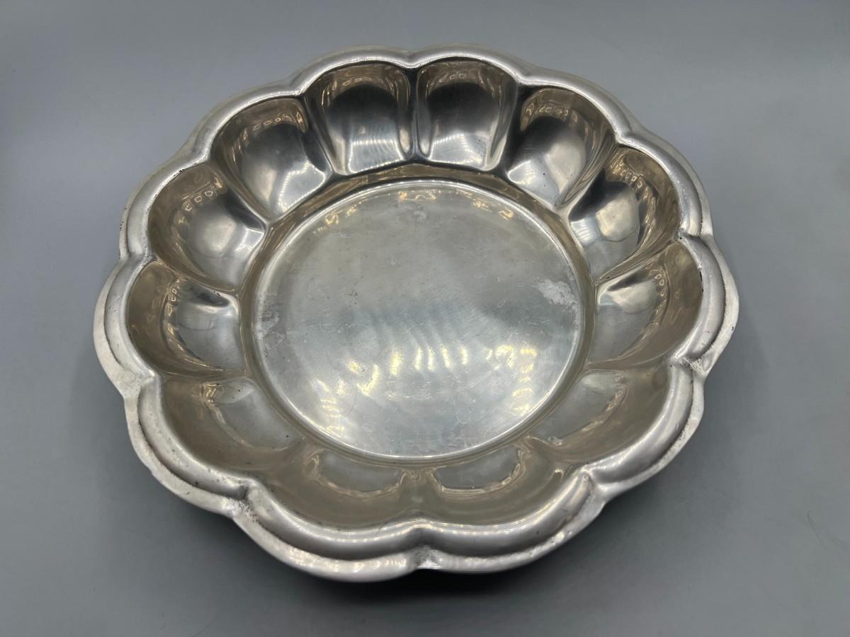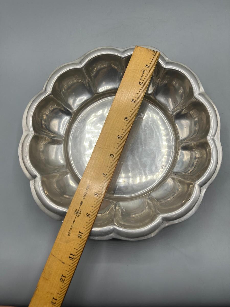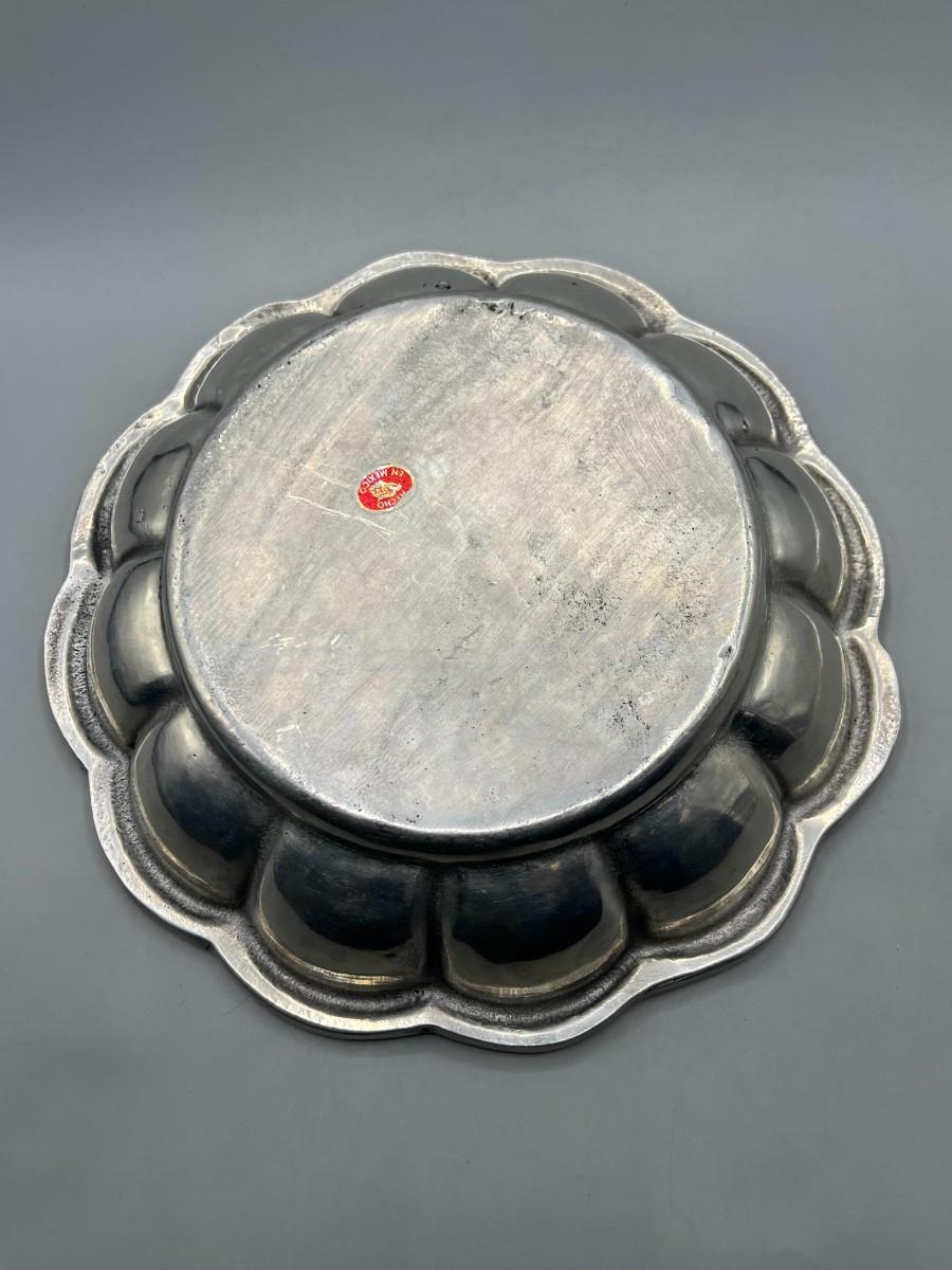 Vintage Hecho en Mexico Art Deco Flower Face Design Metal Serving Display Bowl