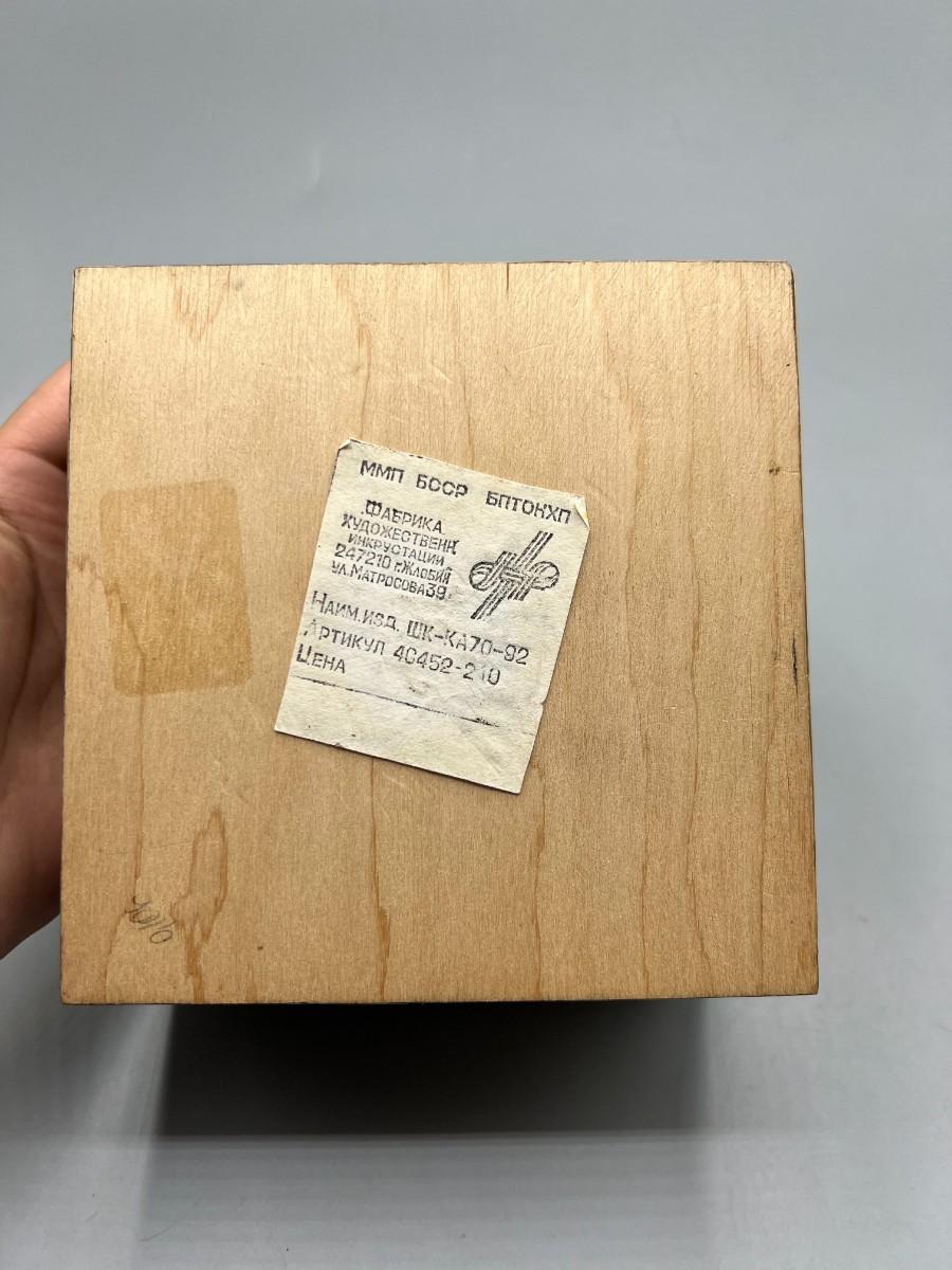 There are some light cracks to the edge, but there is no overall damage. There is a sticker on the bottom with the Tatar language, roughly translates to Factory of Art, the manufactured location, and publication article.