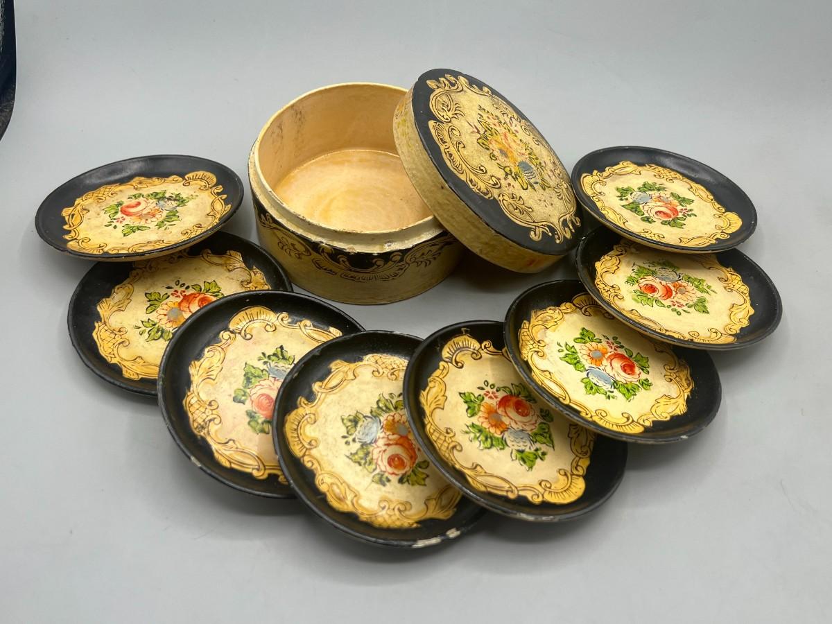 Vintage Made in Japan Intricate Hand Painted Rose Flower Design Finger Plate Dish Set with Box
