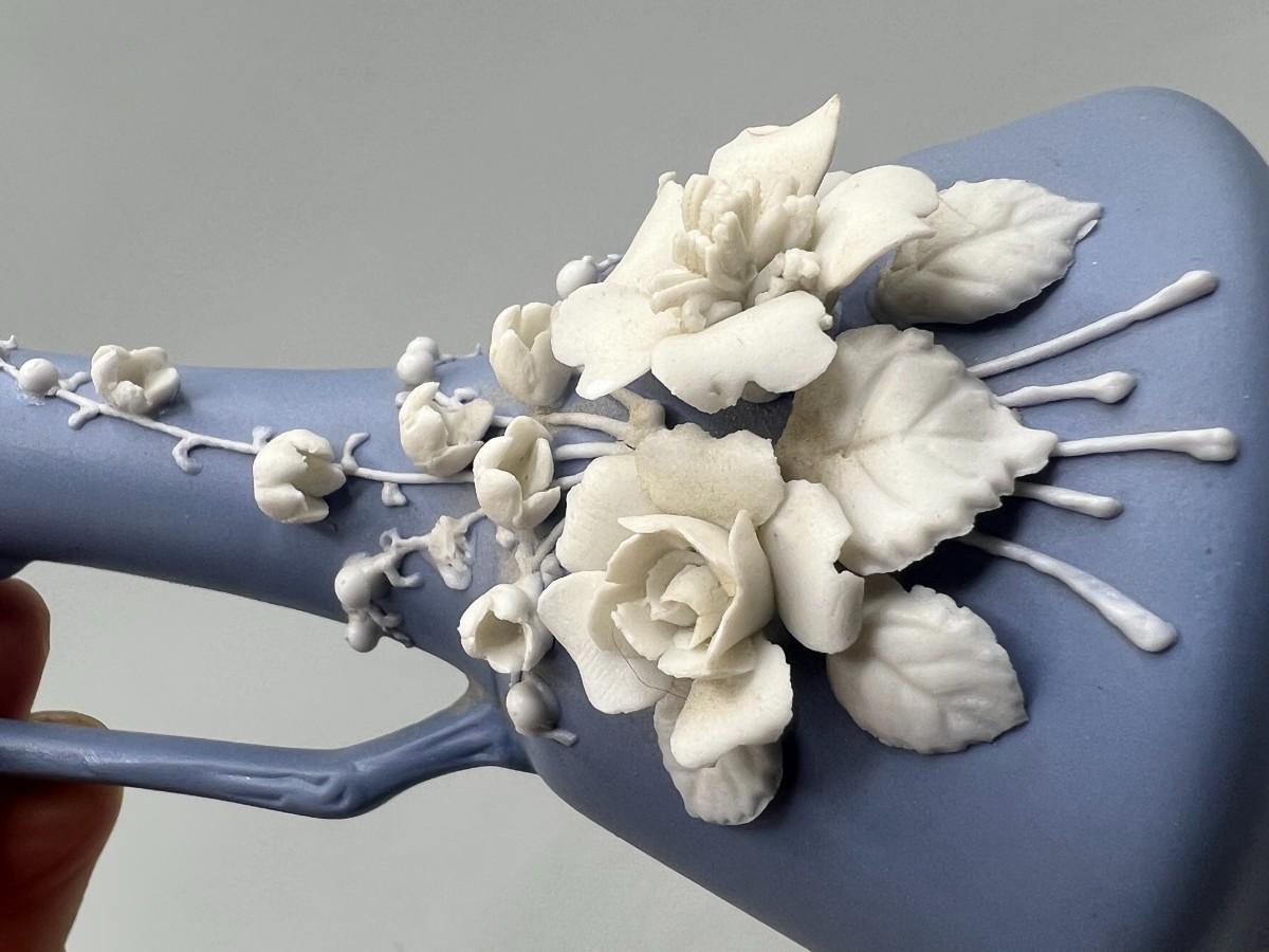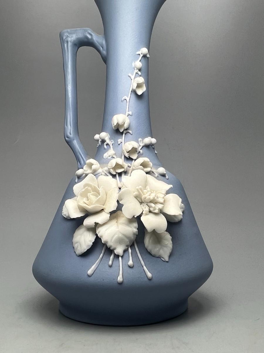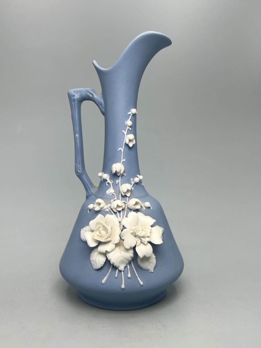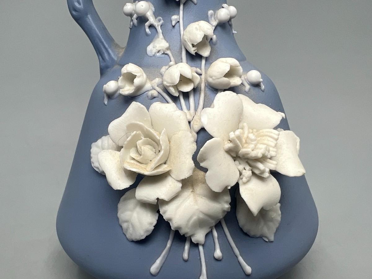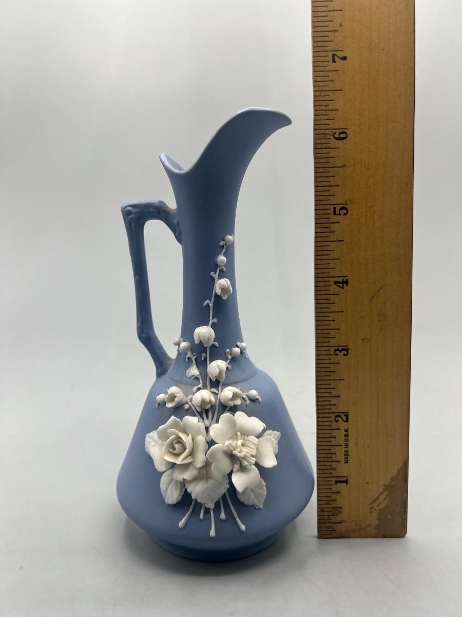 Small Vintage Lefton Pottery Porcelain White Rose Bud Flower Oil Pitcher