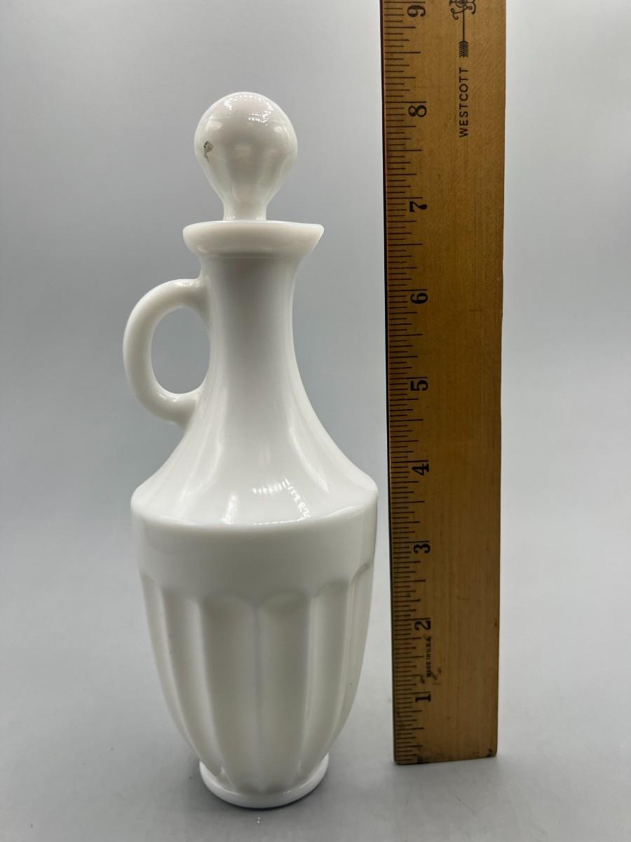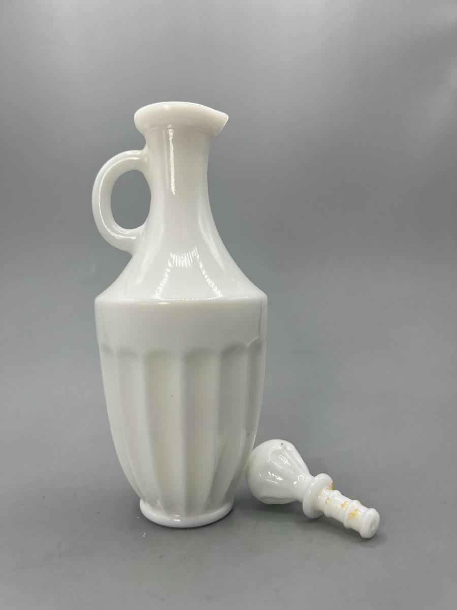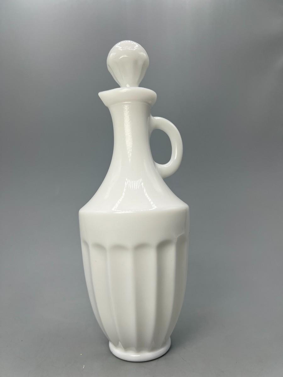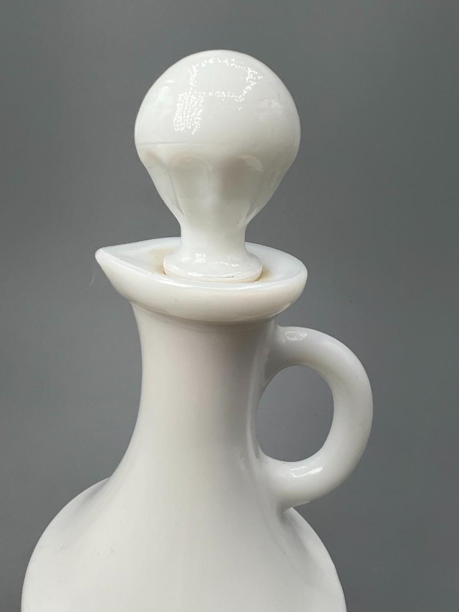 Vintage Milk Glass Decanter Oil Vinegar Bottle Cruet with Stopper