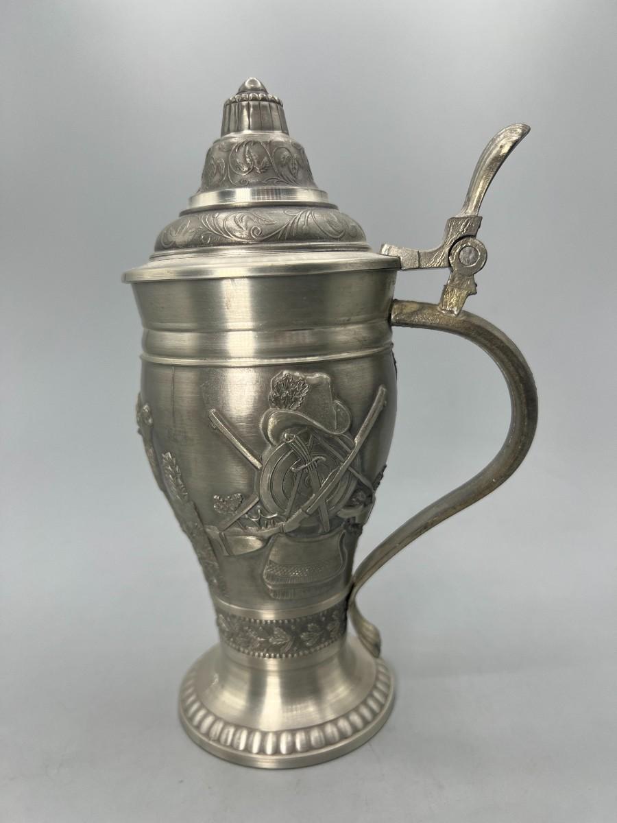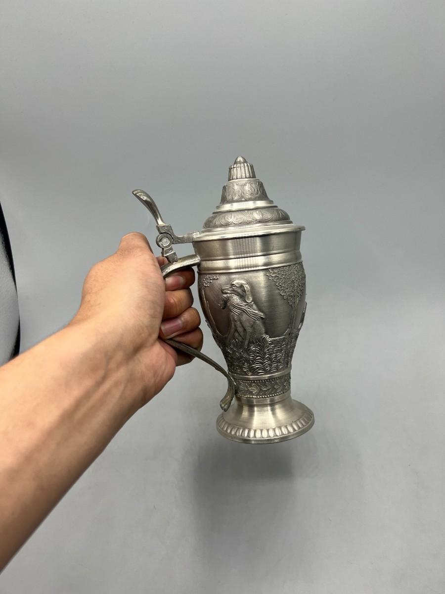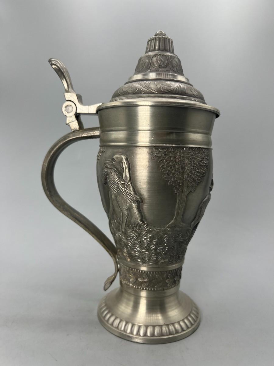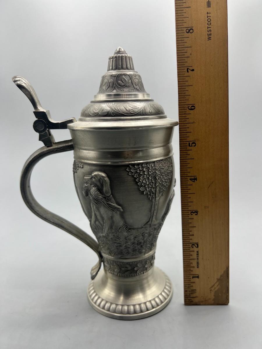 Vintage Pewter Hunting Scenes Lidded Beer Stein West Germany