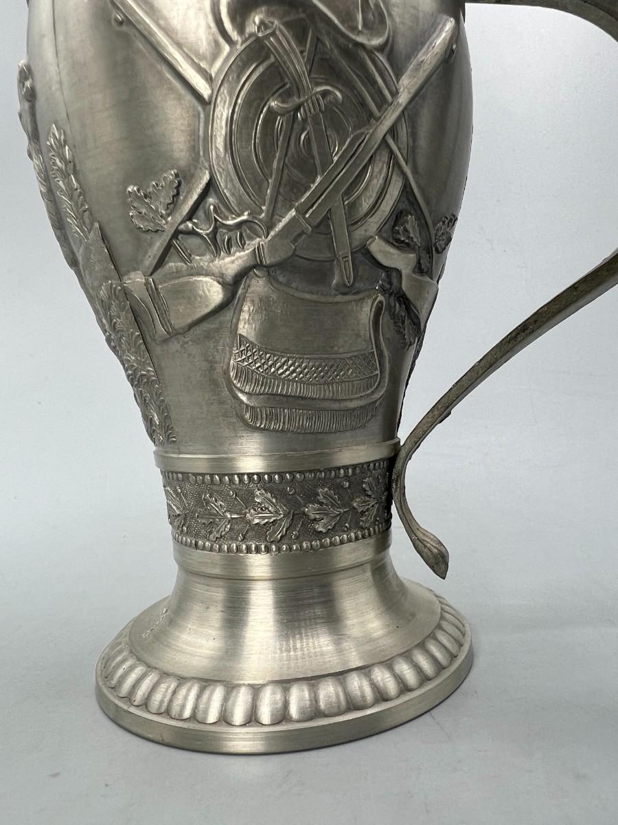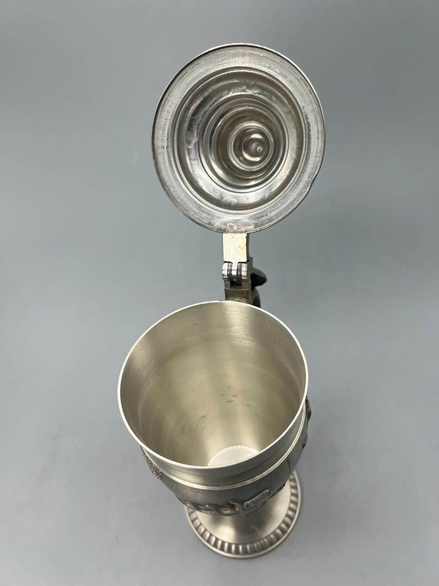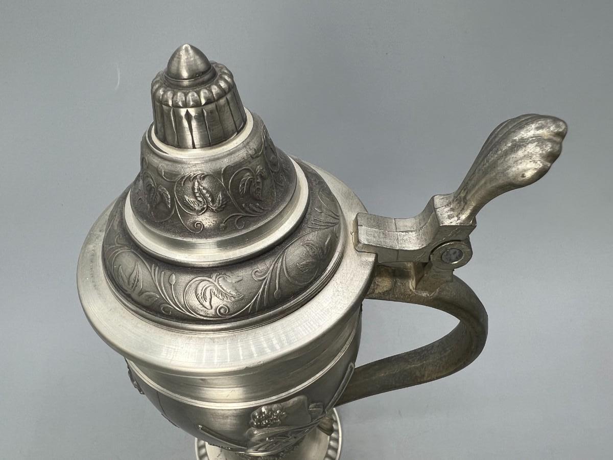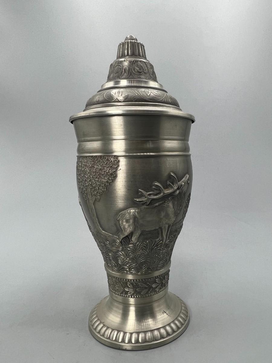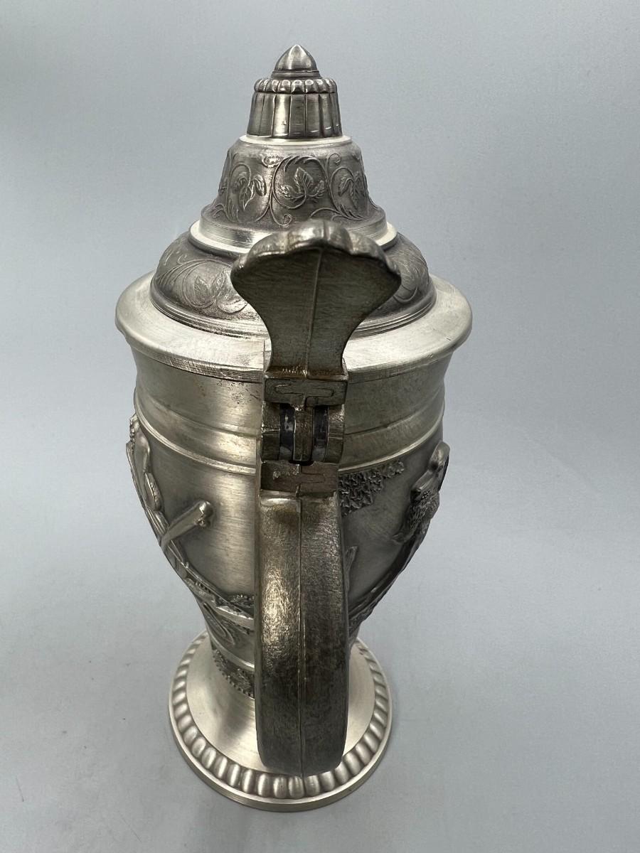 Vintage Pewter Hunting Scenes Lidded Beer Stein West Germany
