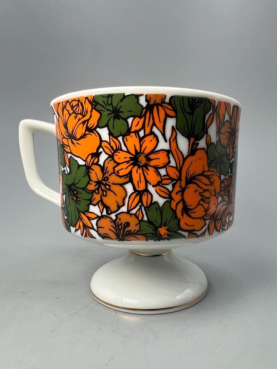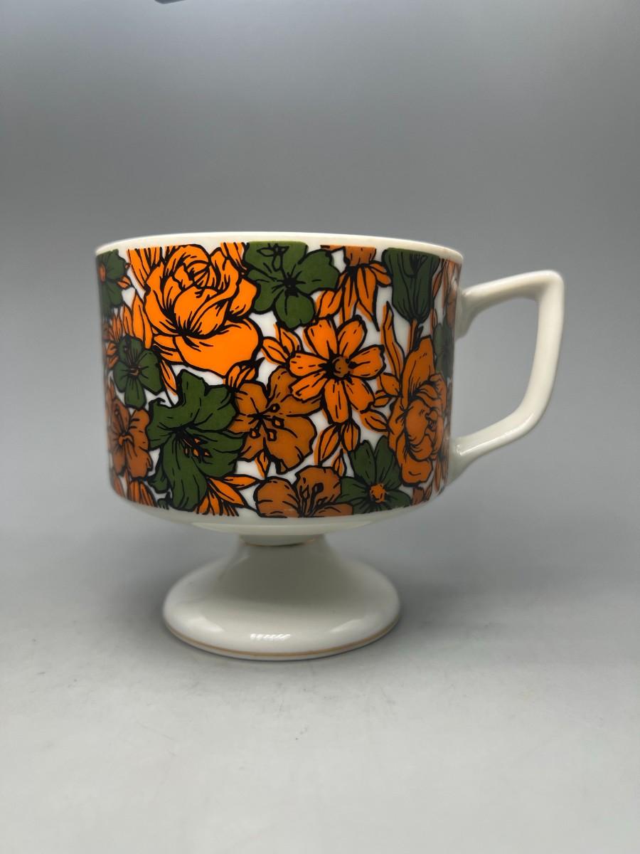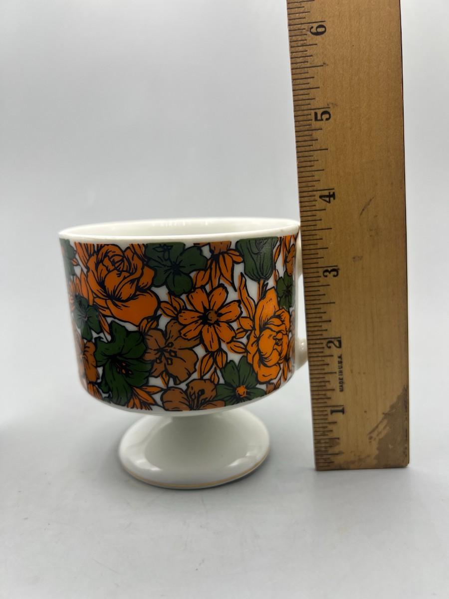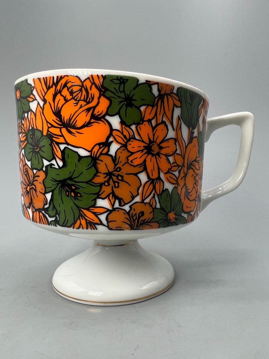 Vintage Made in Japan Orange & Green Floral Pedestal Coffee Cup Mug