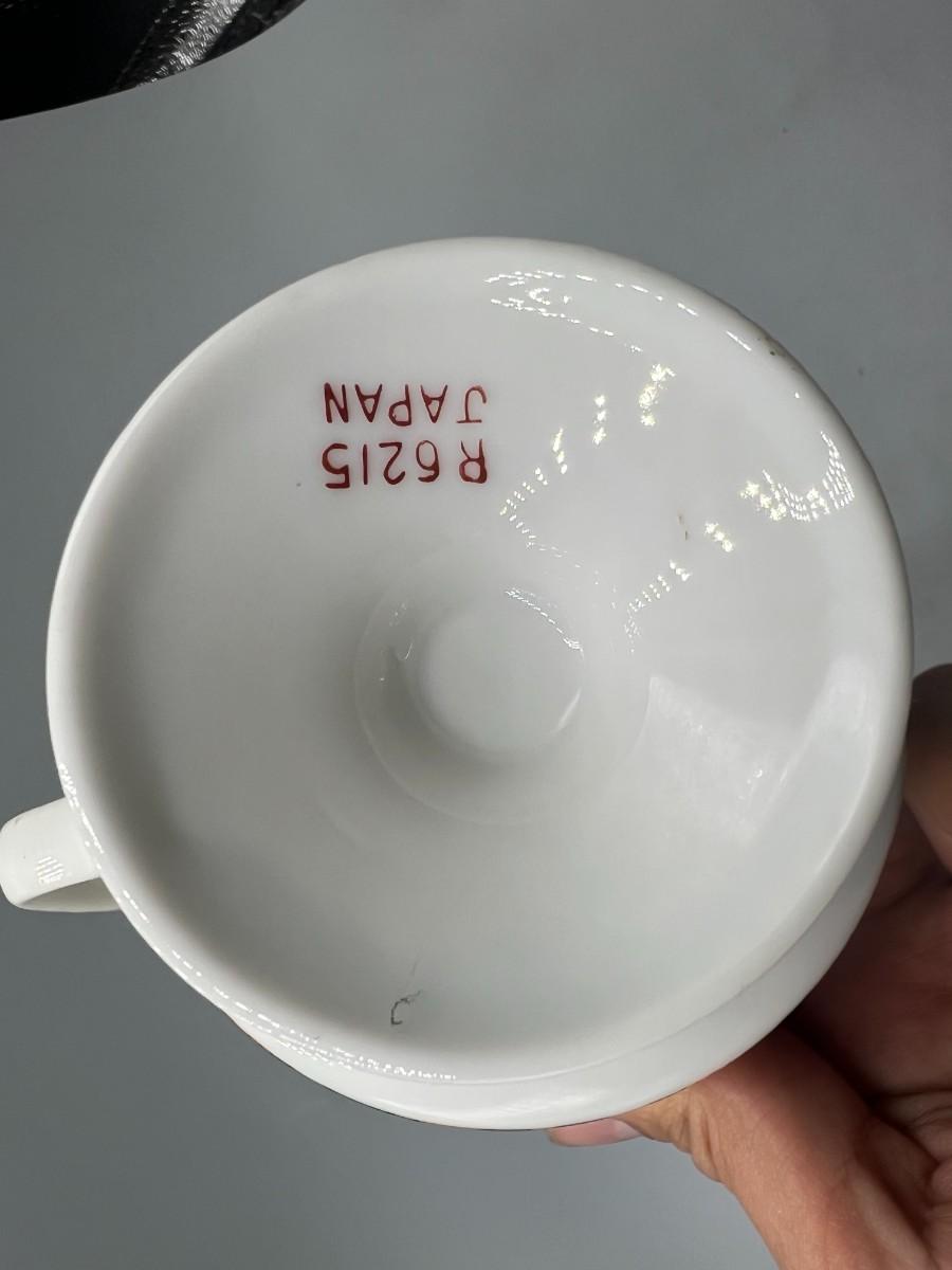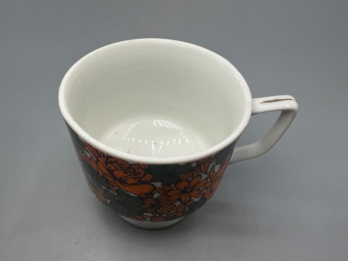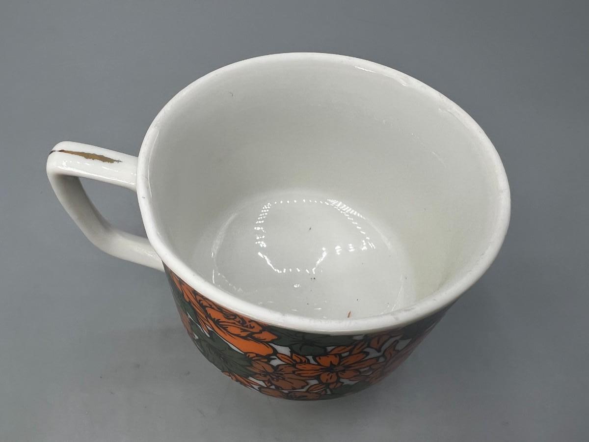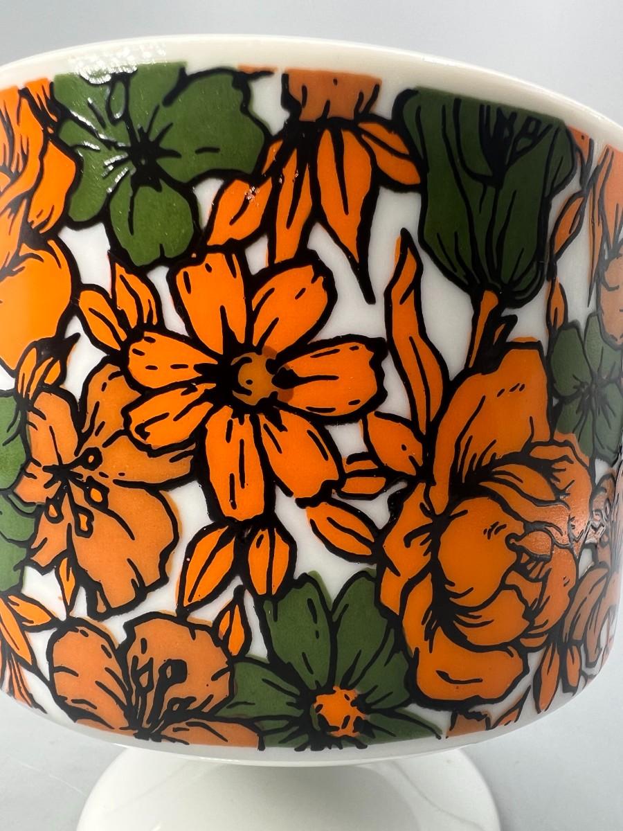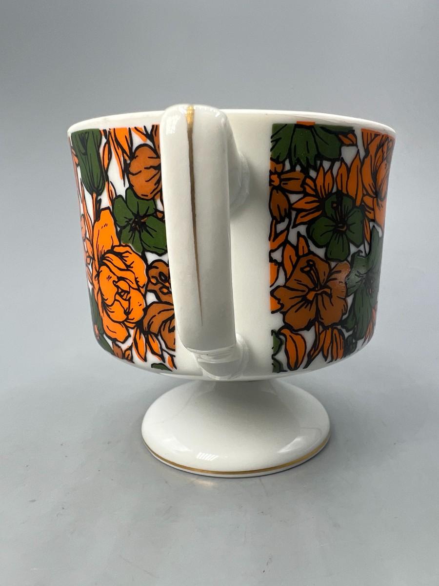 Vintage Made in Japan Orange & Green Floral Pedestal Coffee Cup Mug