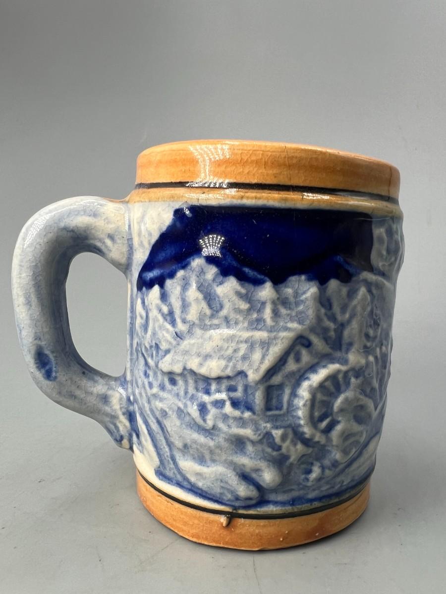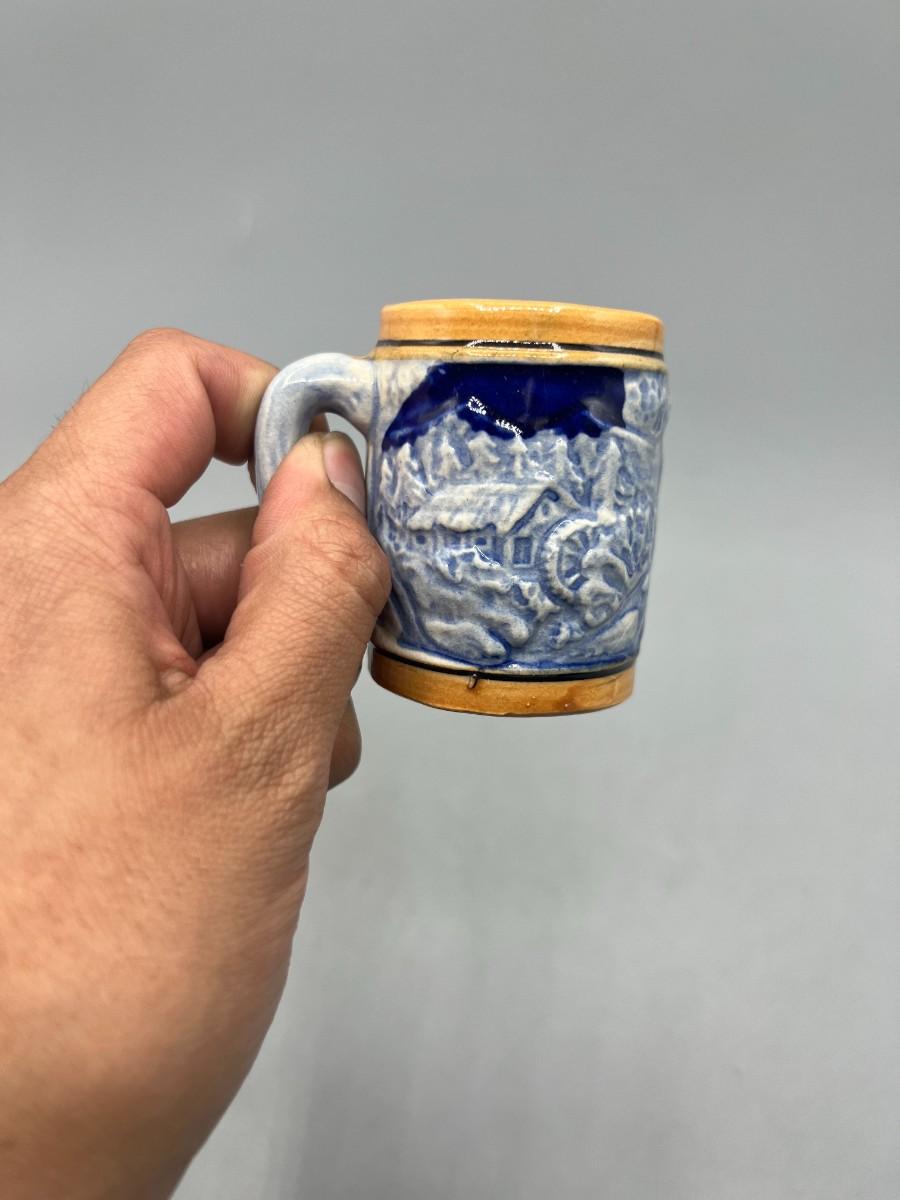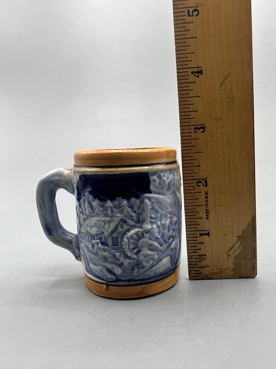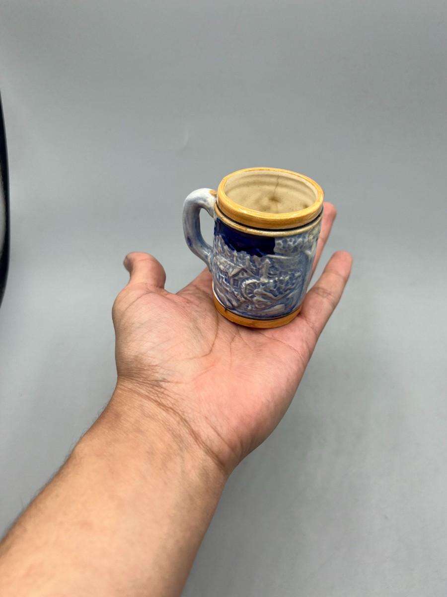 Miniature Blue Beer Stein Mug Japan. Some light wear and crazing. Under 3" size.