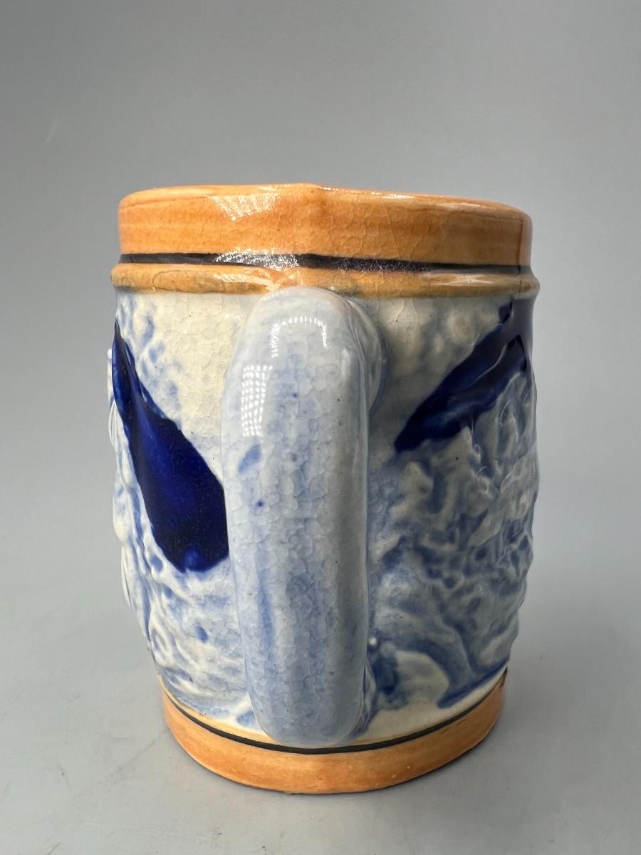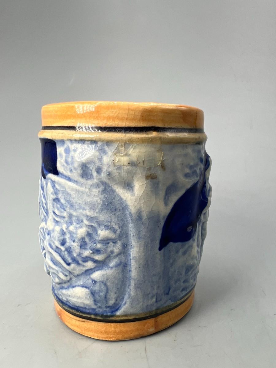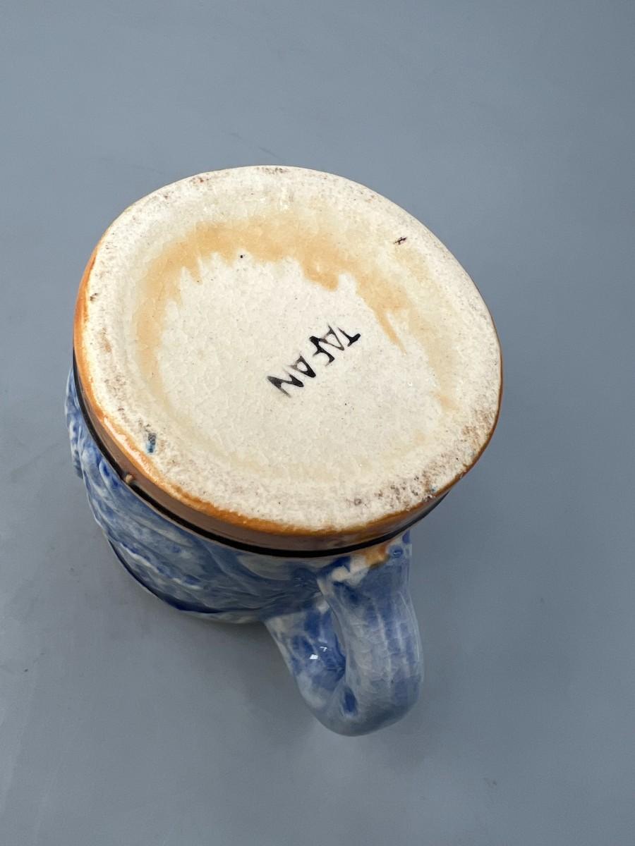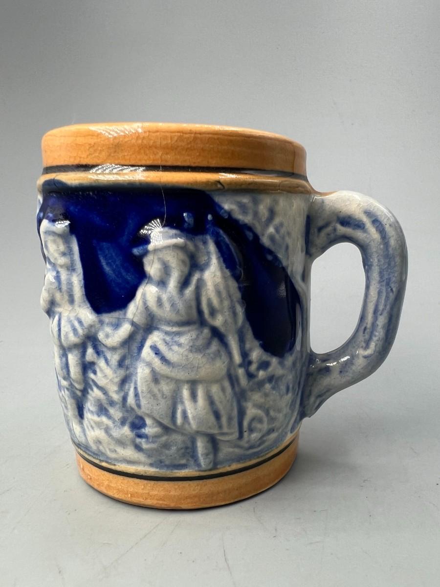 Miniature Blue Beer Stein Mug Japan. Some light wear and crazing. Under 3" size.