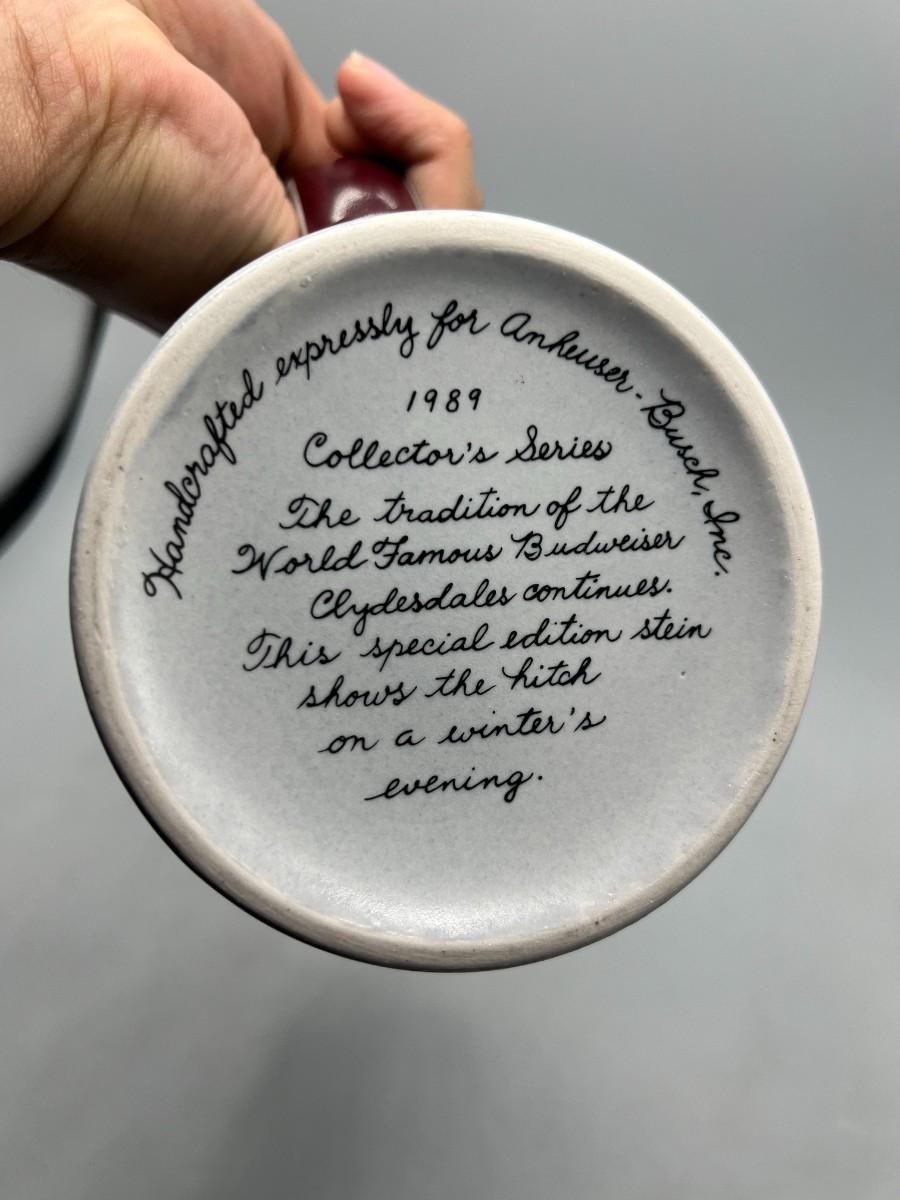 1989 Budweiser Collector Series Clydesdales Beer Stein. In good condition.