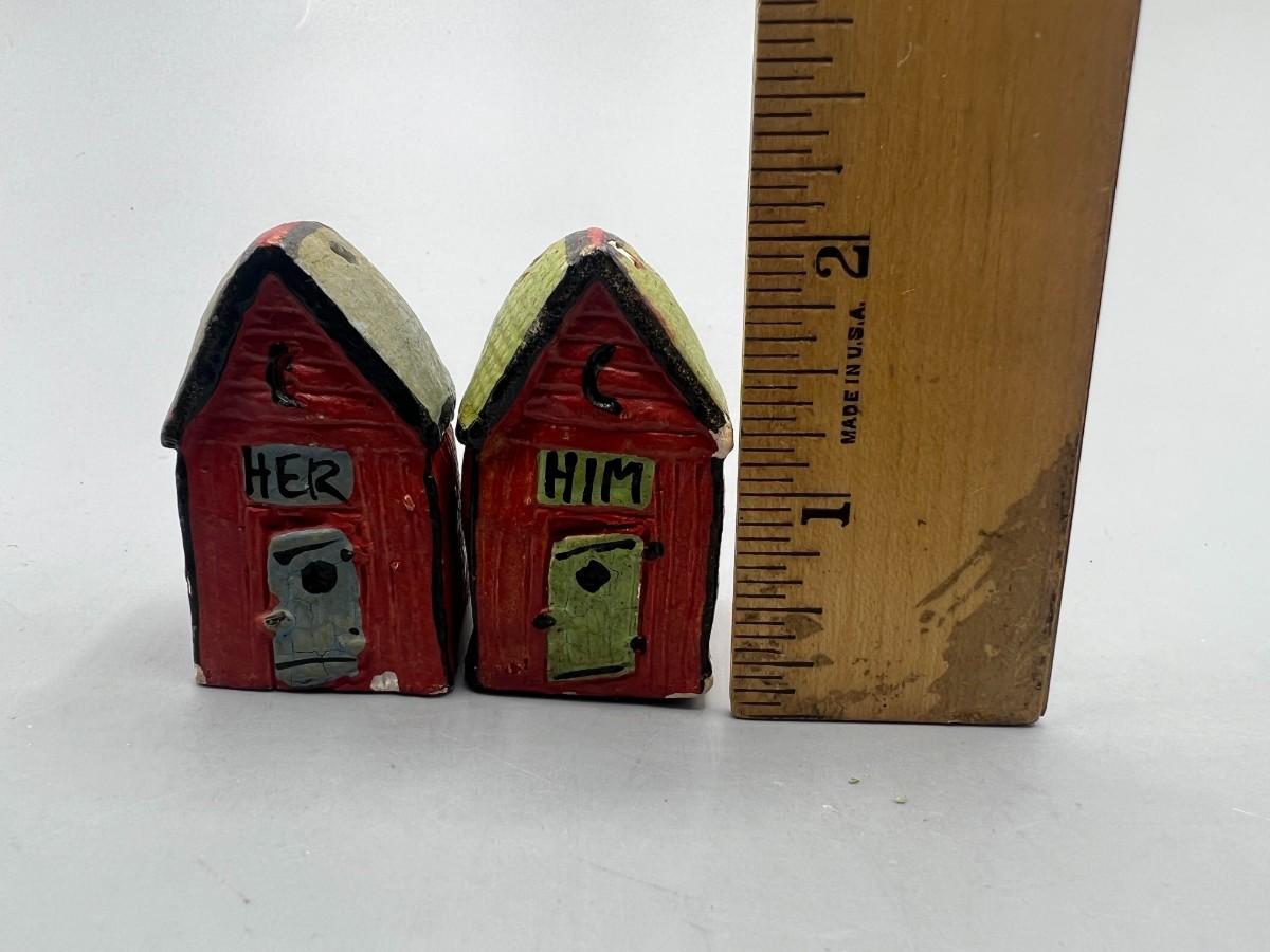 Vintage Him & Her Rustic Country Outhouse Salt & Pepper Shakers
