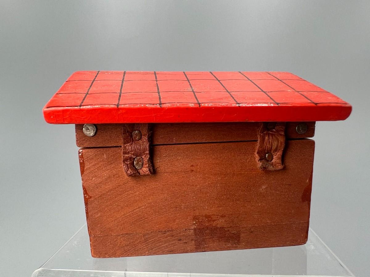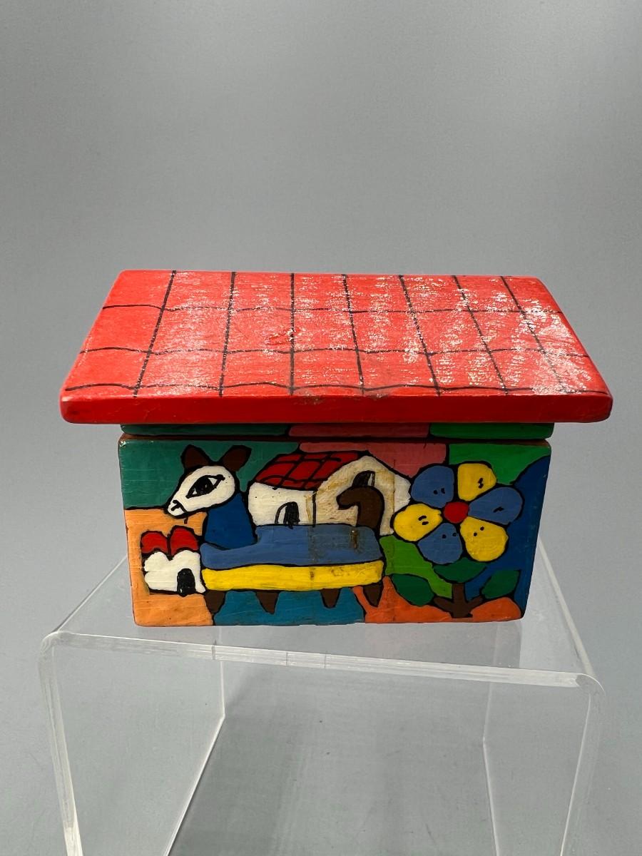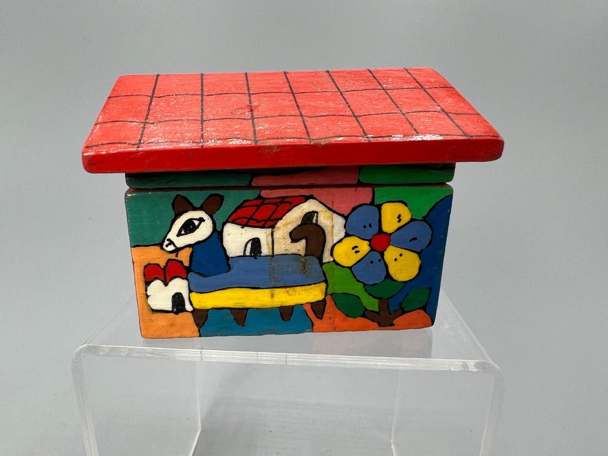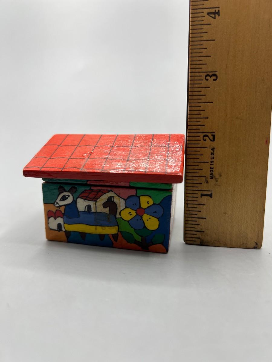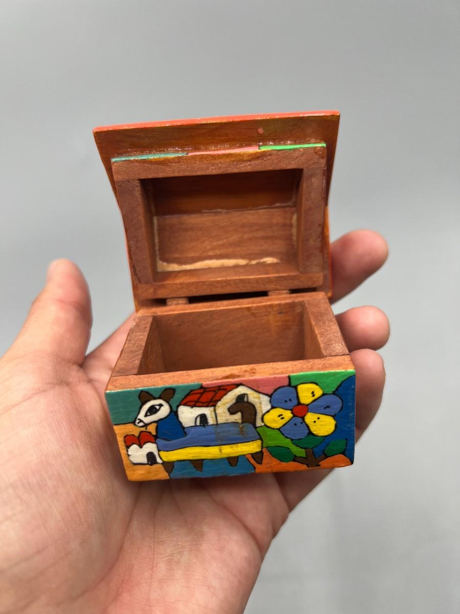 Vintage Wooden Hand Painted Folk Art Small Trinket Box