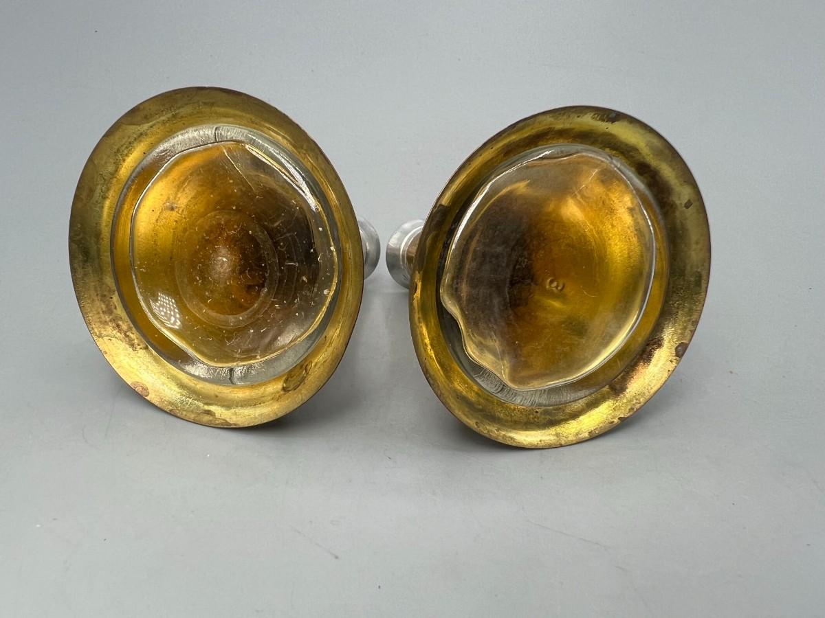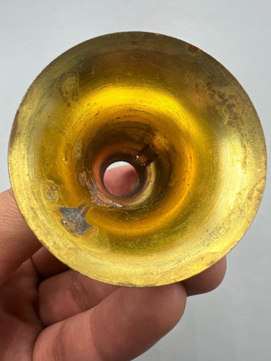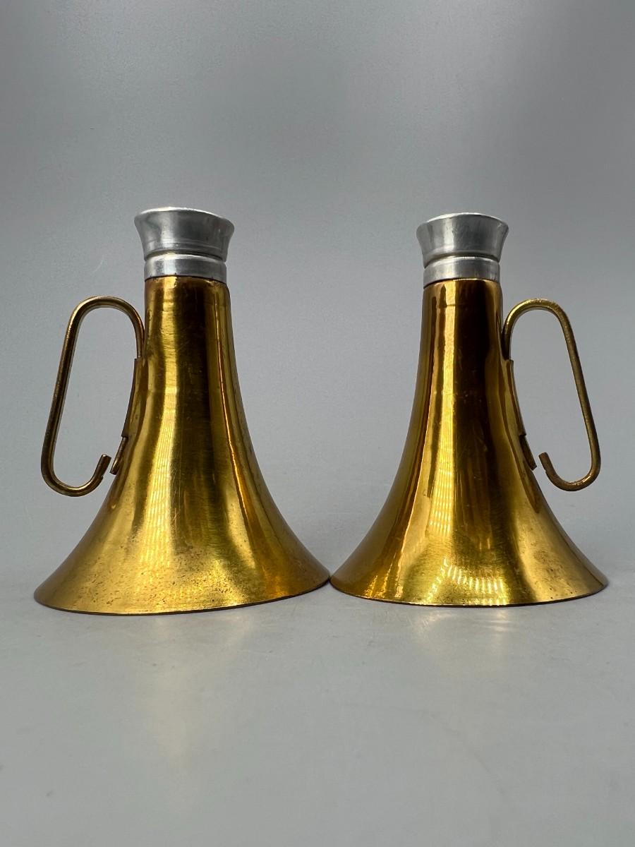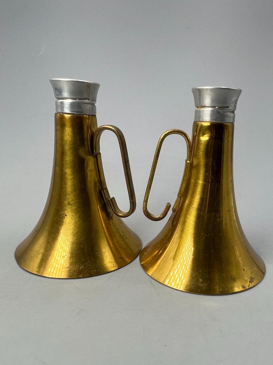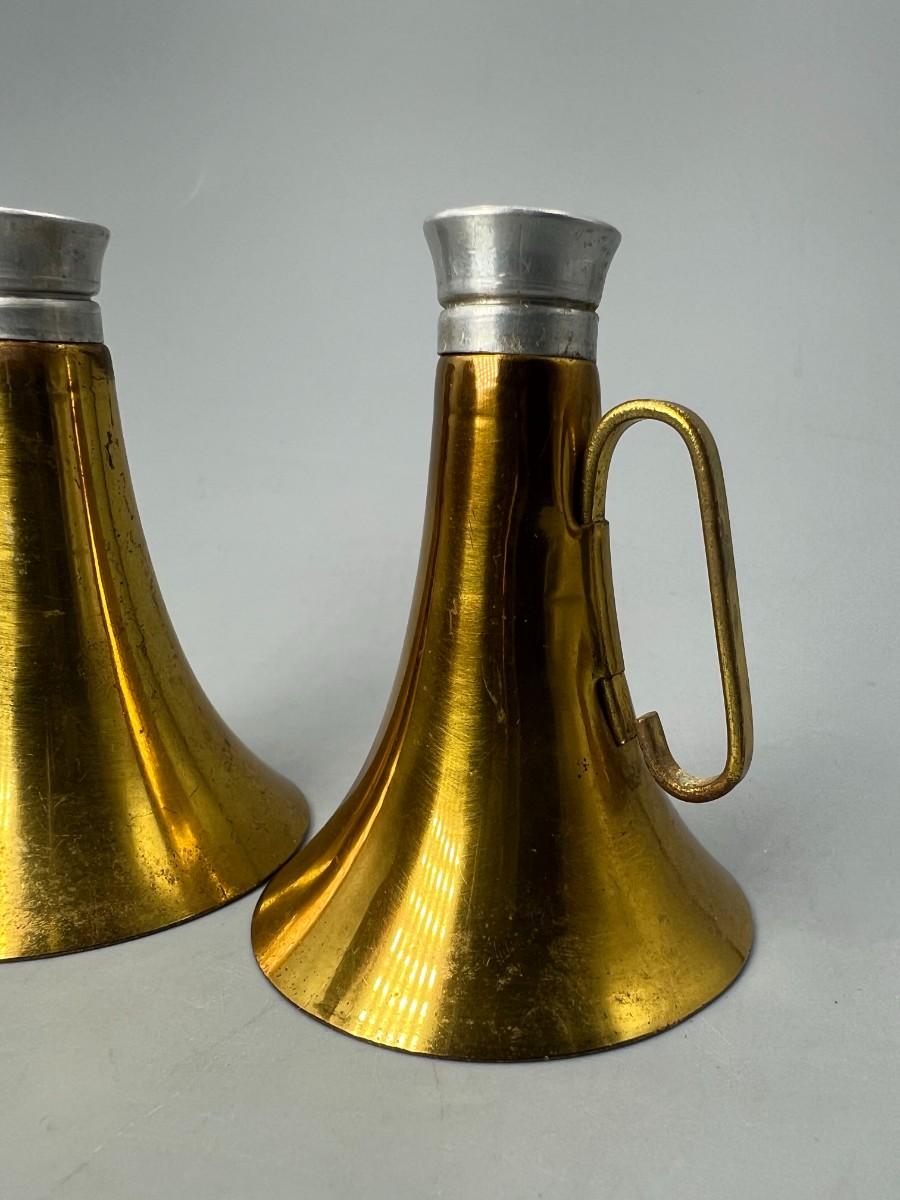 Vintage Brass Horn Megaphone Shaped Glass Container Salt & Pepper Shakers
