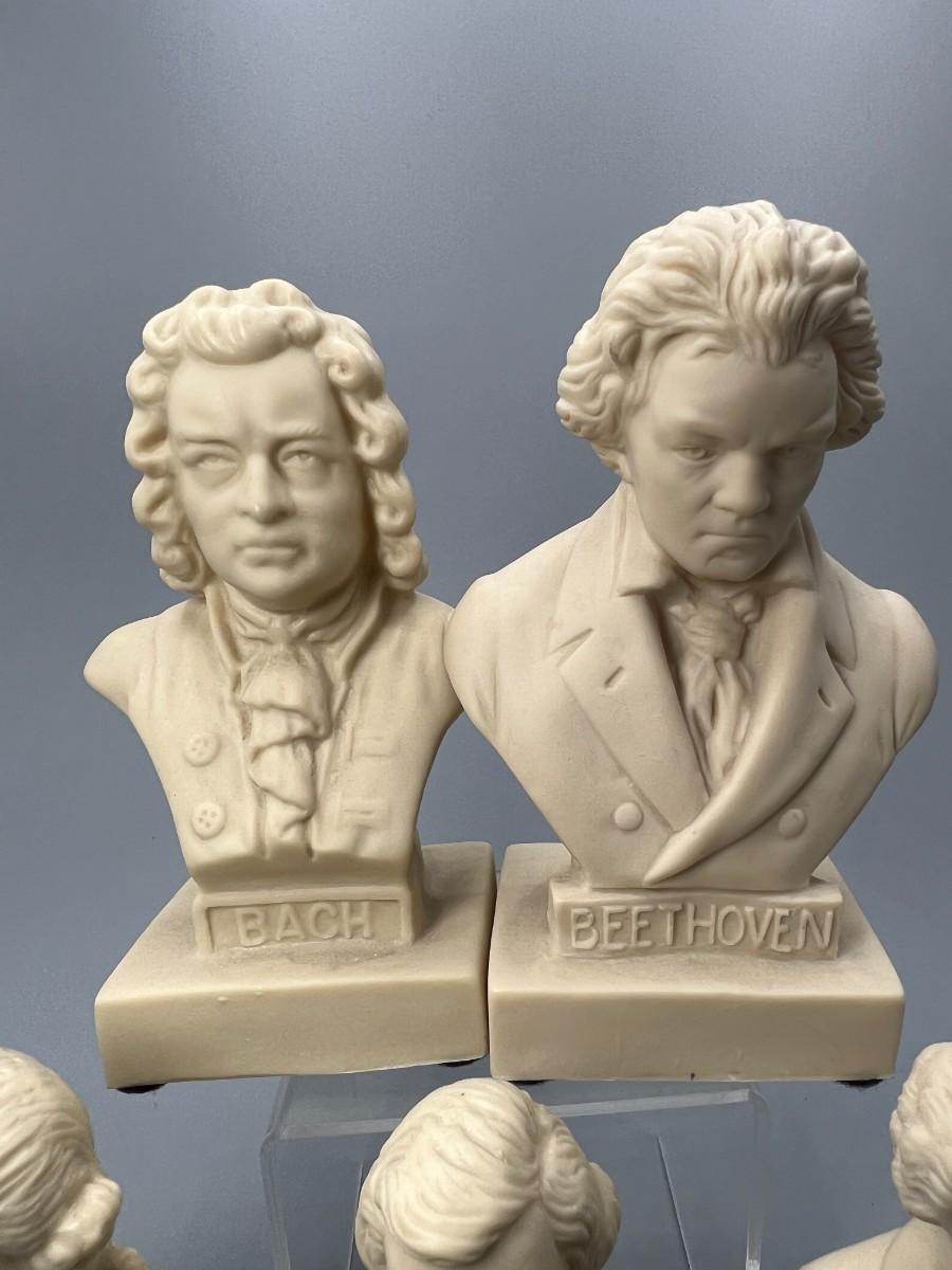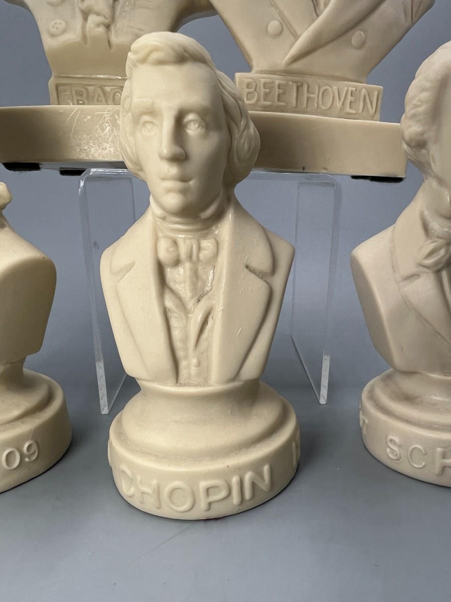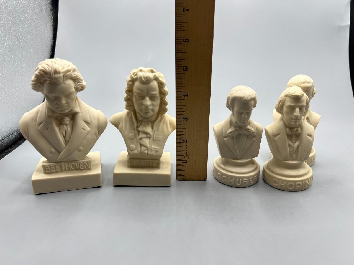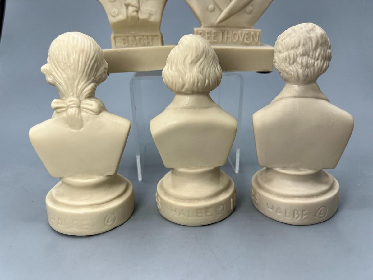 Vintage Halbe Composers Miniature Vinyl Busts Chapin, Bach, Beethoven, & More
