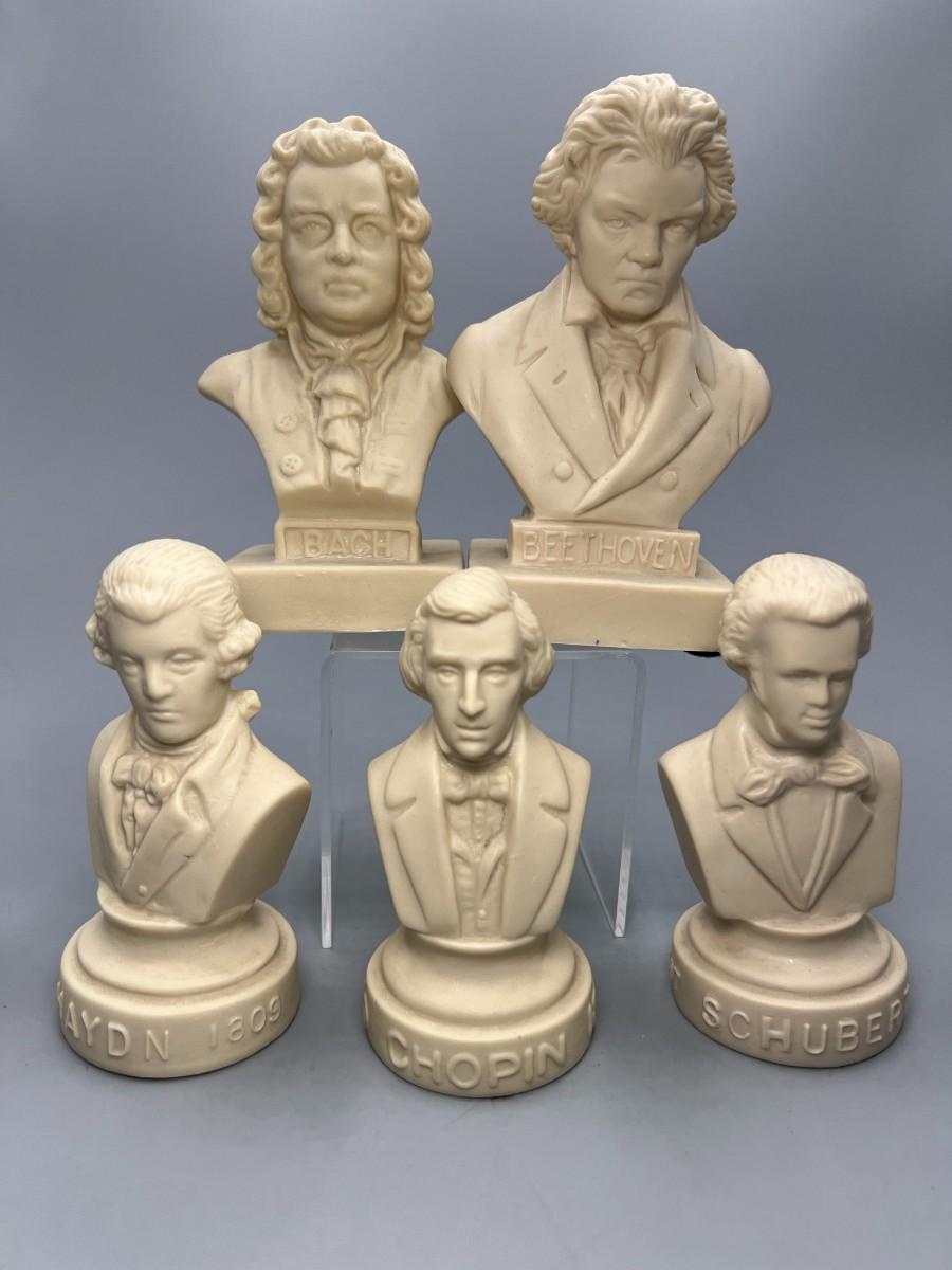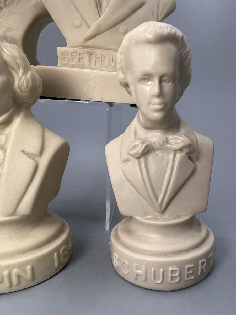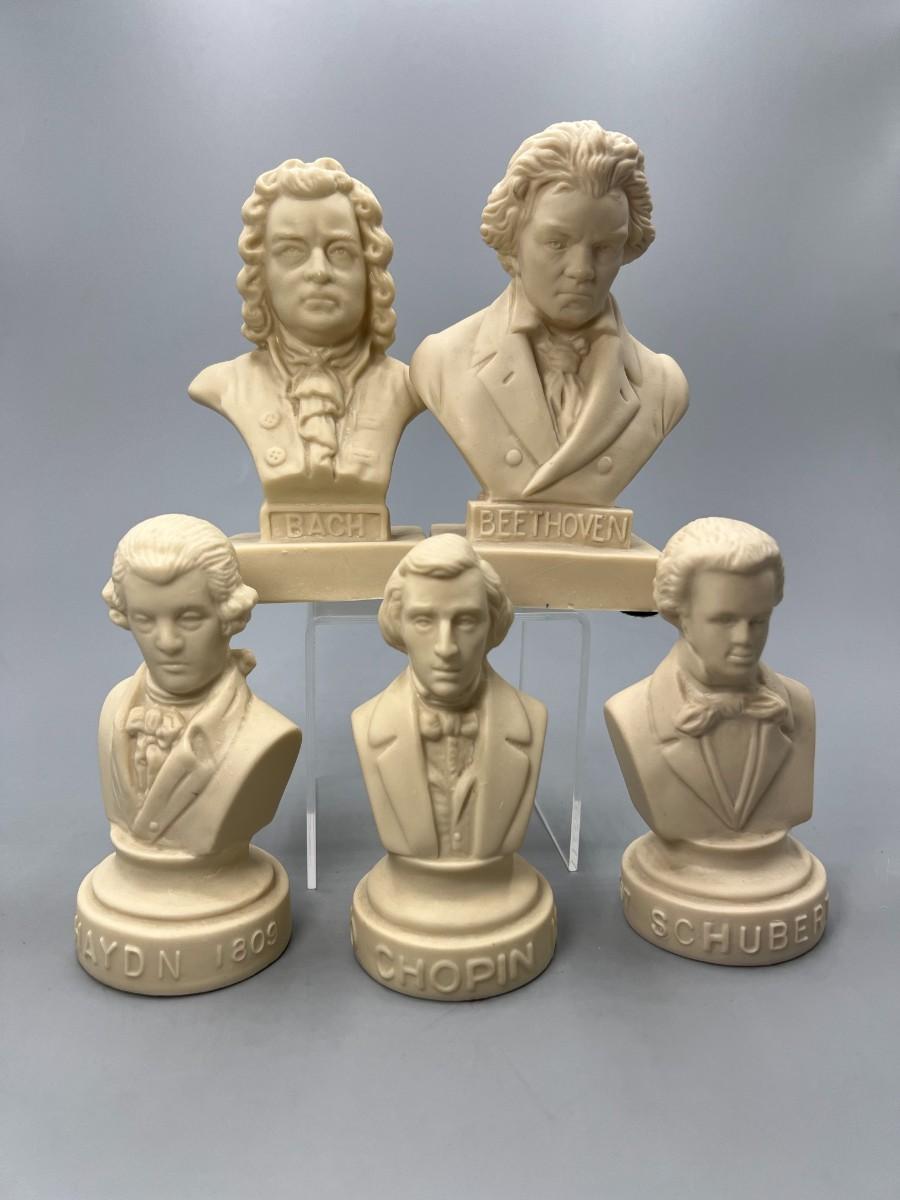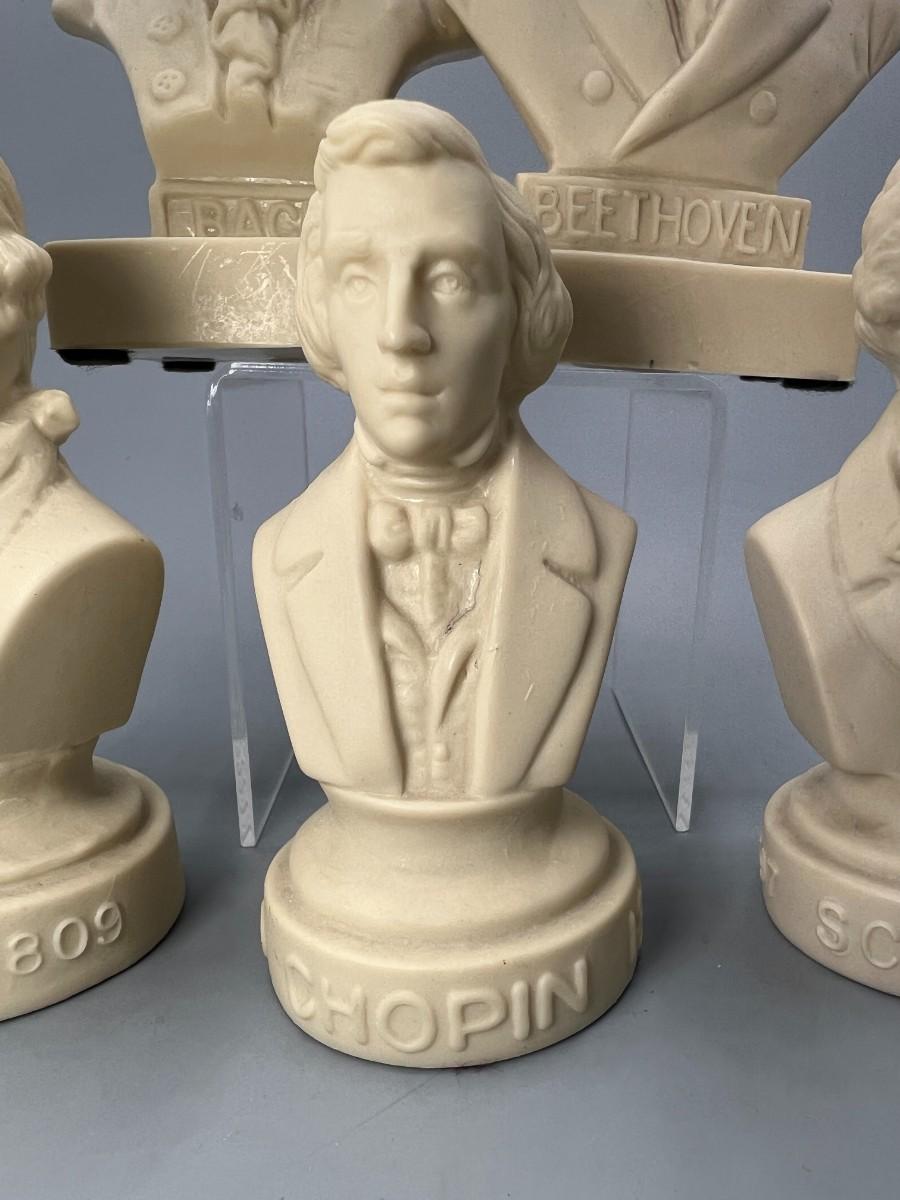 Vintage Halbe Composers Miniature Vinyl Busts Chapin, Bach, Beethoven, & More