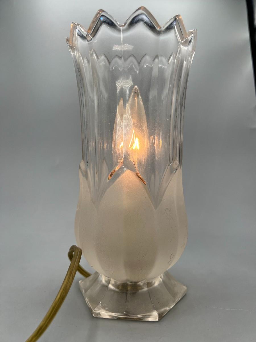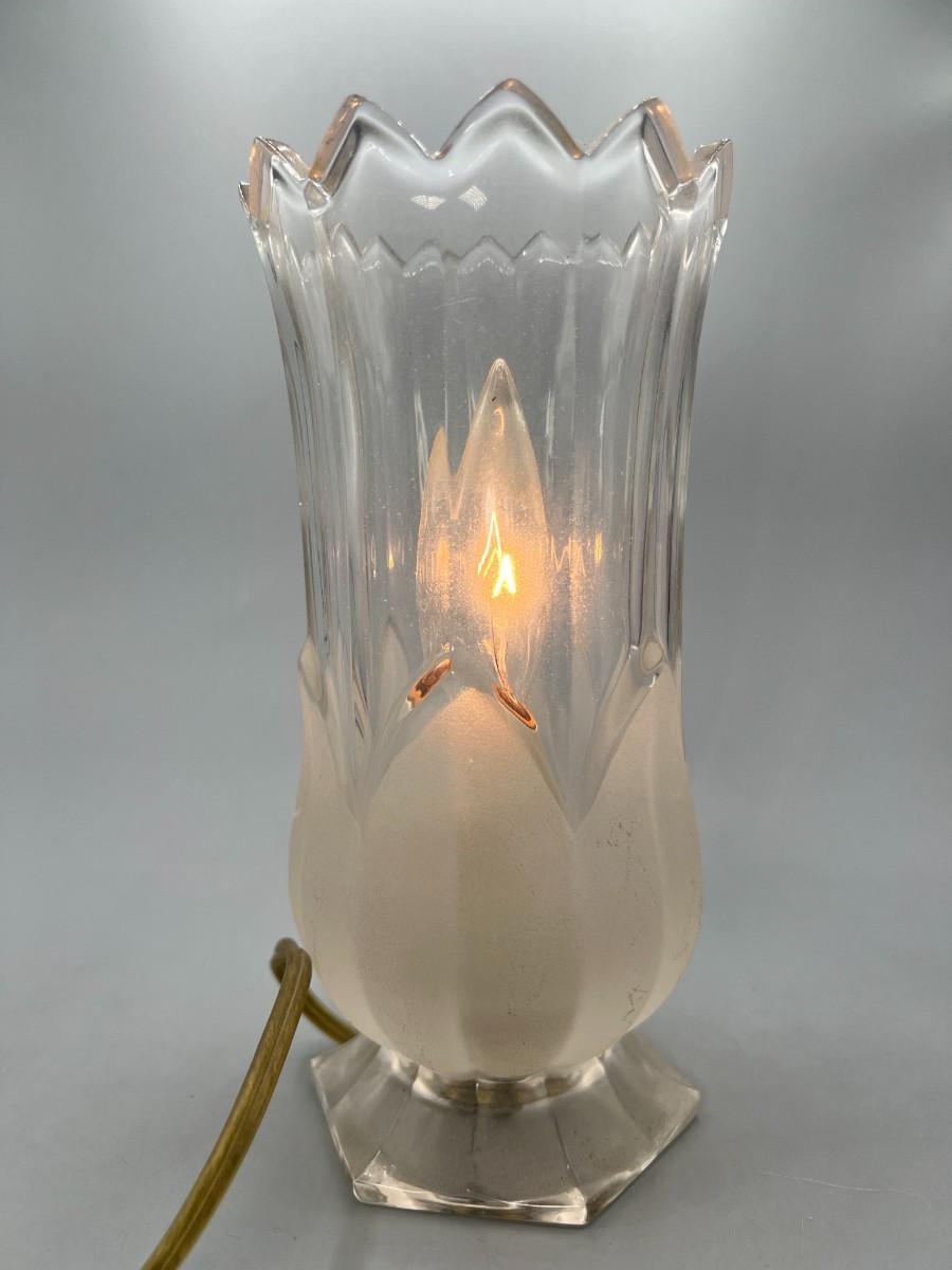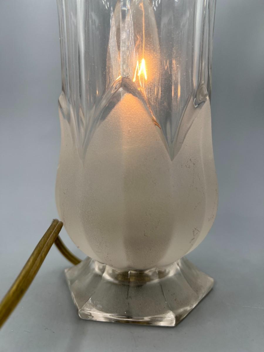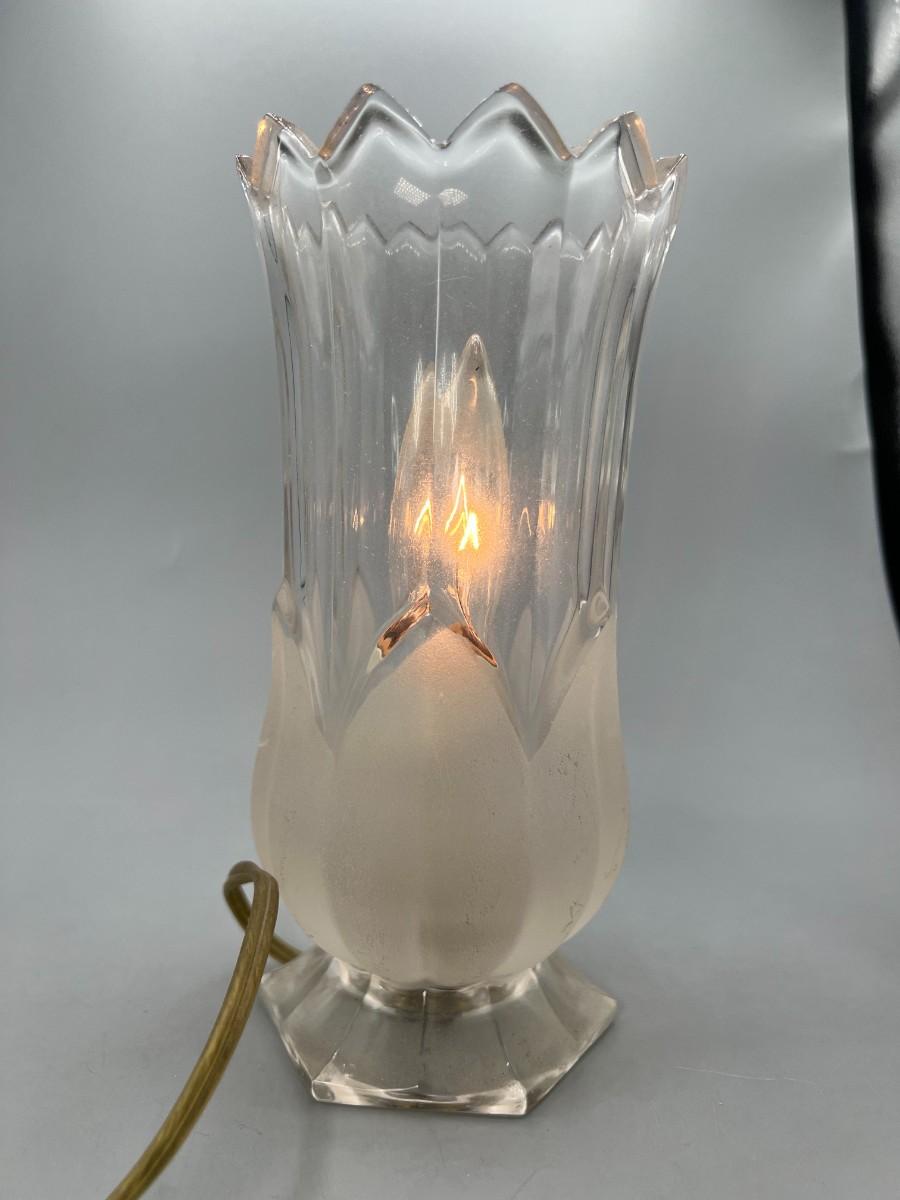 Vintage Frosted Crystal Tulip Boudoir Table Lamp