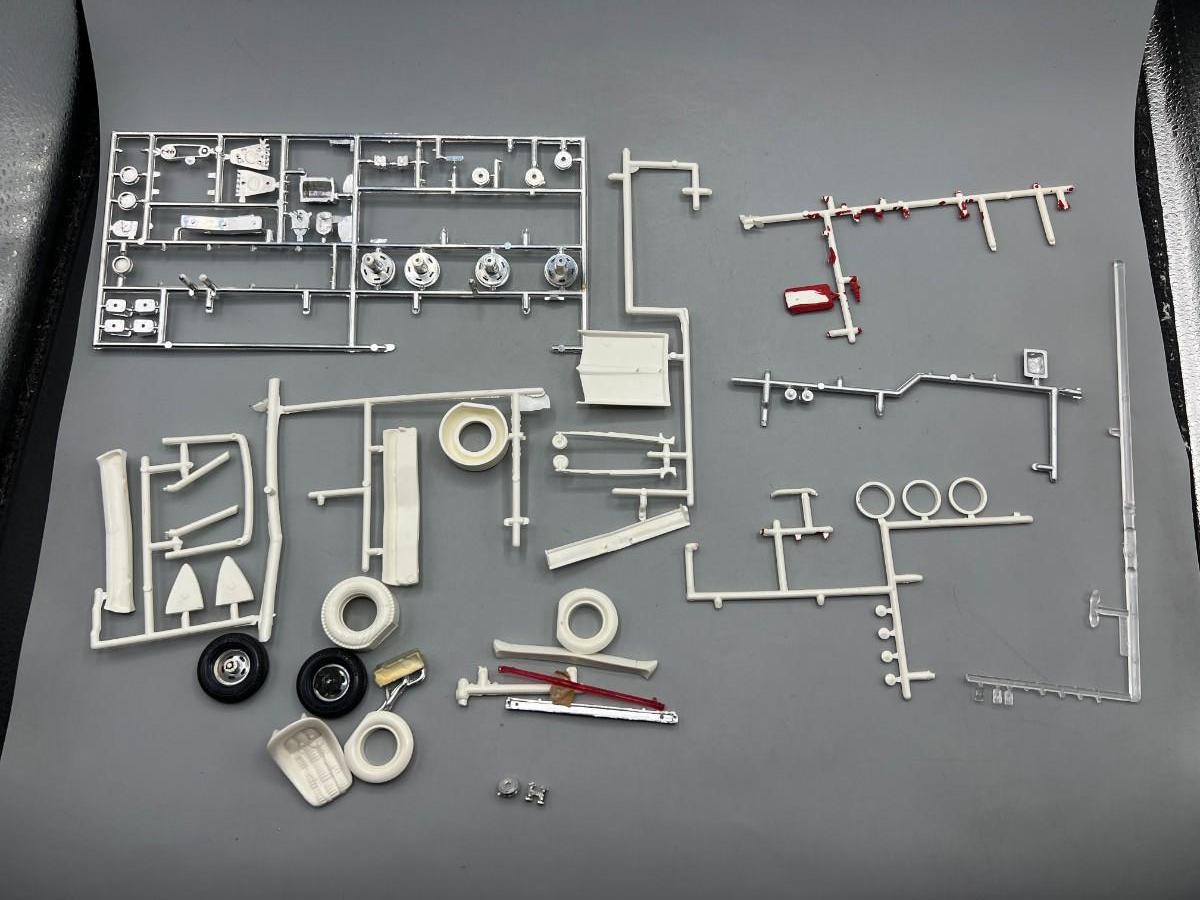 The kit has been started but not finished, all the pieces are laid out. Check pictures for more details, comes with instructions, unused stickers, & original box.