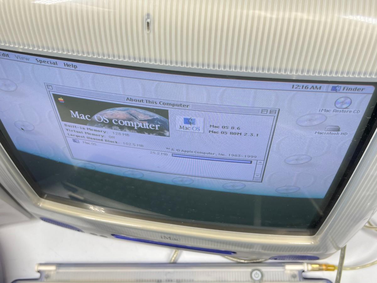 Working Retro iMac G3 Bondi Blue Macintosh Computer MacOS 8.6 with Speakers & Replacement Keyboard
