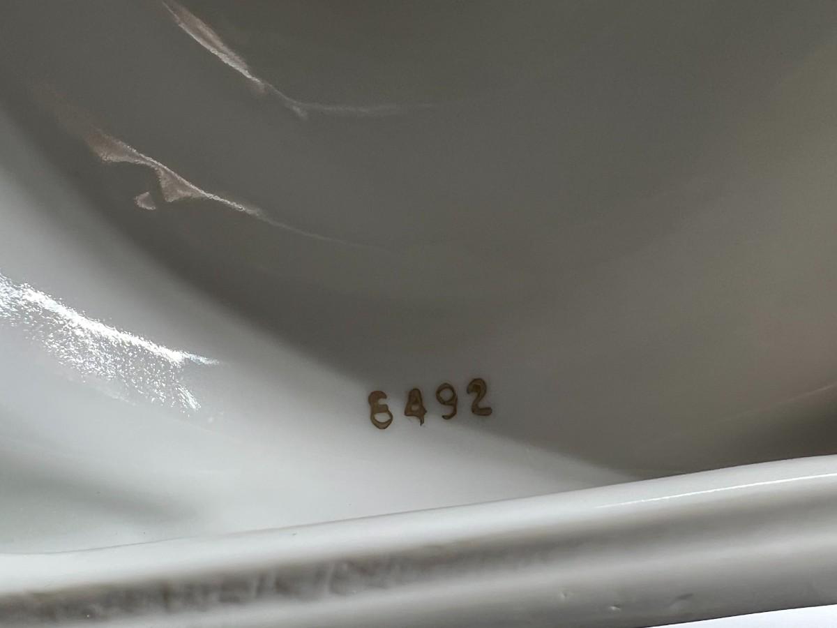 In good condition, no cracks, chips, or crazing. Bottom shows ID number and still has label.
