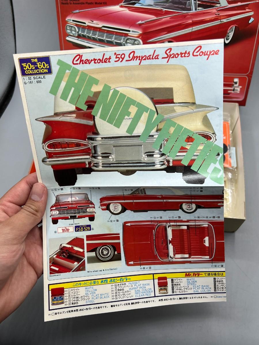New Gunze Sangyo Red Chevrolet '59 Impala 1/32 Scale Ready to Assemble Plastic Model Car Kit