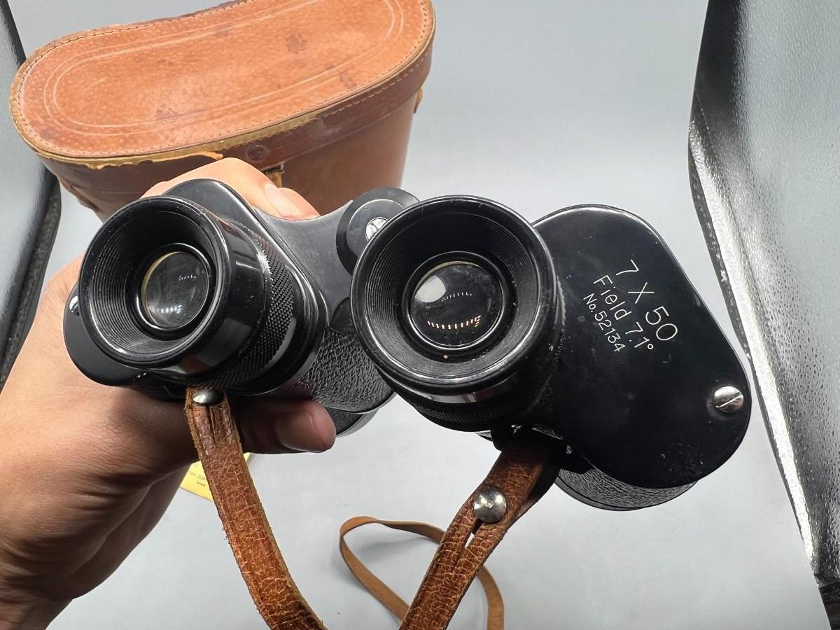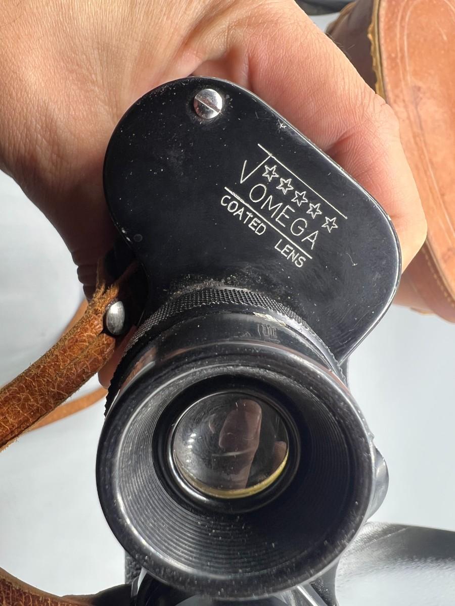 Vintage Omega Coated Lens Binoculars 7x 50 Field 7.1 No. 9828 with Original Case