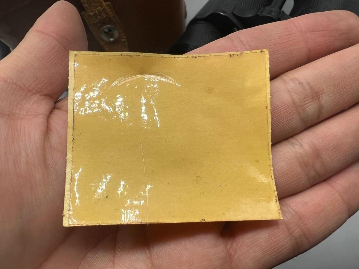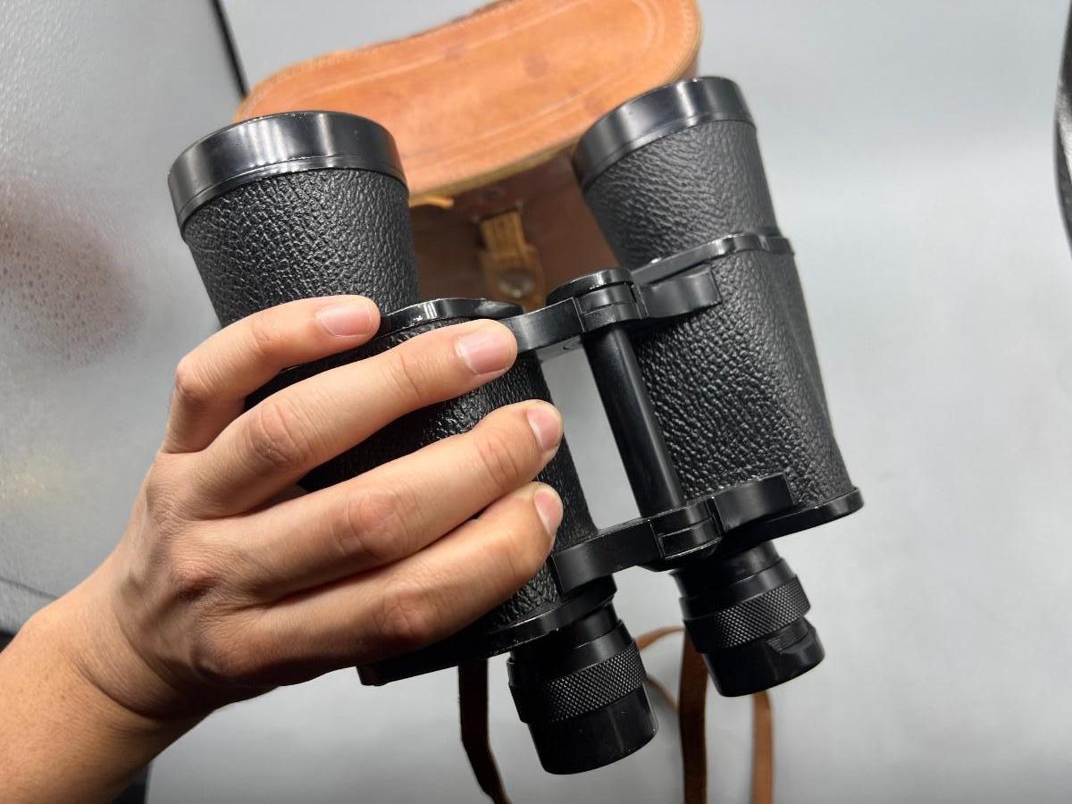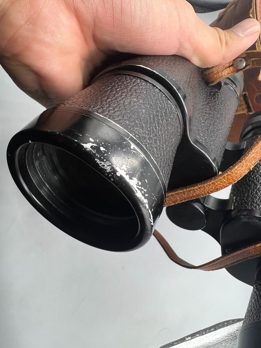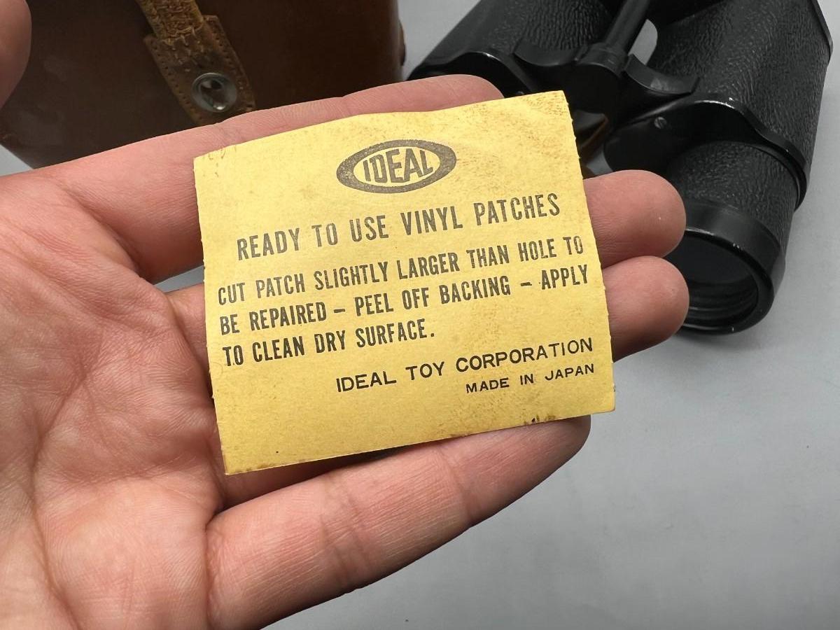 The vinyl repair patch was inside the case, might have not been related to the binoculars. The binoculars has some vintage signs of wear, but there is no scratches to the glass lenses and in good useable or collectible condition.