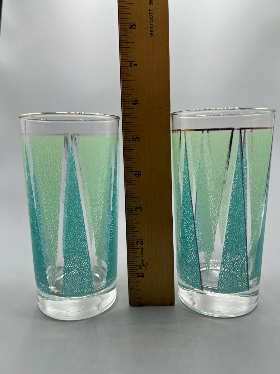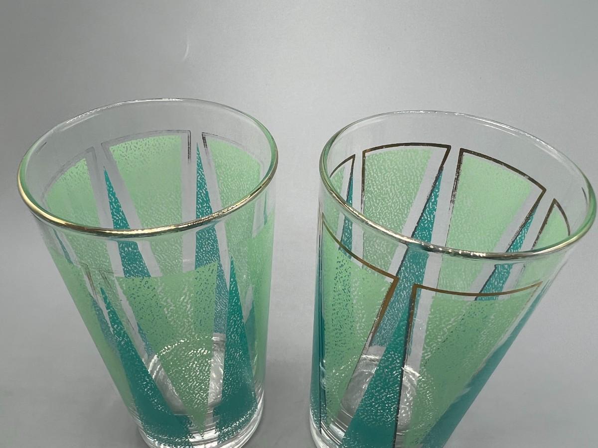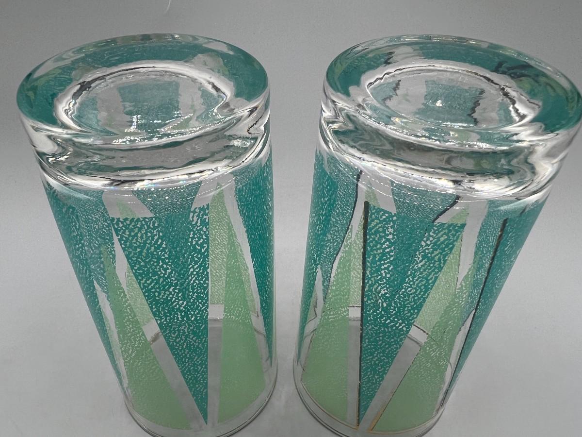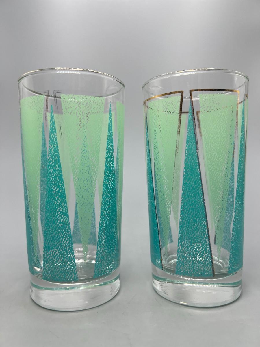 Pair of Vintage Mid Century Libbey Glassware Barware Colorful Green Triangle Pattern