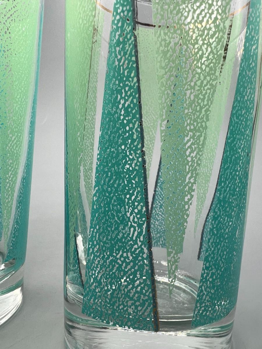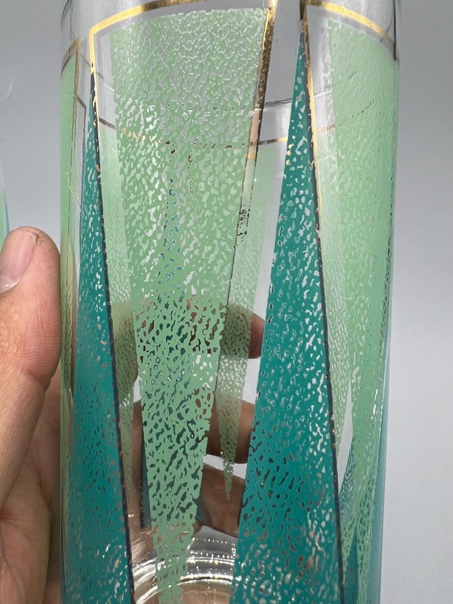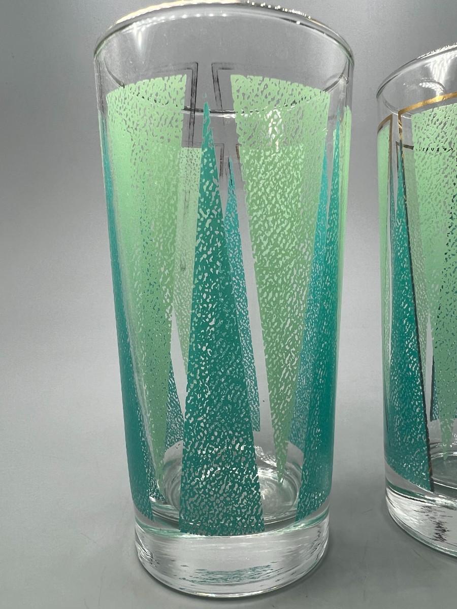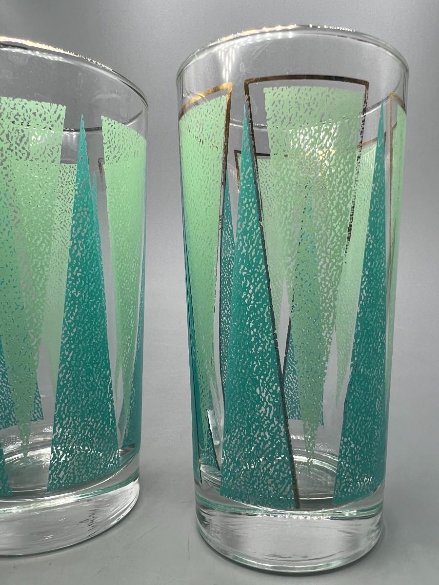 Pair of Vintage Mid Century Libbey Glassware Barware Colorful Green Triangle Pattern