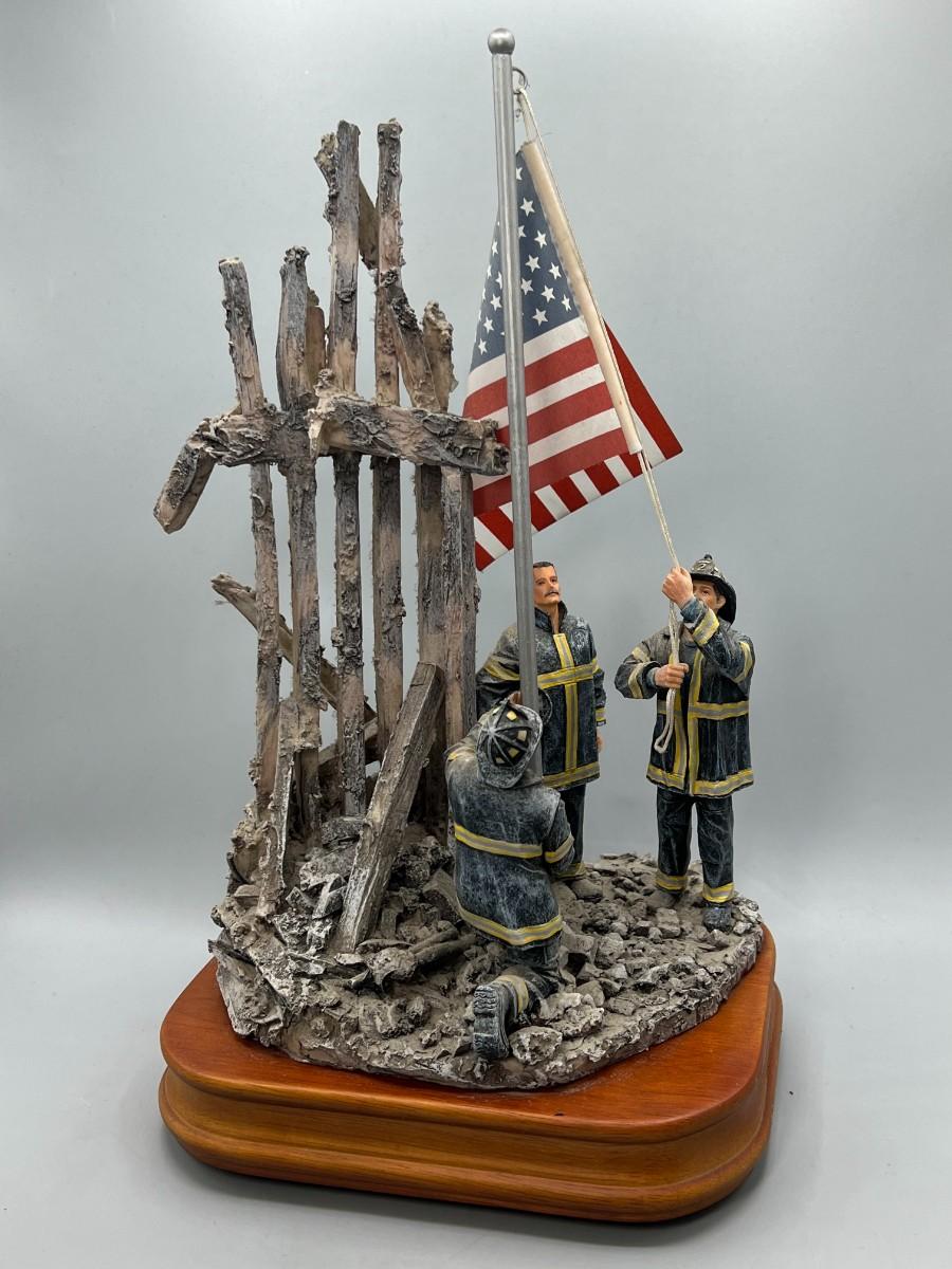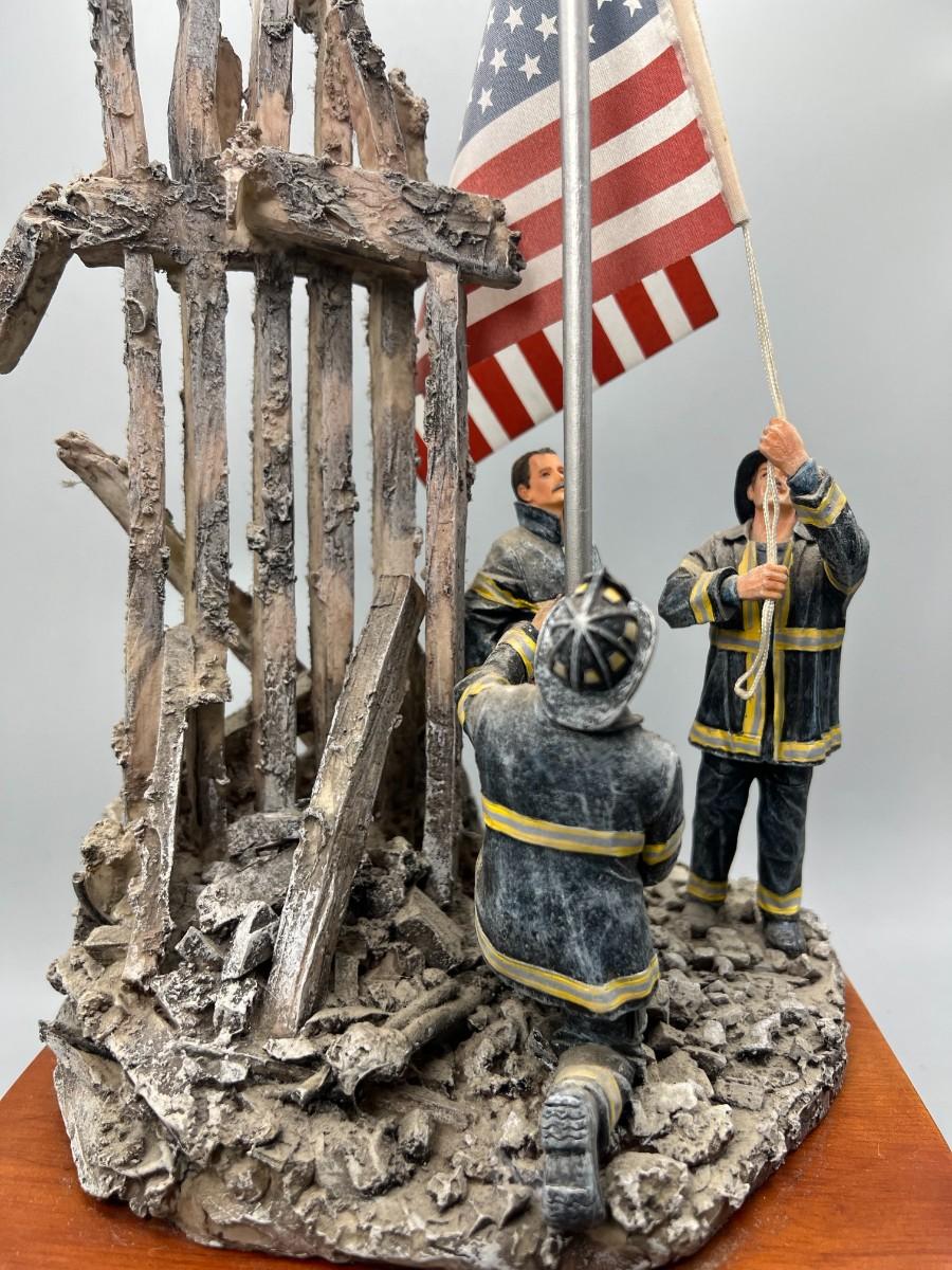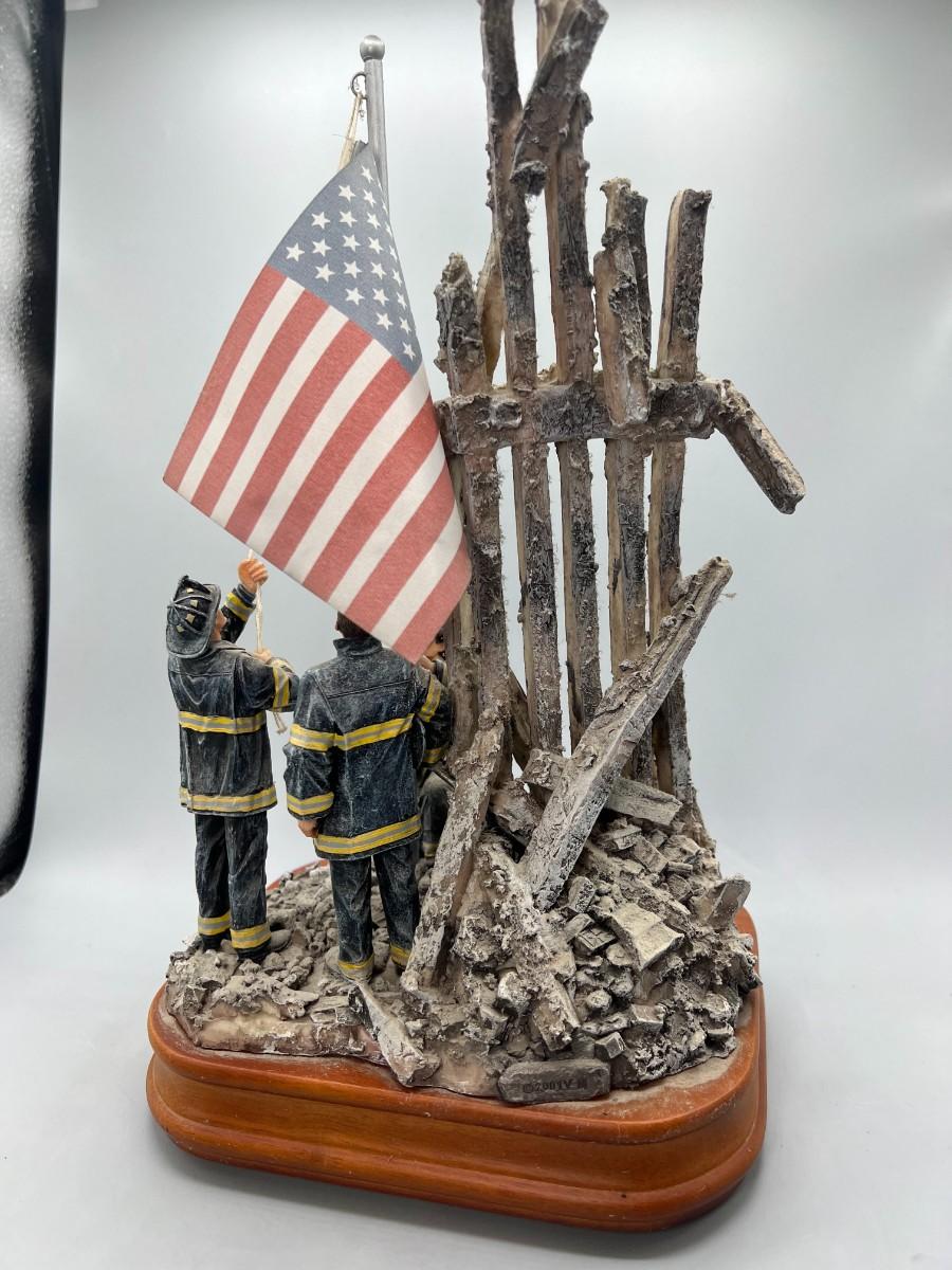 Vanmark 9/11 Patriotic Memorial Statue Red Hats of Courage Image of Hope Music Box