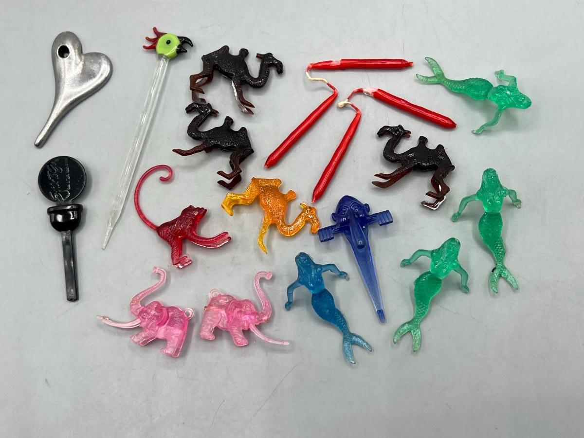 Vintage Plastic Mix Drink Party Glass Clips Mermaids, Monkeys, & More