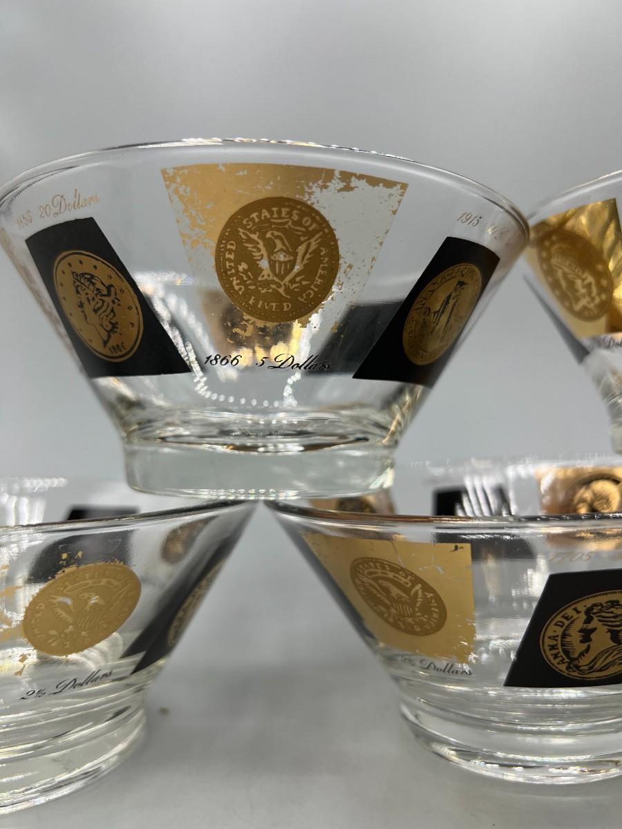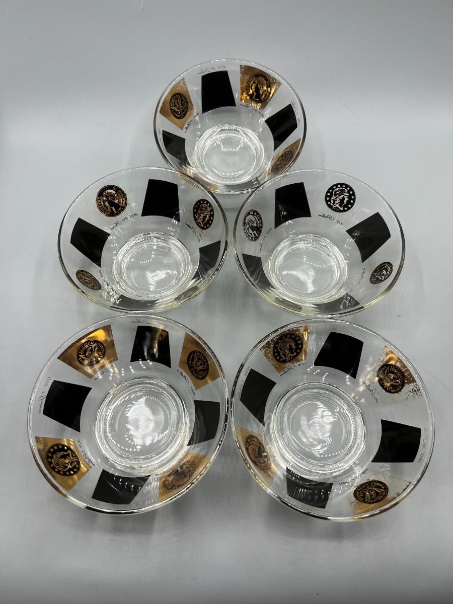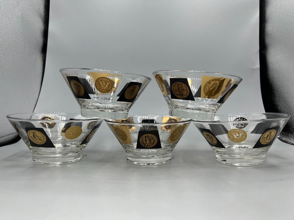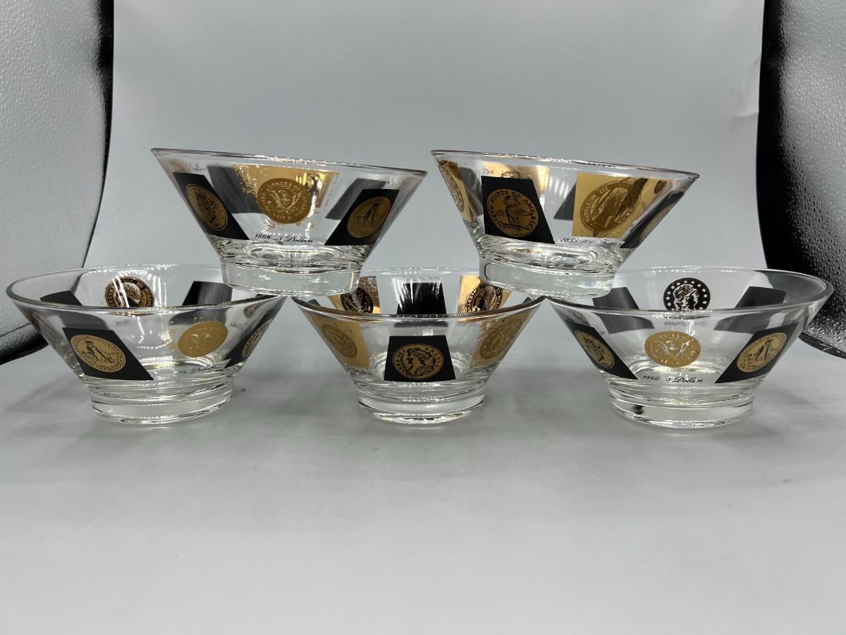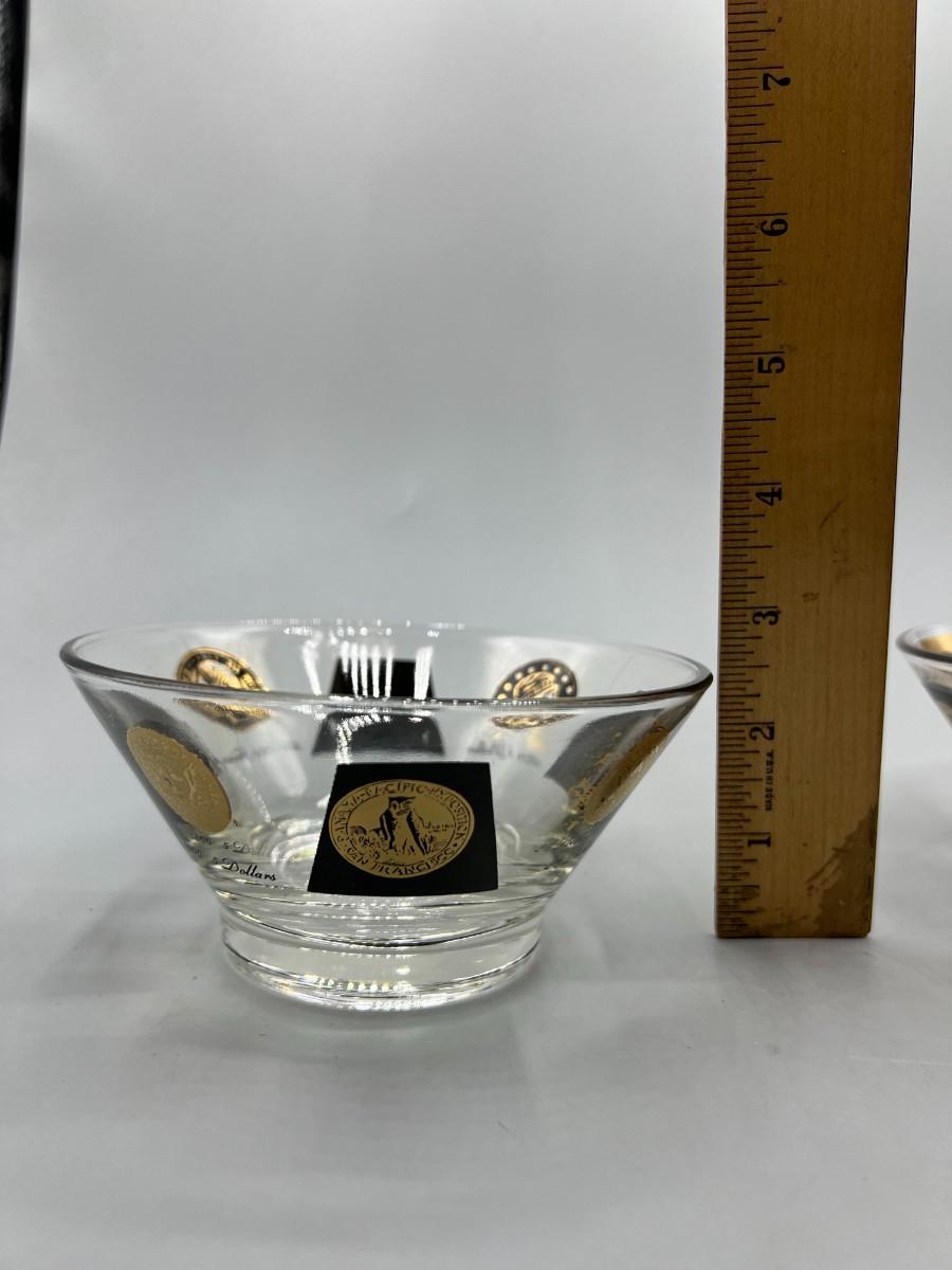 Vintage Midcentury Coin Pattern Cera Glass Fruit Dessert Nut Bowls. In vintage condition, some light wear.