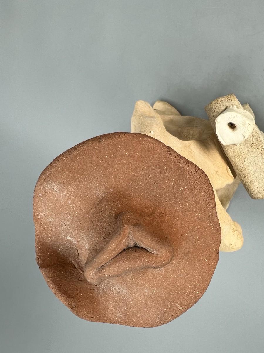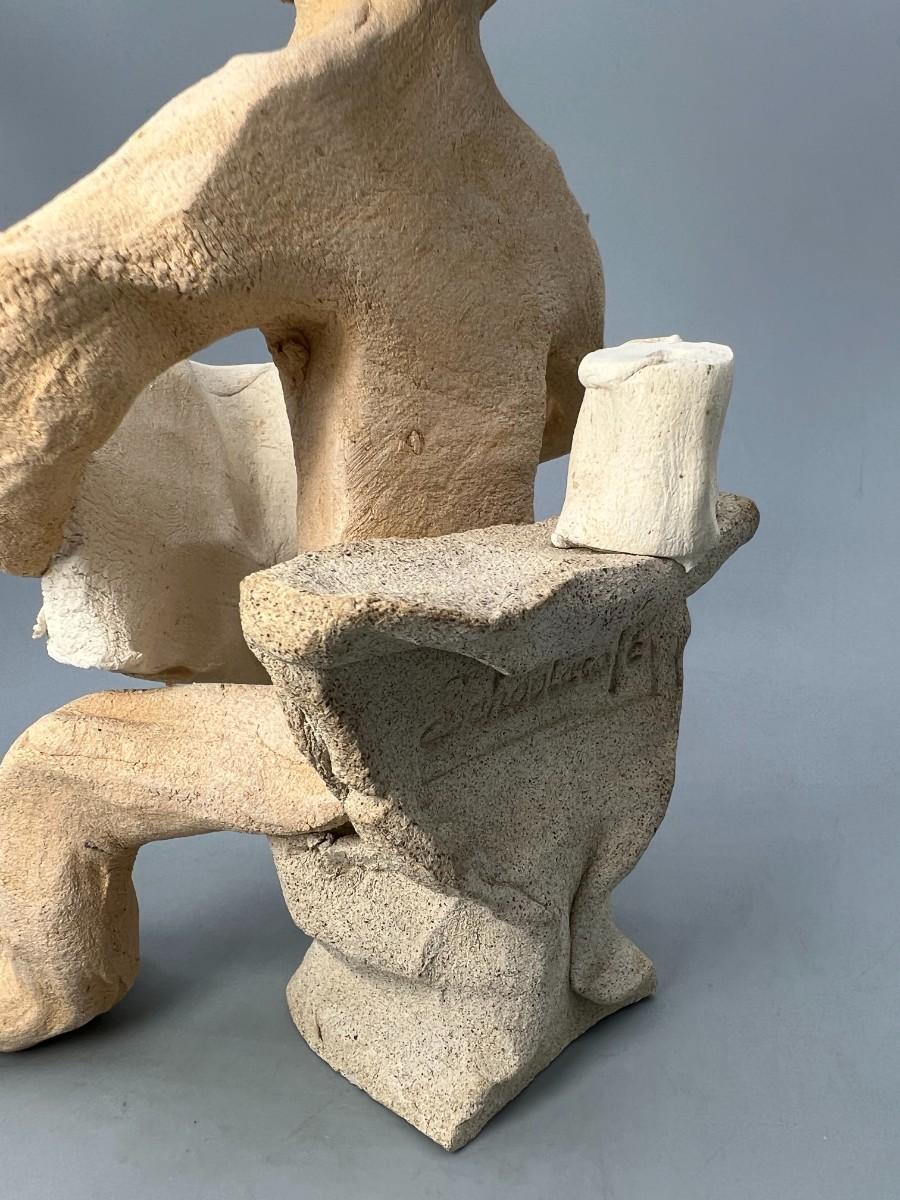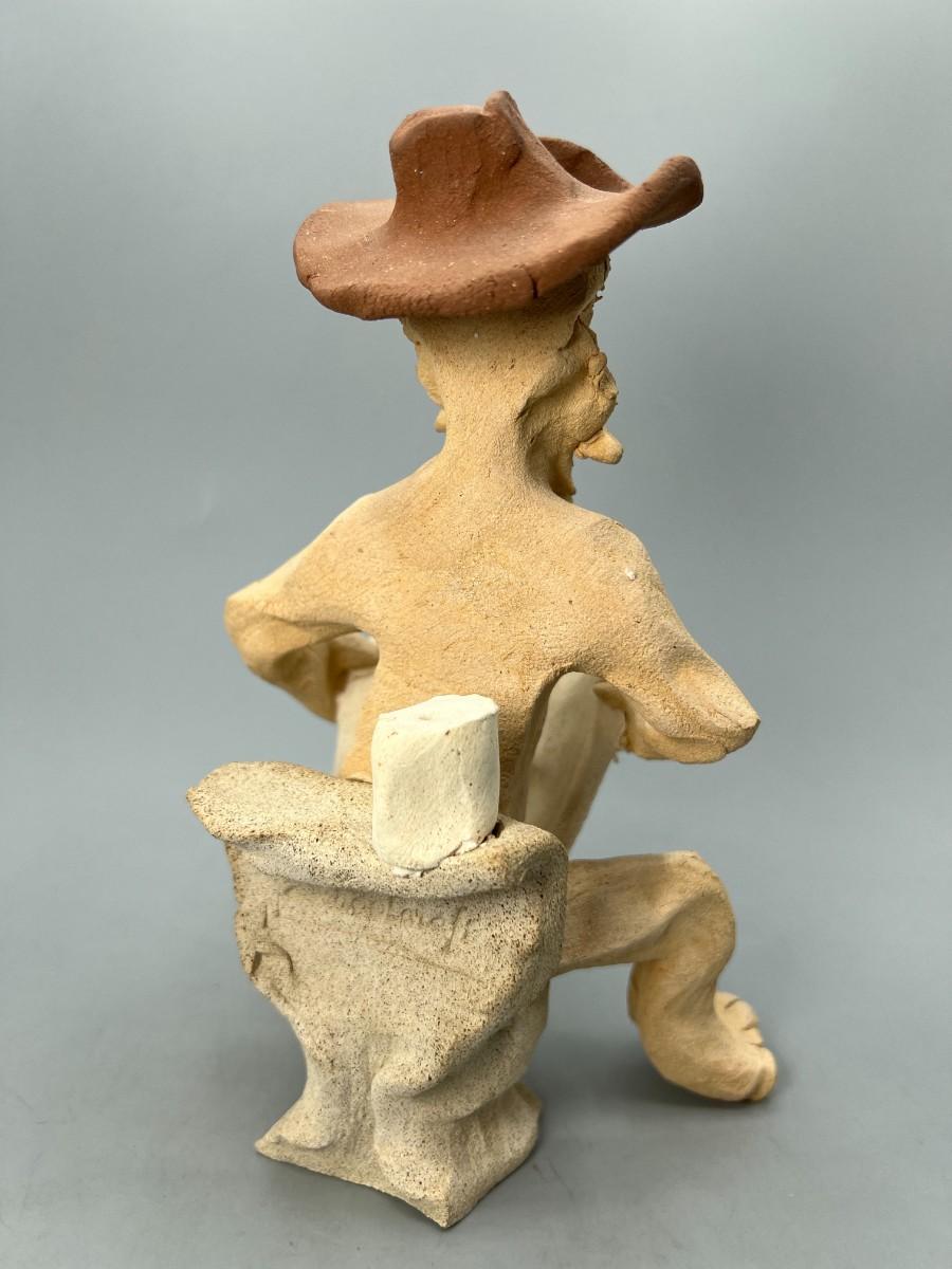 Handmade Crafted Molded Clay Bearded Man on Toilet Reading Newspaper. In good handmade condition.
