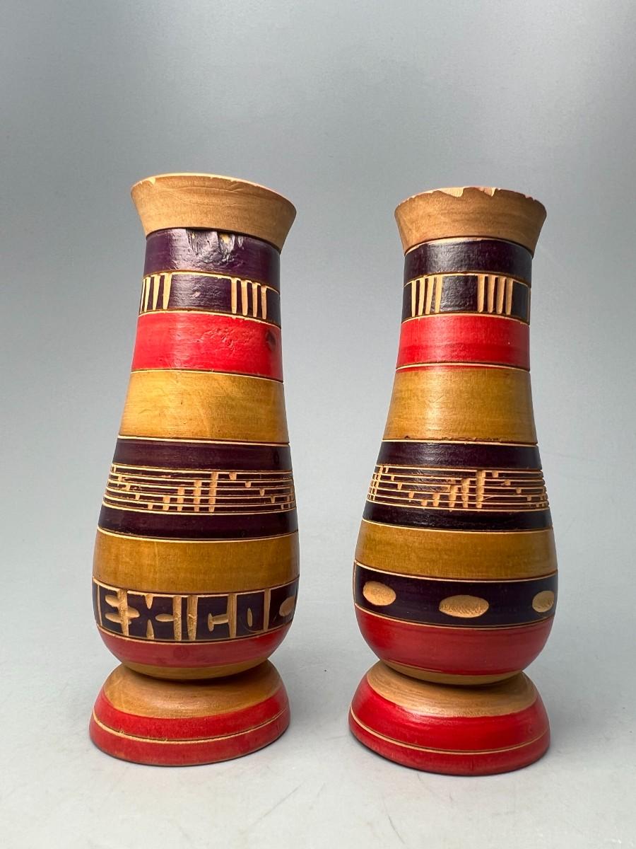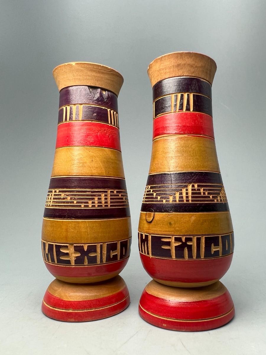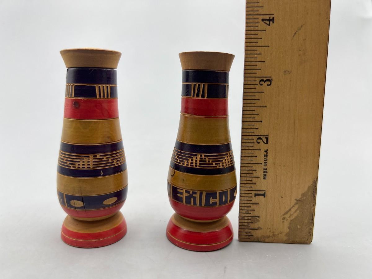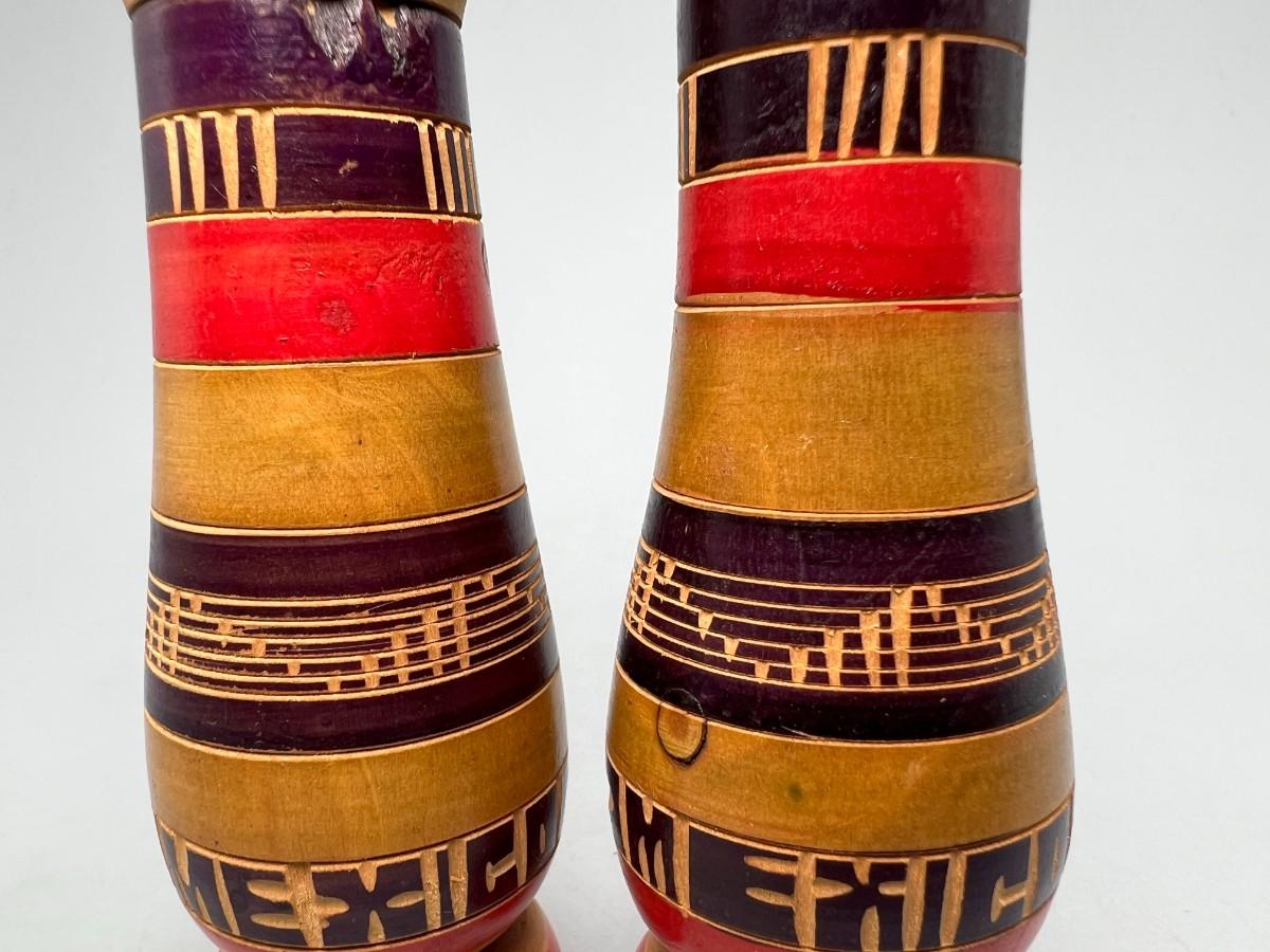 Retro Handmade Wood Mexico Souvenir Salt & Pepper Shakers