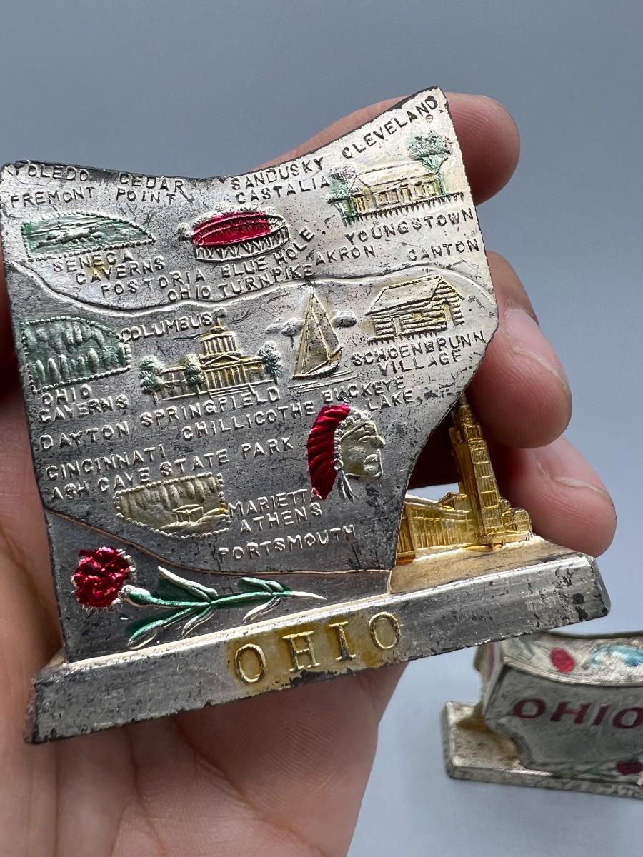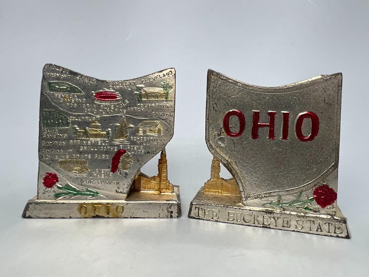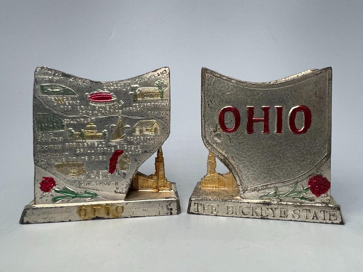 Vintage Metal Ohio State Americana Souvenir Salt & Pepper Shakers