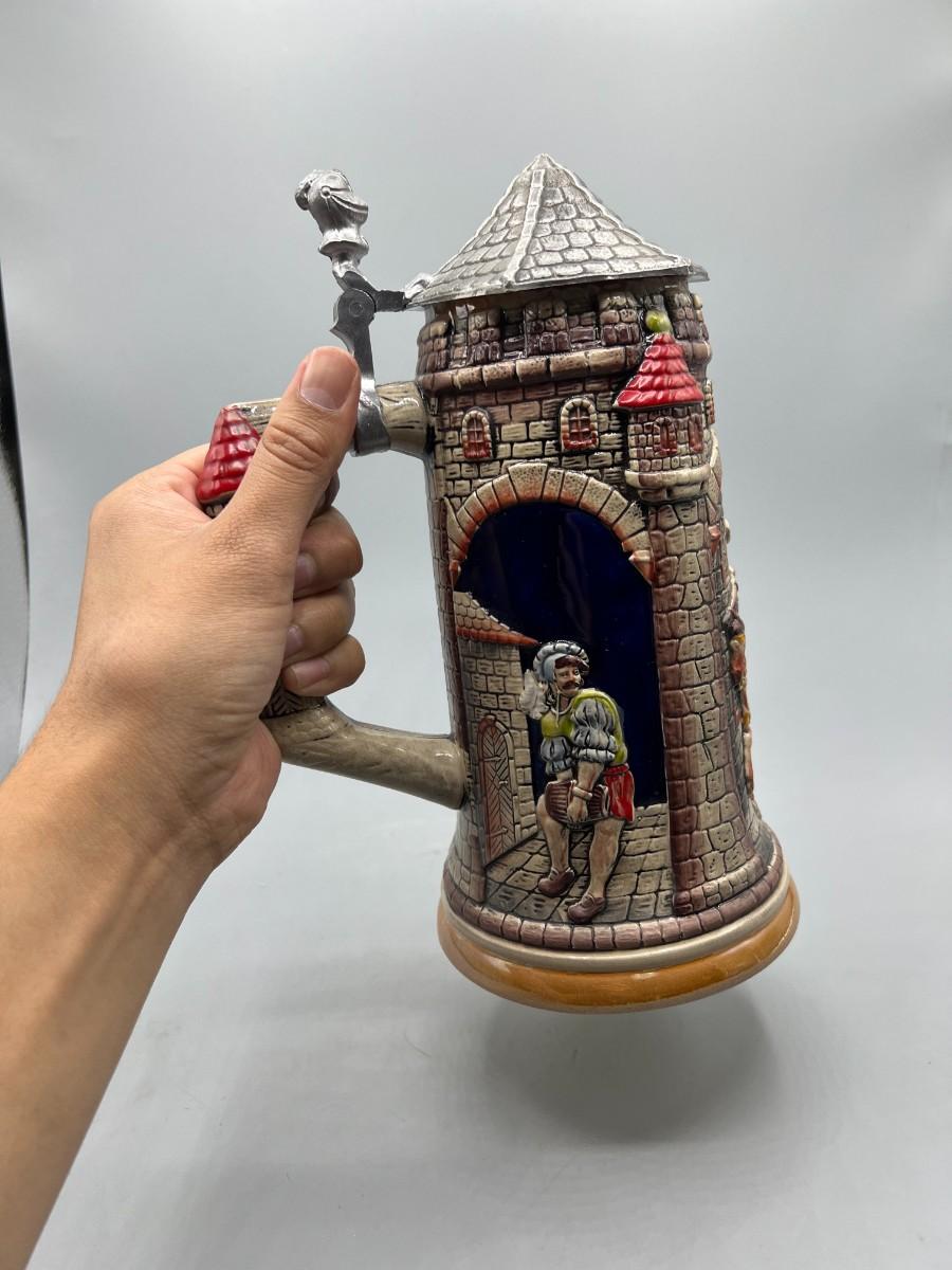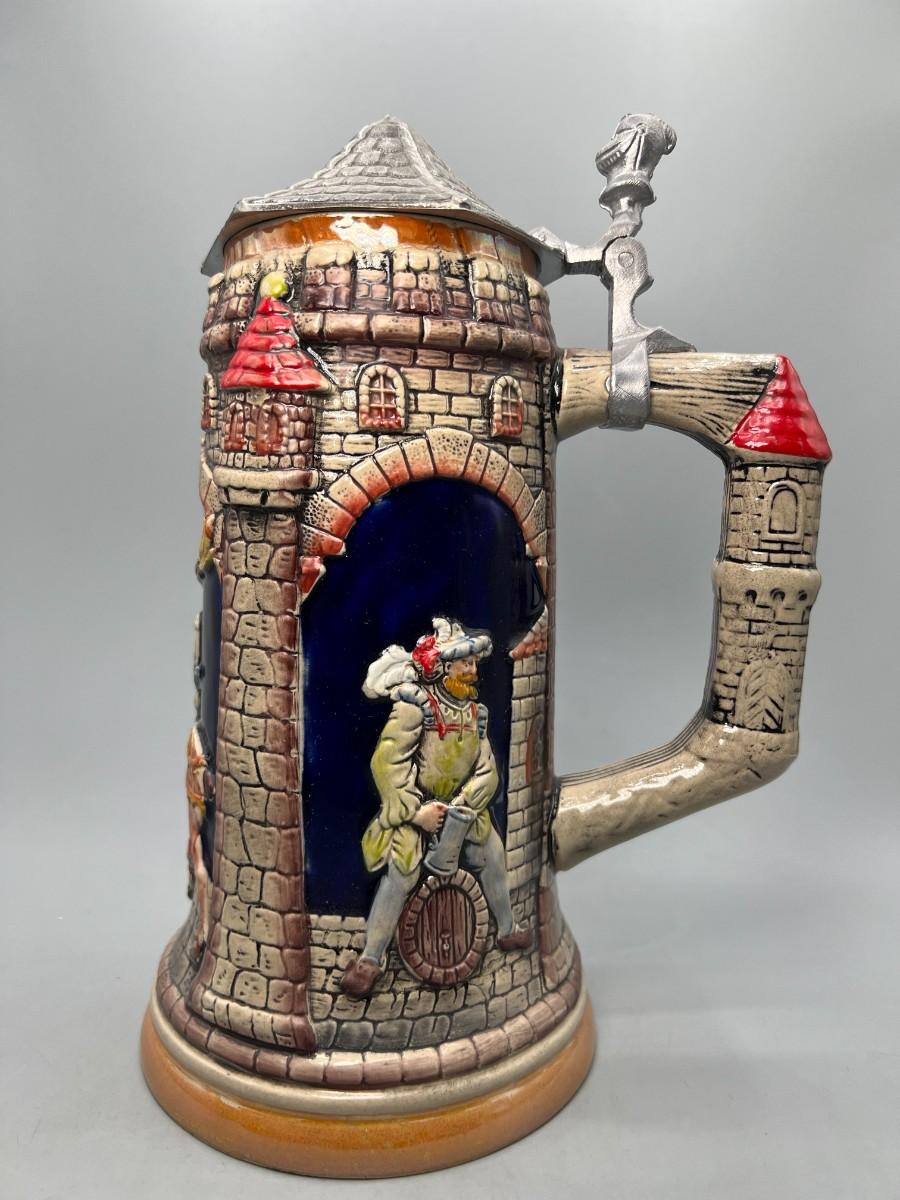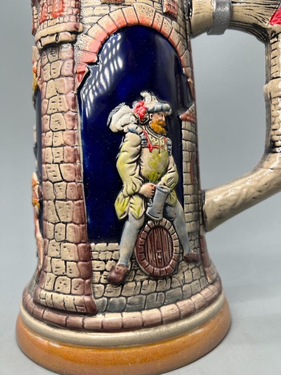 Vintage Handpainted W. German Ornate Detailed Lidded Beer Stein