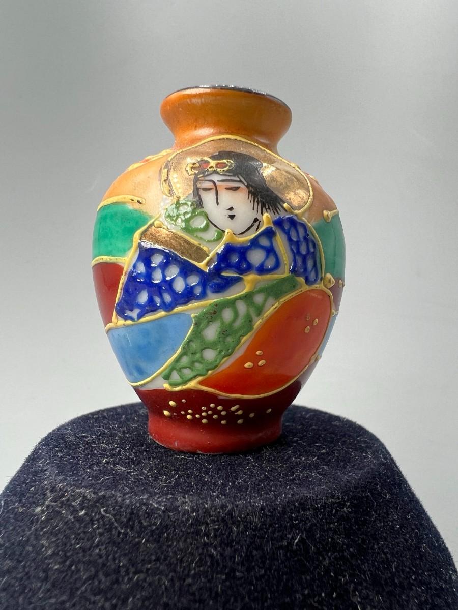 Vintage Hand Painted Miniature Urn Vase Japan Geisha Design