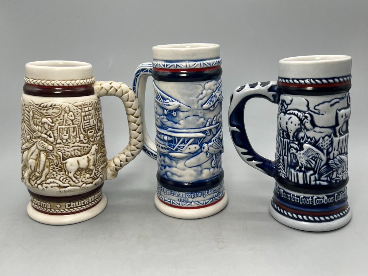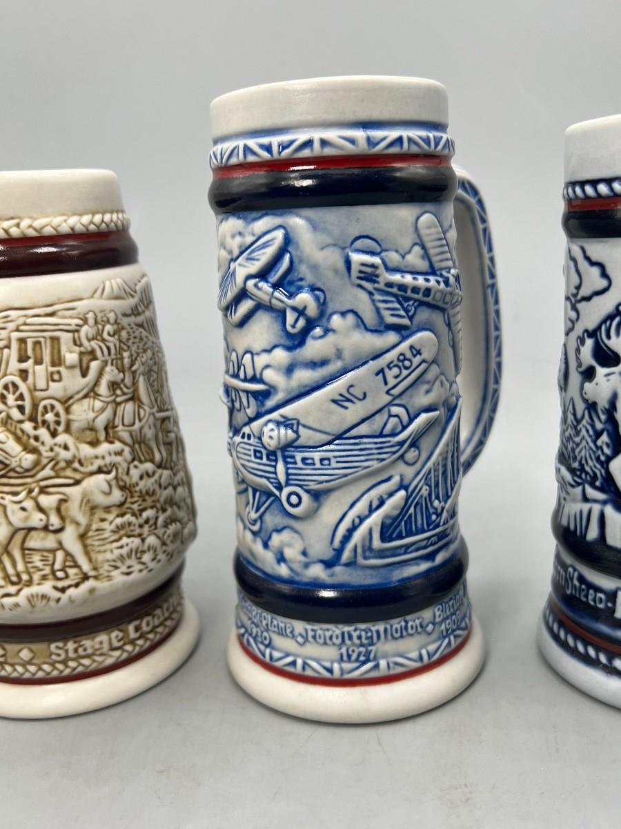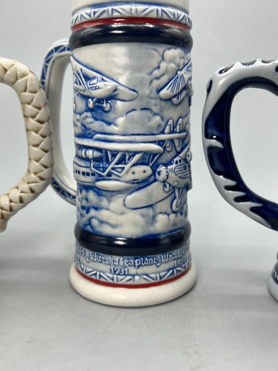 Set of Three Ceramic Beer Steins Western Airplanes Alaska