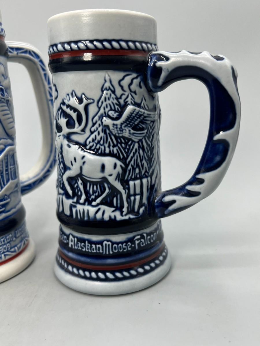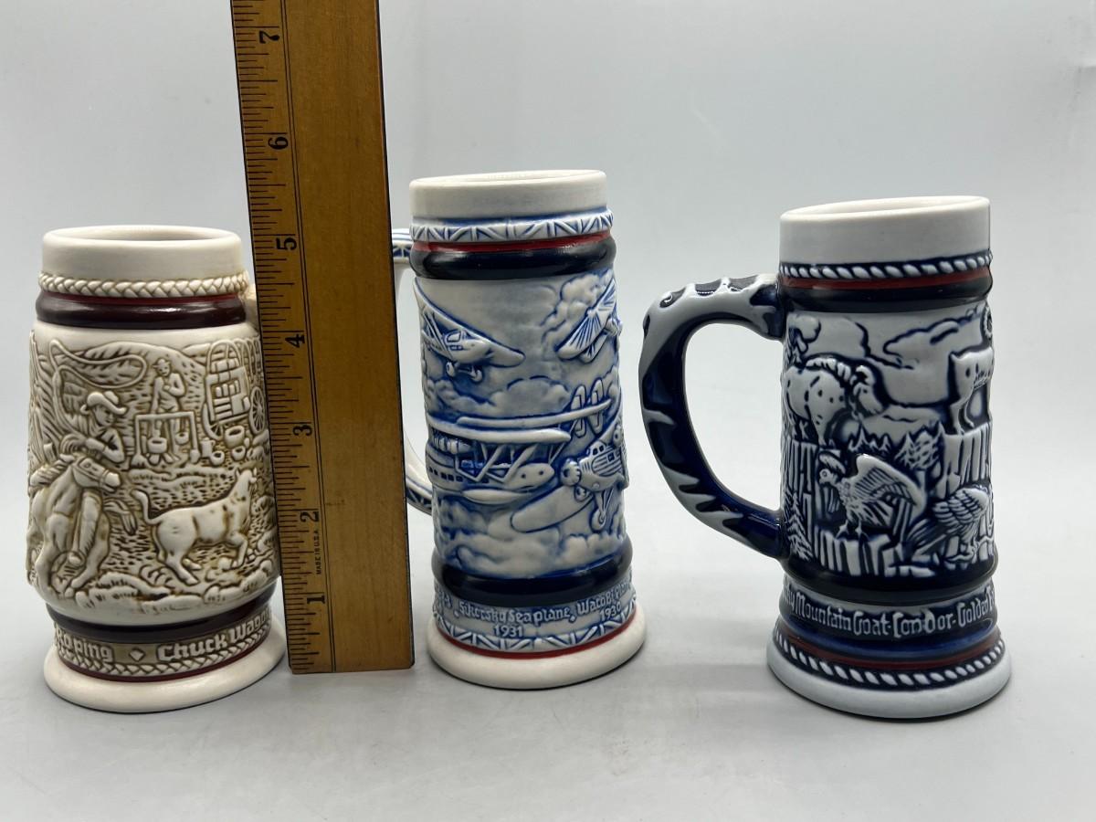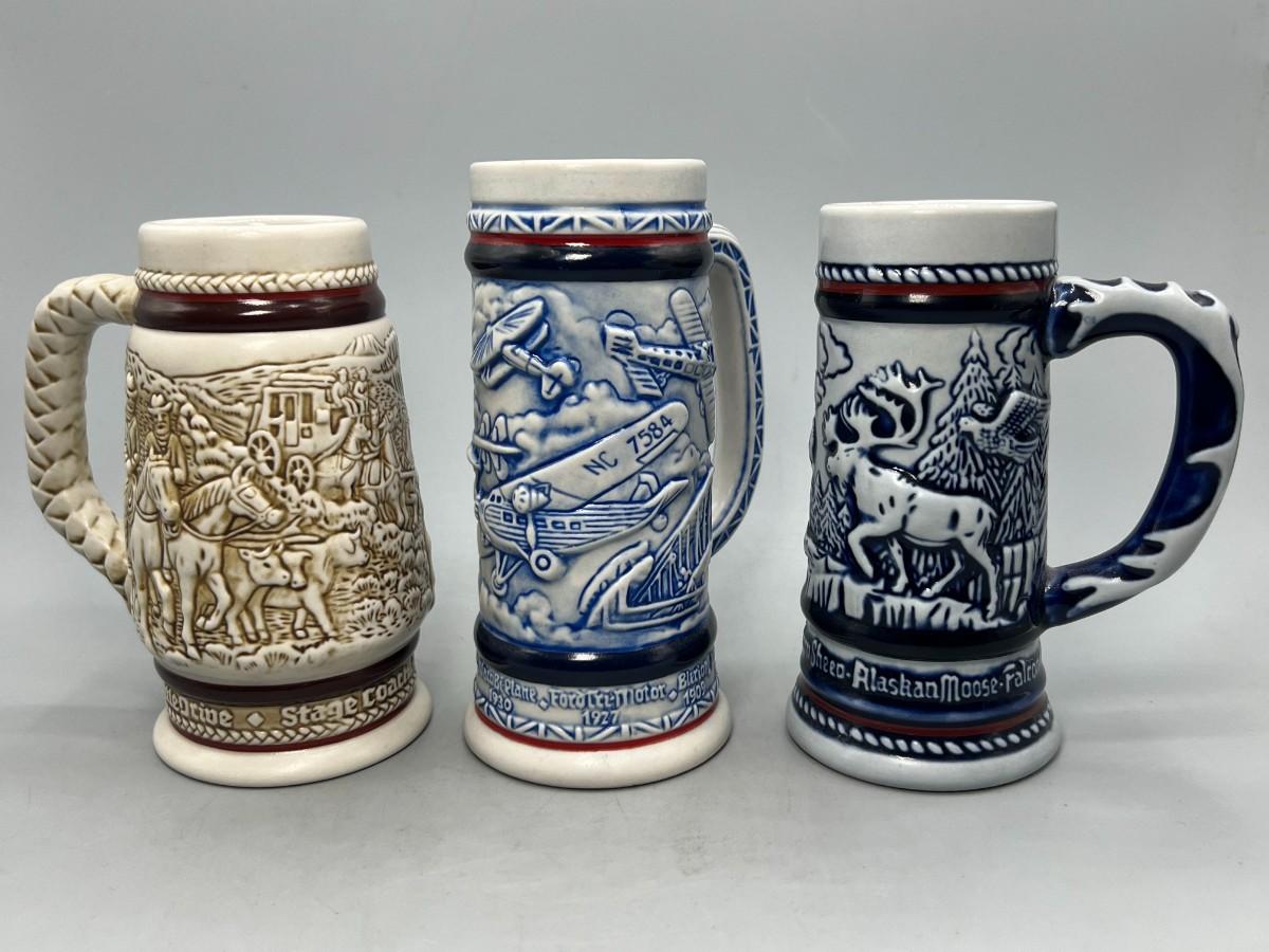 Set of Three Ceramic Beer Steins Western Airplanes Alaska