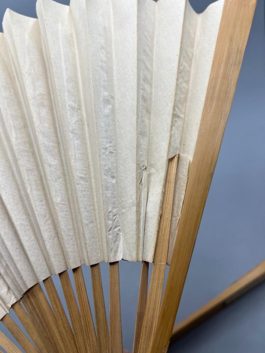 There is some light ripping to both of the fans, but there is no significant damage and is in overall good collectible or displayable condition.