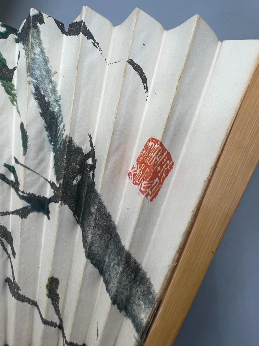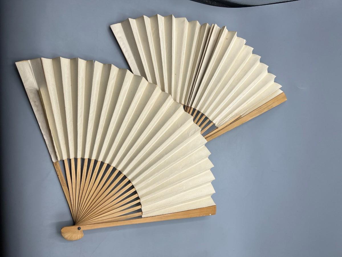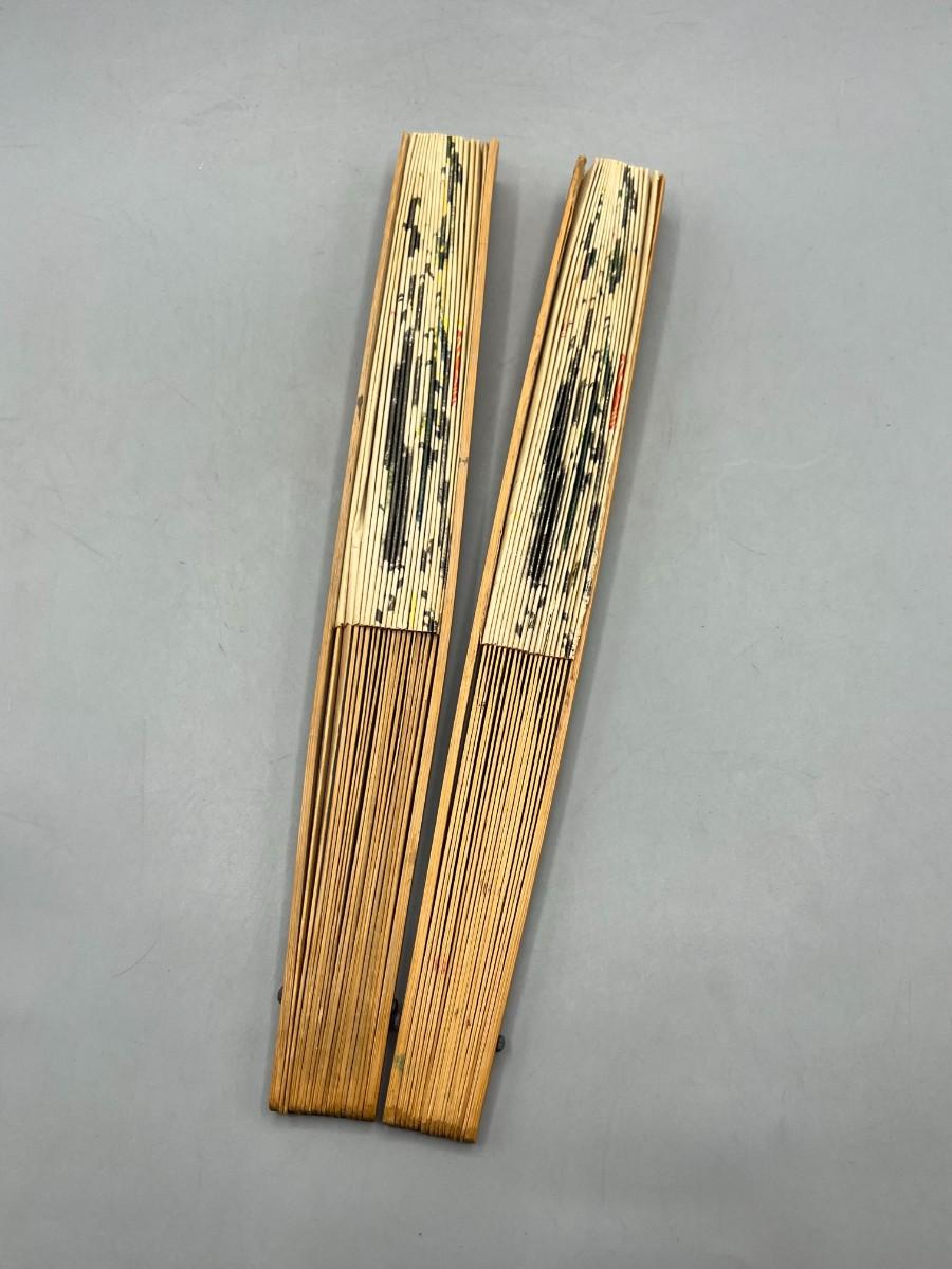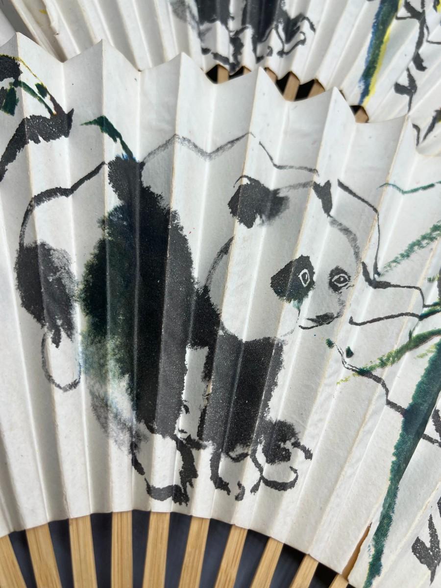 Vintage Pair of Panda Chinese Bamboo Wooden Folding Fans