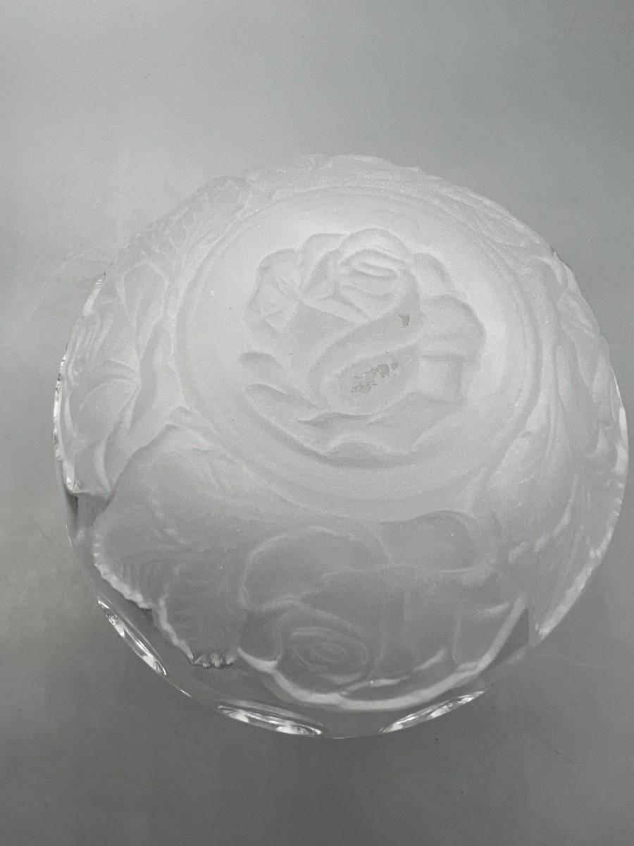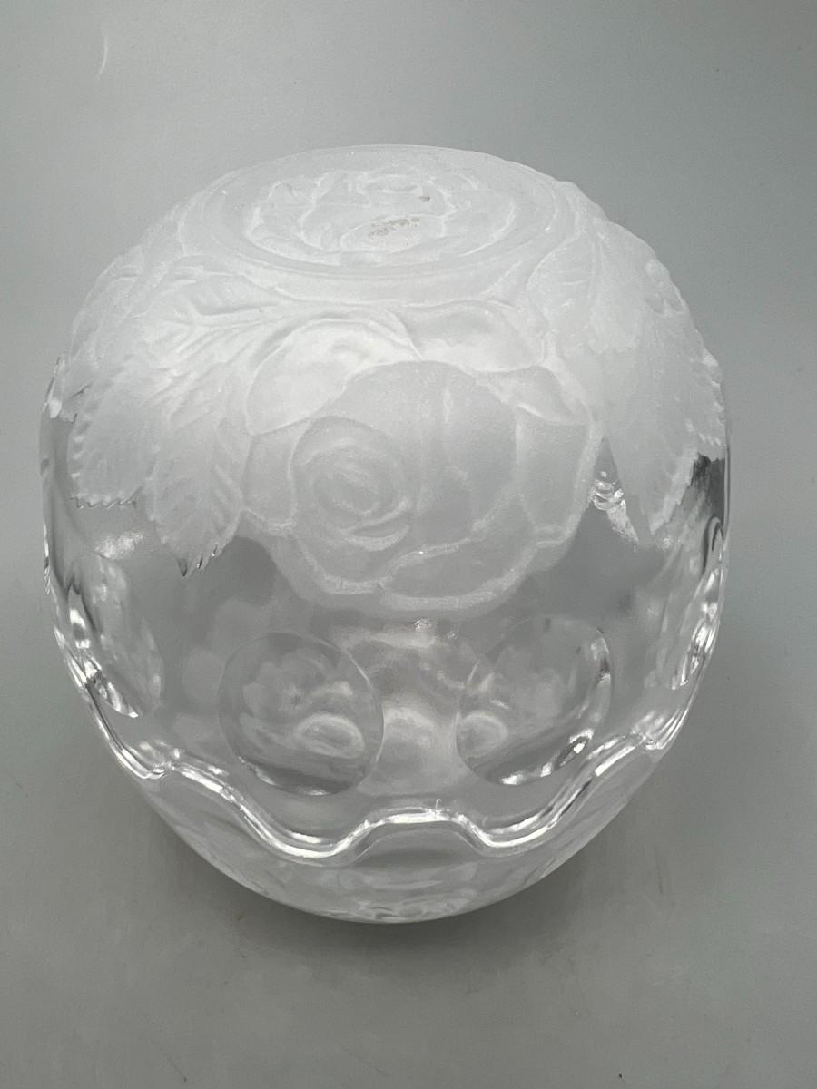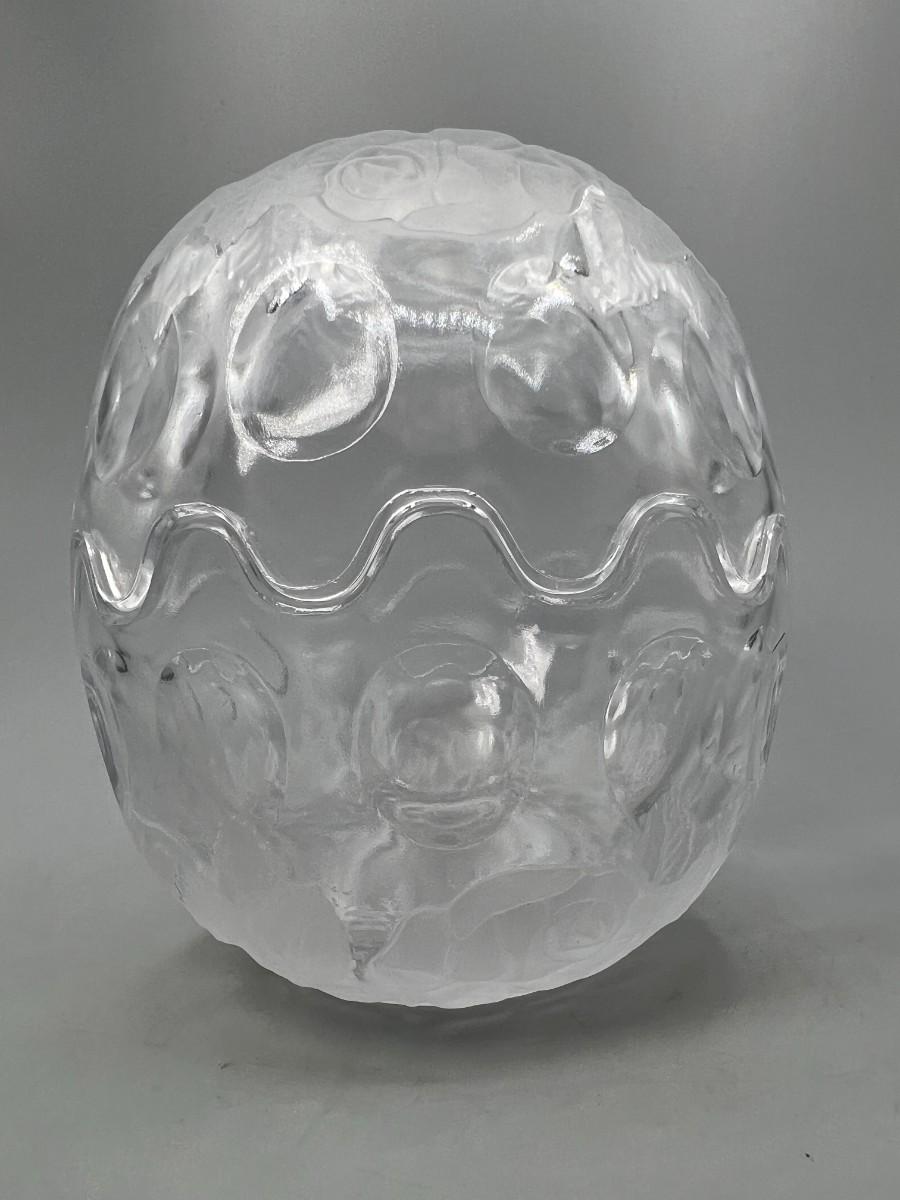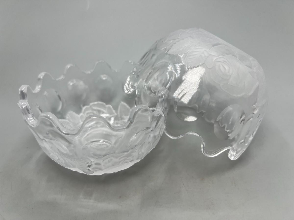 Egg Shaped Frosted Embossed Rose Pattern Lidded Trinket Jewelry Box Dish. In good condition. 5" size.