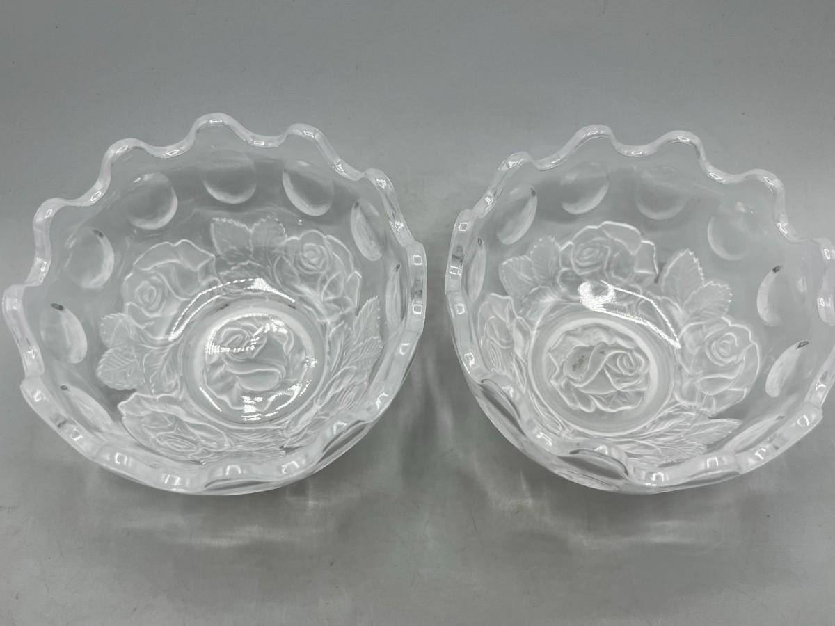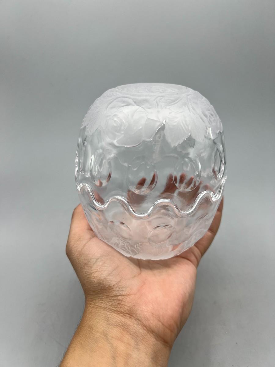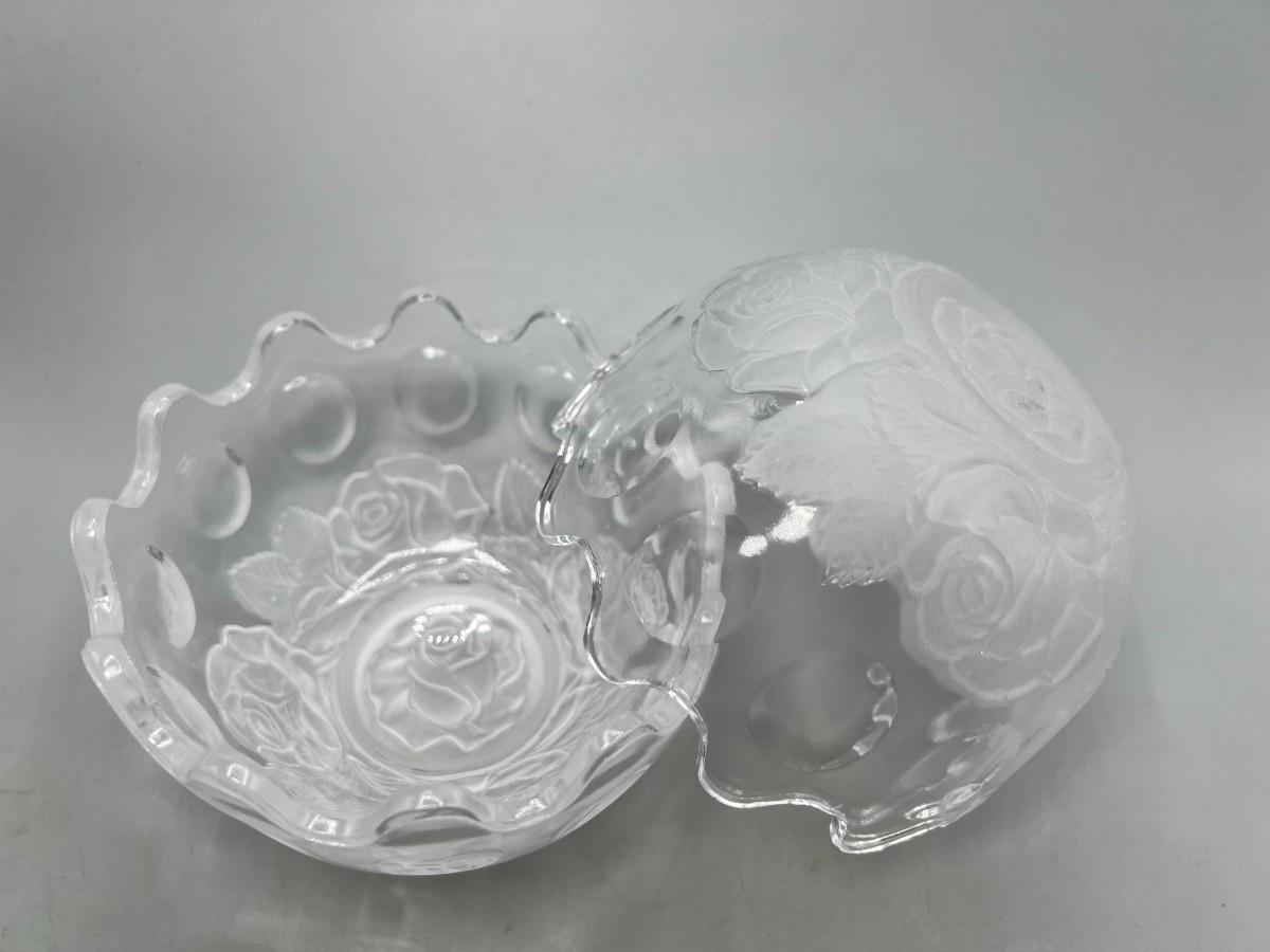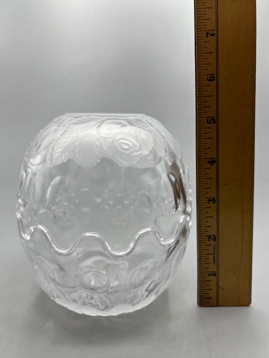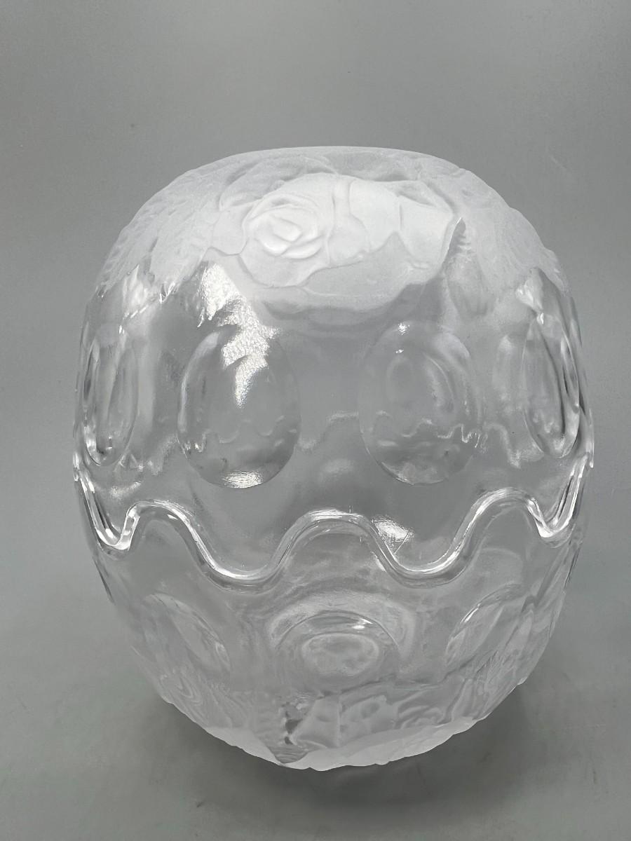 Egg Shaped Frosted Embossed Rose Pattern Lidded Trinket Jewelry Box Dish. In good condition. 5" size.