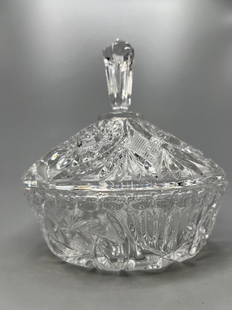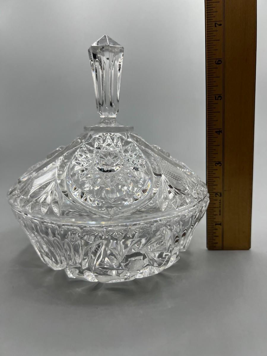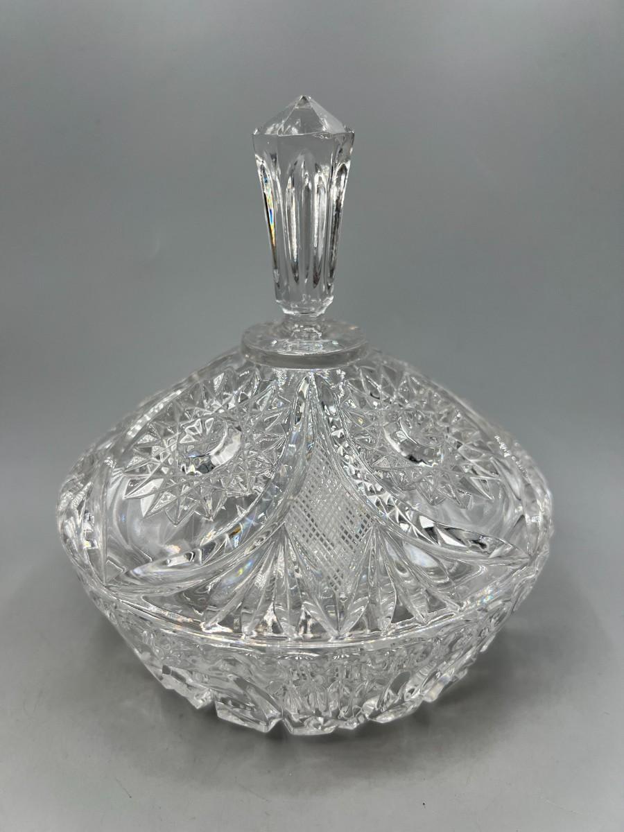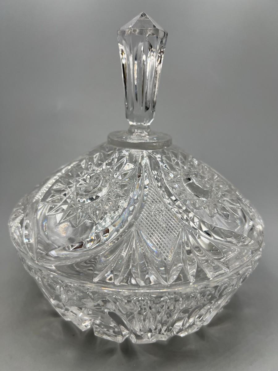 Vintage Heavy Cut Crystal Lidded Candy Dish with Finial Top