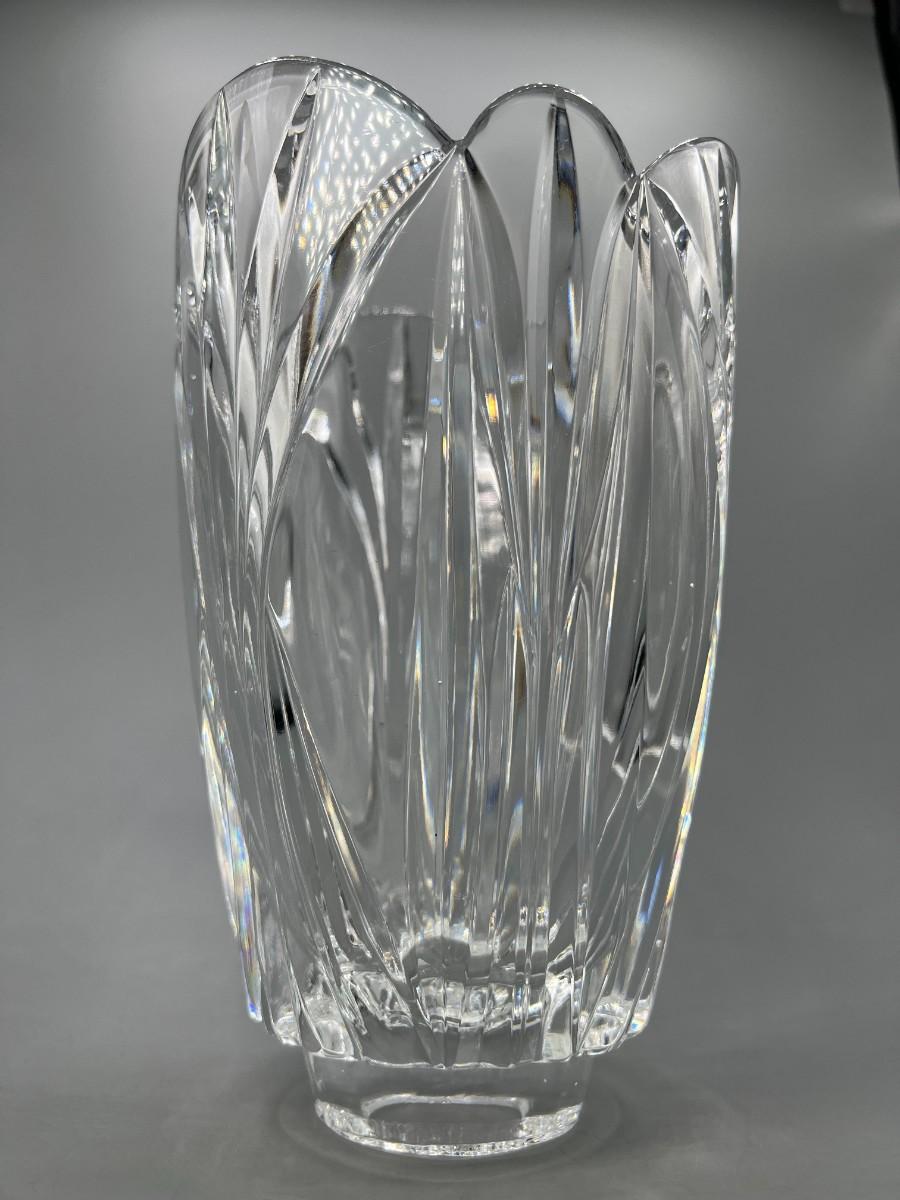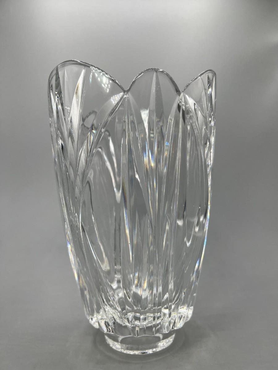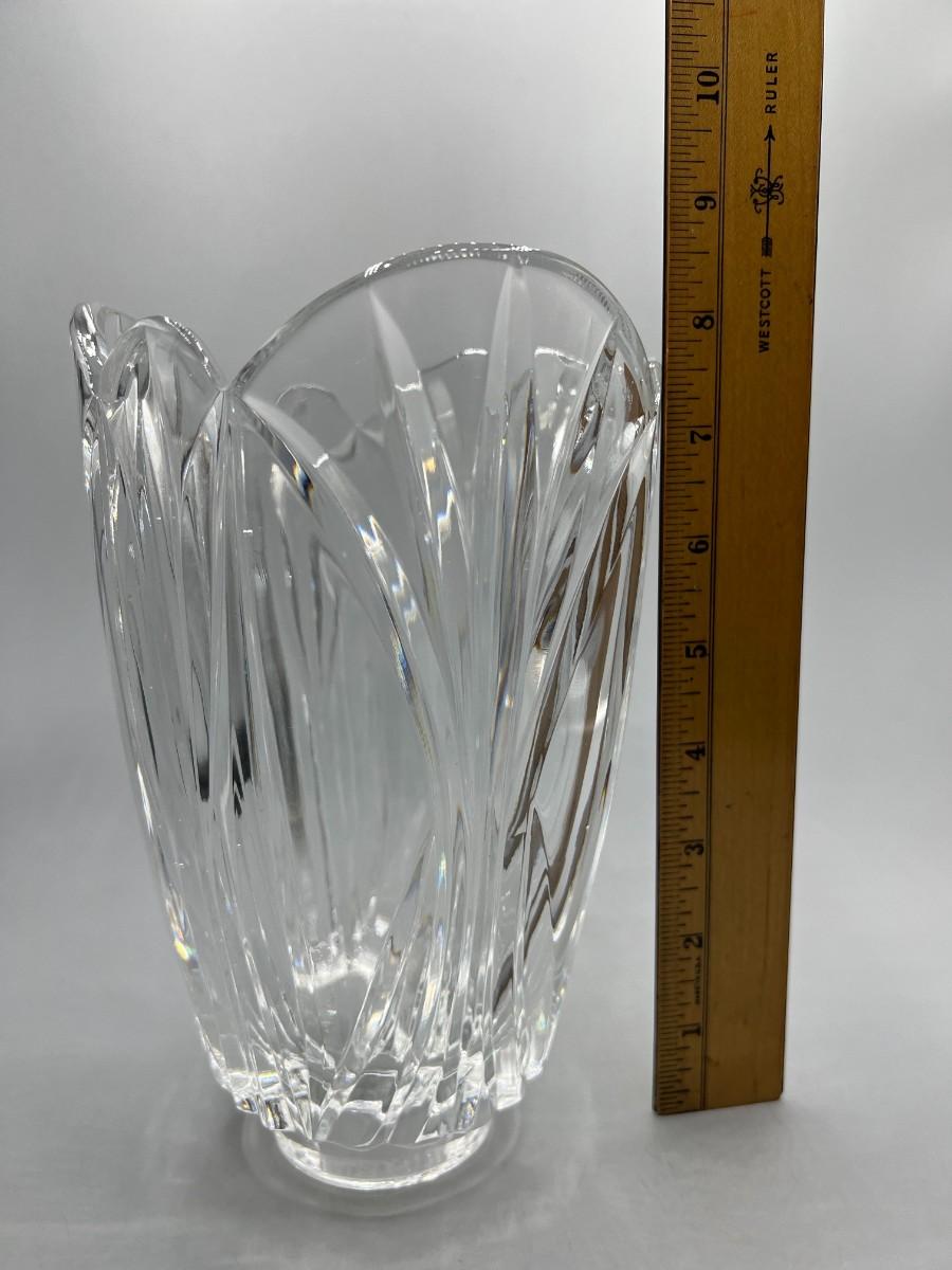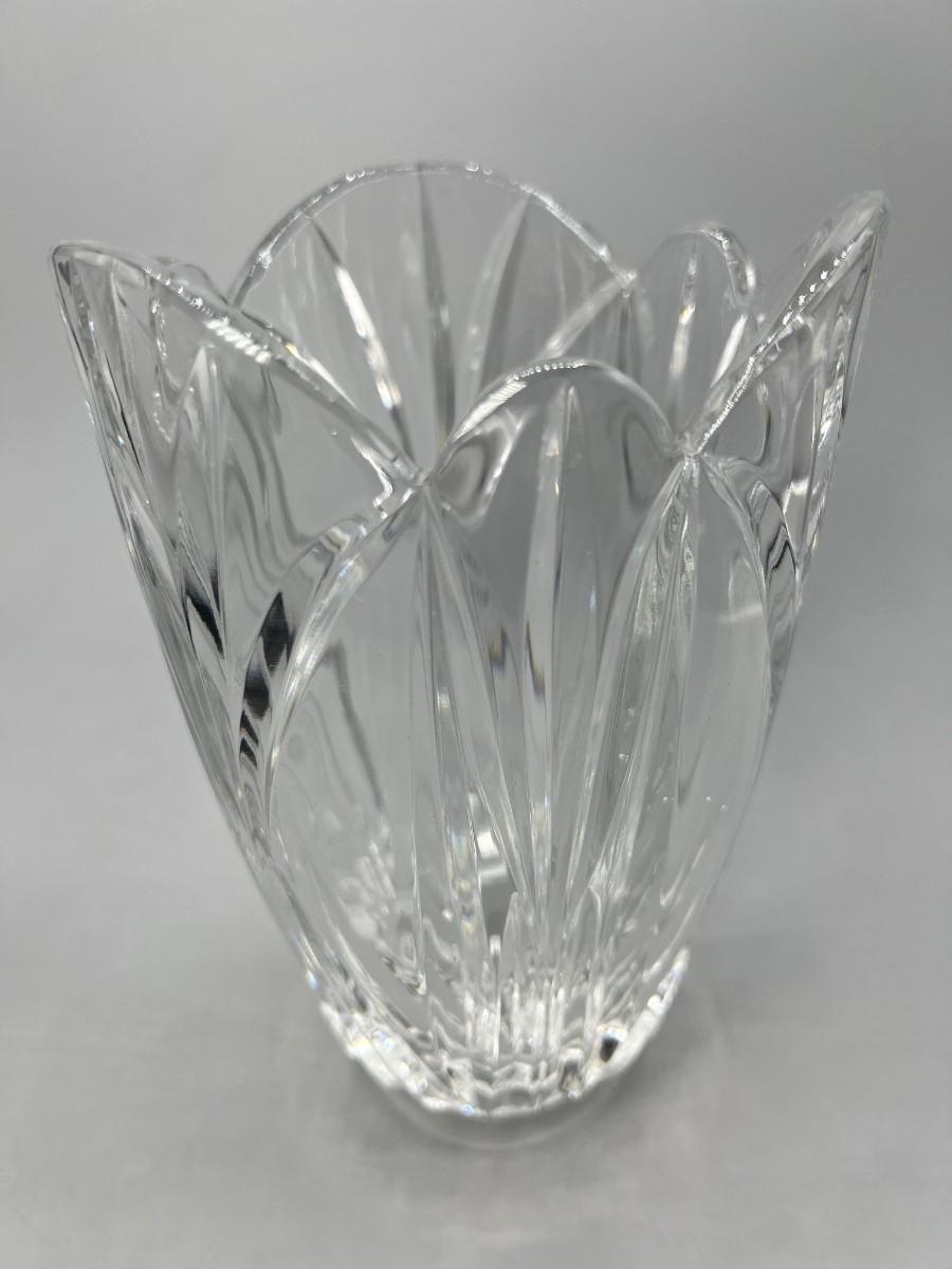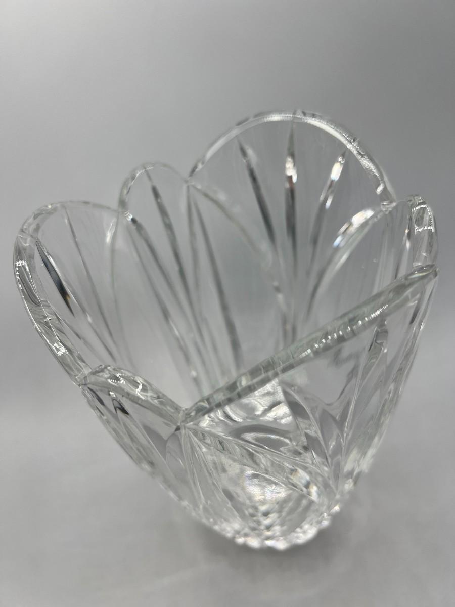 Heavy Quality Thick Crystal Large Scallop Edge Flower Vase. In good condition. About 8.5" size.